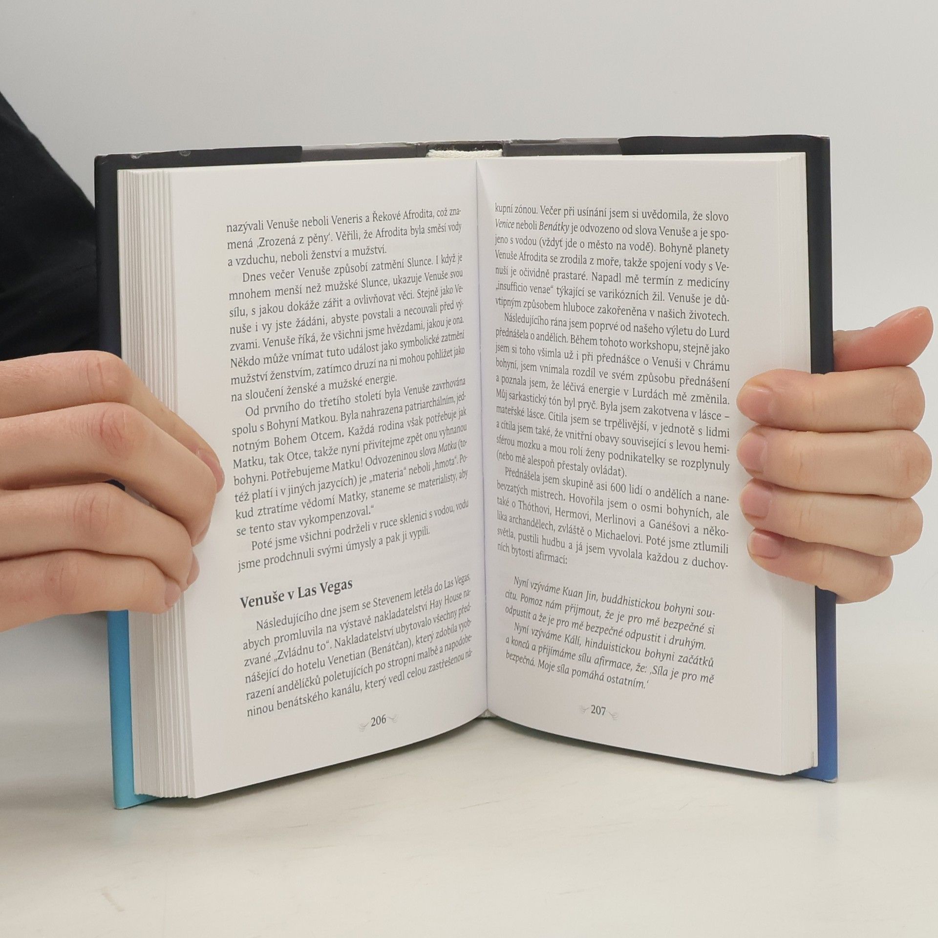 Tento dobrodružný duchovní příběh, založený na skutečných událostech, nabízí praktické informace o osvícených bytostech, které vám pomohou odhalit magické dary ve vašem nitru. V první části se s Doreen podíváte do indiánské sauny v Arizoně, na Polynéský ostrov Mooréa, do chrámu Bohyně v Avalonu a dalších exotických míst. Přečtete si mocná poselství od Matky Marie z Lurd a nahlédnete do jejích jasnozřivých výkladů o Lemurii, mořských vílách a nových duhových dětech. Druhá část slouží jako praktická příručka, která přehledně popisuje vlastnosti jednotlivých bohyní a andělů, a pomáhá vám probudit vaše vrozené duchovní schopnosti. Hermés říká, že „vše je myšlenka“ a pozitivní modlitby pozvednou vaše myšlenky k vděčnosti a lásce. Tyto myšlenky vytvářejí odpovídající vlnové délky, které přitahují to, na co myslíte. Dále se uvádí, že když dva lidé meditují vedle sebe, jejich mozkové vlny se synchronizují, což usnadňuje telepatické spojení. Tato synchronizace souvisí se zrcadlovými neurony v čelním laloku, které se aktivují nejen při vykonávání činnosti, ale také při jejím pozorování. Vědci se domnívají, že zrcadlové neurony jsou základem empatie, tedy schopnosti vcítit se do pocitů druhých.