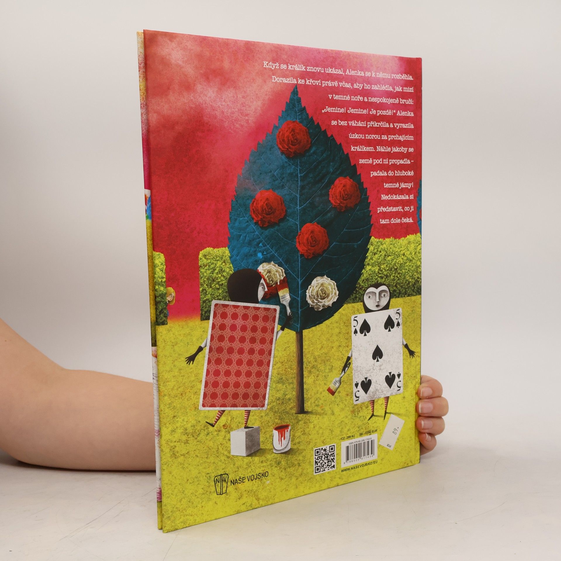 Podle mistrovského díla Lewise Carrolla. Traduje se, že matematik Ch. L. Dodgson, kterého známe pod pseudonymem Lewis Carroll, vymyslel příběh při projížďce na člunu, kde jej vyprávěl dceři svého přítele - Alici. Ta jej uprosila, aby o dobrodružstvích napsal knihu. Hlavní hrdinkou je stejnojmenná dívka Alenka, která proletí hlubokou králičí norou do fantazijního světa, kde vše funguje podle vlastních a nepředvídatelných pravidel: rozměry, čas i království Srdcové královny. Ohromené děvčátko se setká s řadou osobitých až pitoreskních postav: mluvícím bílým králíkem, kočkou Šklíbou, Kloboučníkem, Houseňákem, vojáky-kartami ad. Zkrácenou verzi slavné Carrollovy pohádky doprovodila půvabnými a osobitými obrázky italská ilustrátorka Francesca Cosanti.