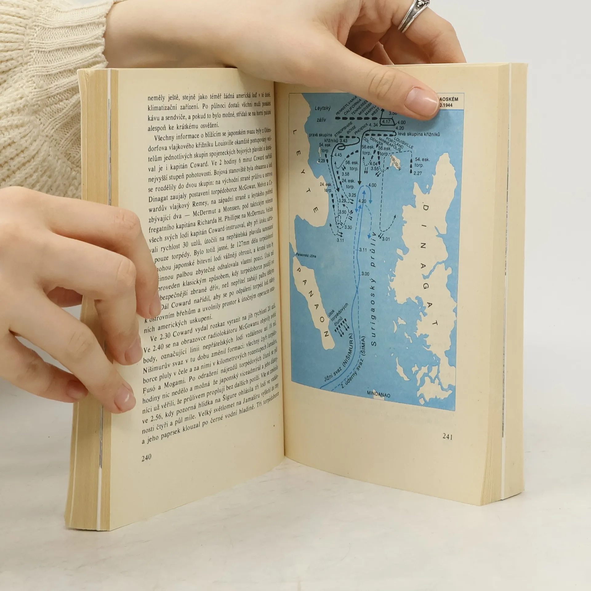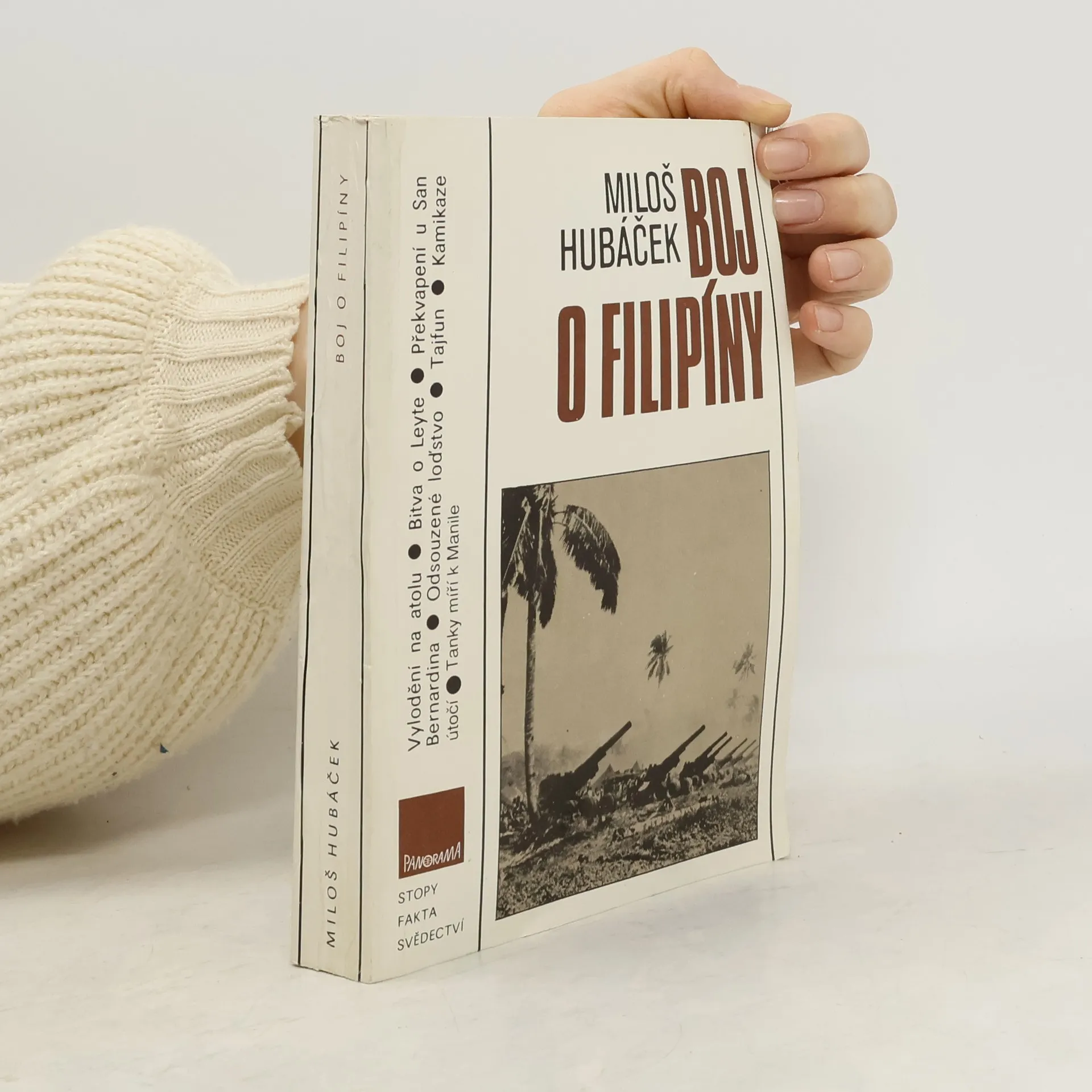 Čtvrtá část ze série knih, které mapují historii námořních bojů v Pacifiku za druhé světové války. Vylodění na atolu; Bitva o Leyte; Překvapení u San Bernardina; Odsouzené loďstvo; Tajfun; Kamikaze útočí; Tanky míří k Manile V polovině roku 1944 ztrácely japonské armády v Tichomoří jednu pozici za druhou. Po dobytí strategicky významných ostrovů v Marianách bylo ve spojeneckých štábech rozhodnuto, že příští úder bude směřovat proti Filipínám. Pro Japonce se měla očekávaná pozemní a námořně letecká bitva změnit v rozhodující pokus zvrátit celkovou nepříznivou situaci. Přes masové nasazení sebevražedných pilotů kamikaze prohráli Japonci na souši a v největším námořním střetnutím všech dob i na moři. Za bojů o Leyte byl zničen výkvět japonských ozbrojených sil a po třech letech od Pearl Harboru již Japonci nedokázali materiální a lidské ztráty takového rozsahu nahradit. Mapy zhotovila Milada Zpěváková. 1. vydání