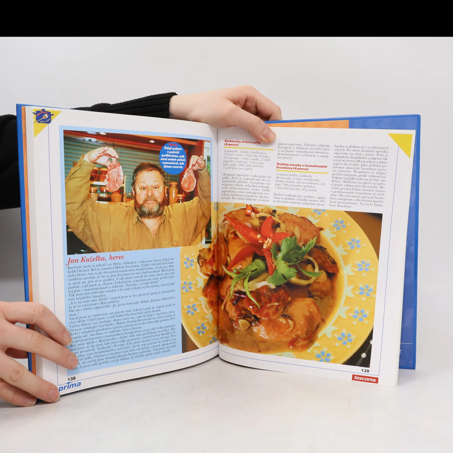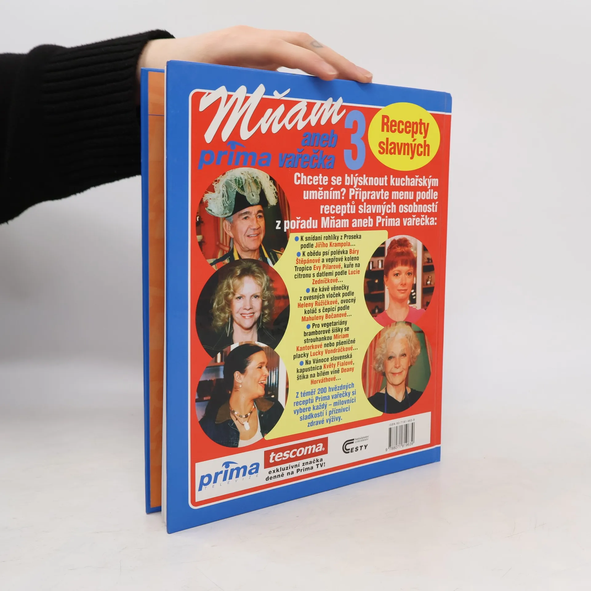 Recepty slavných. Chcete se blýsknout kuchařským uměním před svými přáteli či rodinou? Připravte menu podle receptů slavných osobností z pořadu Mňam aneb prima vařečka: k snídani rohlíky z Proseka podle Jiřího Krampola, k obědu psí polévku Báry Štěpánové a vepřové koleno Tropico Evy Pilarové, ke kávě věnečky z ovesných vloček podle Heleny Růžičkové nebo ovocný koláč s čepicí a la Mahulena Bočanová...