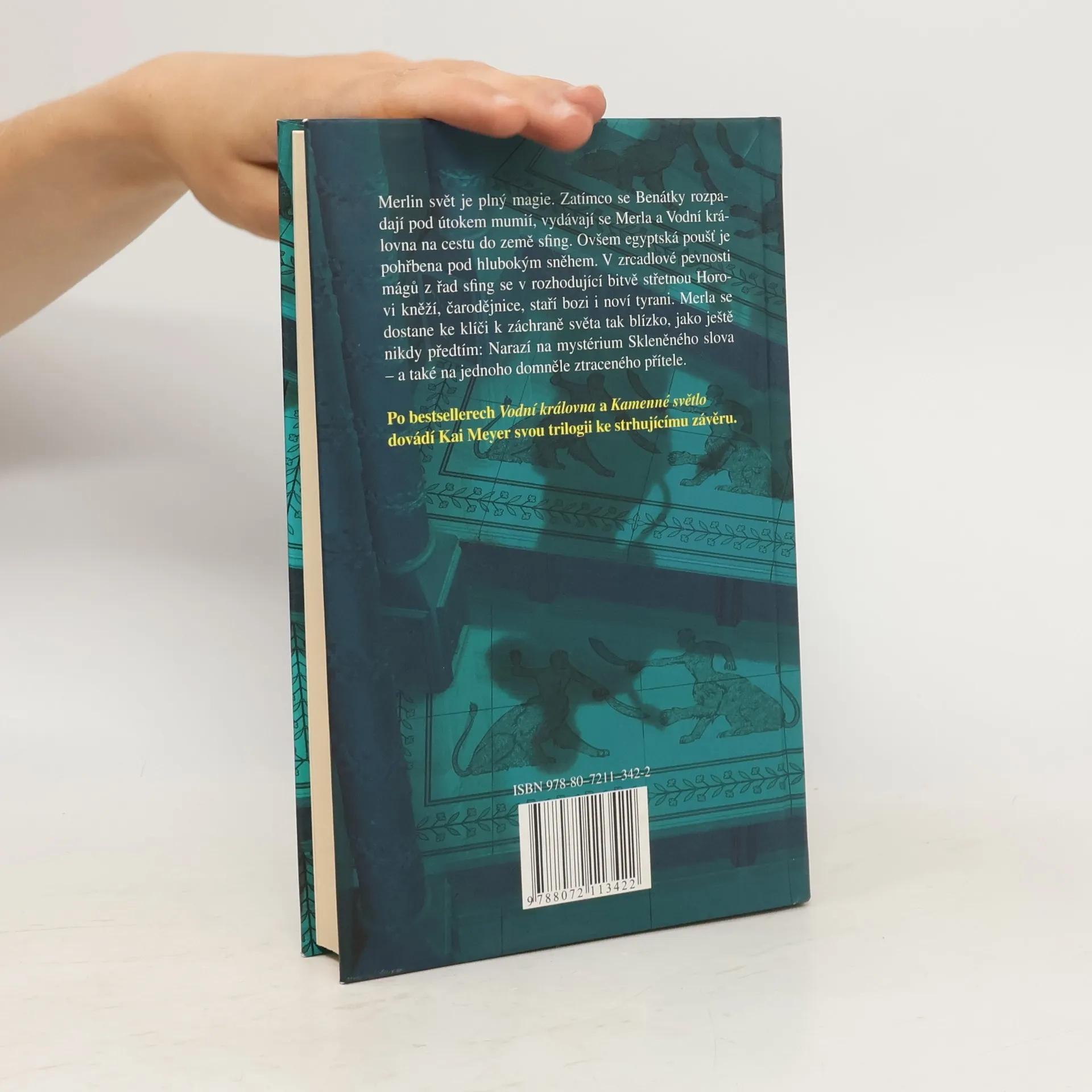 Merlin svět je plný magie. Zatímco se Benátky rozpadají pod útokem mumií, vydávají se Merla a Vodní královna na cestu do země sfing. Ovšem egyptská poušť je pohřbena pod hlubokým sněhem. V zrcadlové pevnosti mágů z řad sfing se v rozhodující bitvě střetnou Horovi kněží, čarodějnice, staří bozi i noví tyrani. Merla se dostane ke klíči k záchraně světa tak blízko, jako ještě nikdy předtím: Narazí na mystérium Skleněného slova – a také na jednoho domněle ztraceného přítele. Po románech Vodní královna a Kamenné světlo dovádí Kai Meyer svou trilogii ke strhujícímu závěru.
