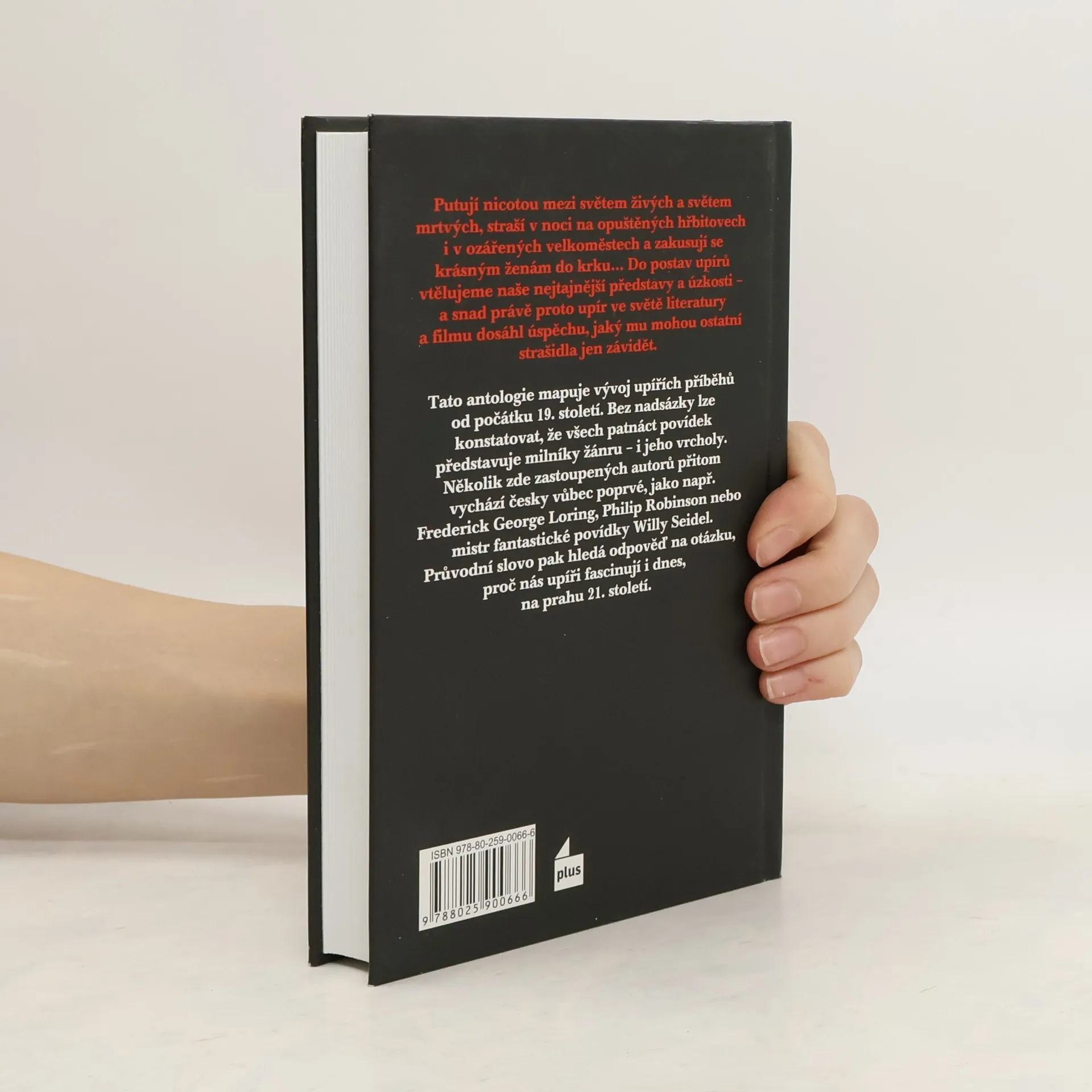 Putují nicotou mezi světem živých a světem mrtvých, straší v noci na opuštěných hřbitovech i v ozářených velkoměstech a zakusují se krásným ženám do krku. Do postav upírů vtělujeme naše nejtajnější představy a úzkosti – a snad právě proto upír dosáhl ve světě literatury a filmu takového triumfu, jaký mu mohou ostatní strašidla jen závidět. Někteří autoři se v češtině představují vůbec poprvé, jako např. Frederick George Loring, Philip Robinson nebo mistr fantastické povídky Willy Seidel.