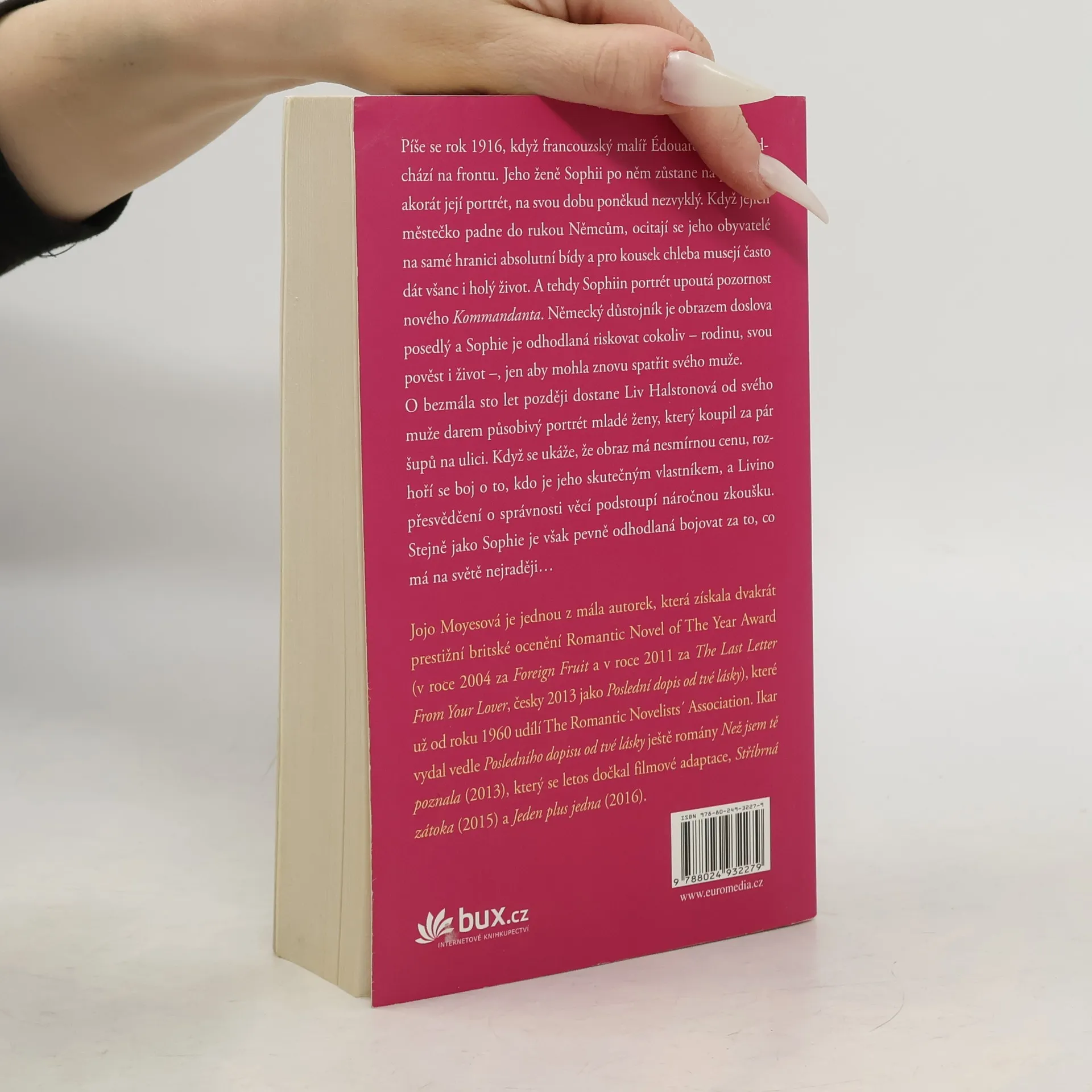 Píše se rok 1916, když francouzský malíř Édouard Lefevre odchází bojovat na frontu. Jeho mladé manželce Sophii zůstává na památku její portrét, na svou dobu poněkud nezvyklý. Poté co městečko, kde Sophie žije, padne do rukou Němcům, ocitají se jeho obyvatelé na samé hranici absolutní bídy a pro kousek chleba musejí často dát všanc i holý život. A tehdy Sophiin portrét upoutá pozornost nového Kommandanta. Německý důstojník je obrazem doslova posedlý a Sophie je odhodlaná riskovat cokoliv – rodinu, svou pověst i život –, jen aby mohla znovu spatřit svého muže... O bezmála sto let později dostane Liv Halstonová od svého muže darem působivý portrét mladé ženy, který koupil za pár šupů na ulici. Posléze se ovšem ukáže, že obraz má nesmírnou cenu, a rozhoří se boj o to, kdo je jeho skutečným vlastníkem. A Livino přesvědčení o správnosti věcí podstoupí náročnou zkoušku. Stejně jako Sophie je však pevně odhodlaná bojovat za to, co má na světě nejraději...