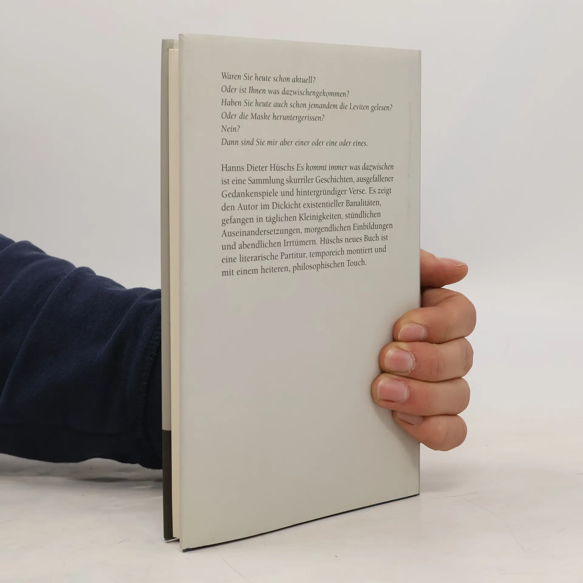 Hanns Dieter Hüsch entwickelt sich vom Liedermacher zum Kabarettisten, vom Satiriker zum Poeten und war zeit seines Lebens ein unbändiger, fulminanter Erzähler, der ständig mit Geschichten um sich wirft. Wenn nichts dazwischen kommt. Das aber ist häufig der Fall. „P“ Denn während er schreibt und erzählt, kommt ihm immer wieder unberechenbares in die Quere - Besuche, Krankheit, Küche und Kirche, Termine und Telefonate. Hüsch, der sich mit Vorliebe einen älteren angeheirateten älteren Herrn nennt und zornige alte Männer nicht ausstehen kann, versucht mit seinen Geschichten, sich immer mehr von der Welt zu entfernen. „P“ Er möchte ein Vitrinenkünstler sein, einer, der sich gegen Endgeld ins Glashaus setzt und denen, die ihn von außen betrachten, von innen aufmunternd zuwinkt. Hüsch hält die Fahne der Heiterkeit hoch. Seine Devise lautet: keine Dramen, keine Sippenhaft, ruhig bleiben und fröhlich sein. „P“ Was Hüsch in ES KOMMT IMMER ETWAS DAZWISCHEN schildert, manchmal scheinbar einfach, dann wieder höchst vertrackt arrangiert, zeigt ihn als glänzenden Erzähler, in schier unbegrenzter Fabulierlaune und mit stupender Phantasie.