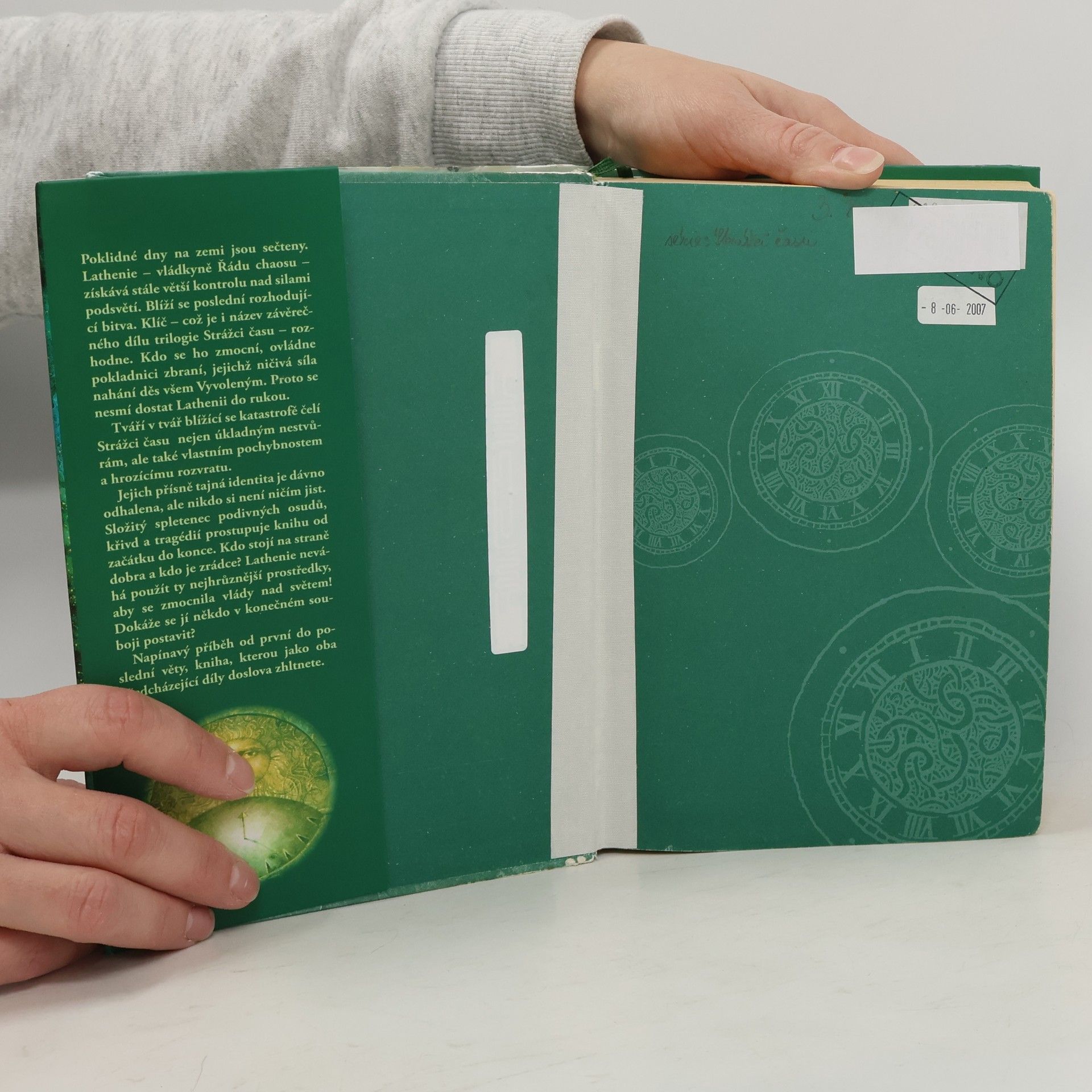 Poklidné dny na zemi jsou sečteny. Lathenia - vládkyně Řádu chaosu - získává stále větší kontrolu nad silami podsvětí. Blíží se poslední rozhodující bitva. Klíč - což je i název závěrečného dílu trilogie Strážci času - rozhodne. Kdo se ho zmocní, ovládne pokladnici zbraní, jejichž ničivá síla nahání děs všem Vyvoleným. Proto se nesmí dostat Lathenii do rukou. Tváří v tvář blížící se katastrofě čelí Strážci času nejen úkladným nestvůrám, ale také vlastním pochybnostem a hrozícímu rozvratu. Jejich přísně tajná identita je dávno odhalena, ale nikdo si není ničím jist. Složitý spletenec podivných osudů, křivd a tragédií prostupuje knihu od začátku do konce. Kdo stojí na straně dobra a kdo je zrádce? Lathenia neváhá použít ty nejhrůznější prostředky, aby se zmocnila vlády nad světem! Dokáže se jí někdo v konečném souboji postavit? Napínavý příběh od první do poslední věty, kniha, kterou jako oba předcházející díly doslova zhltnete.