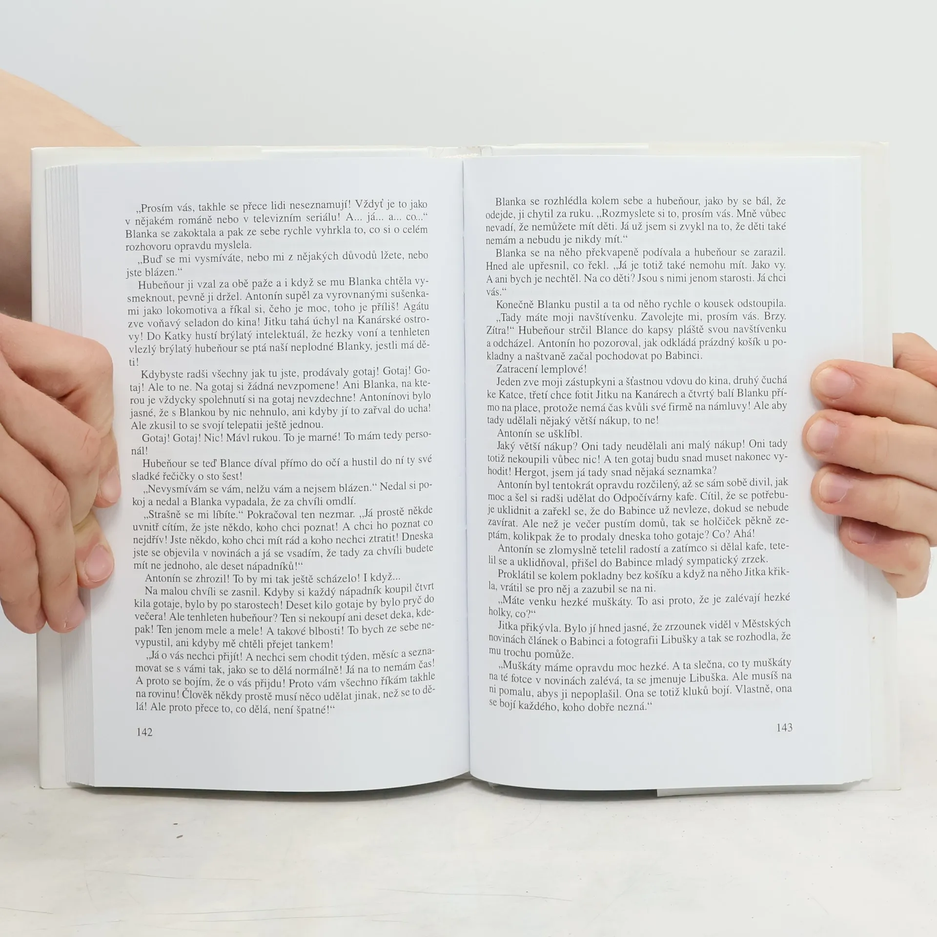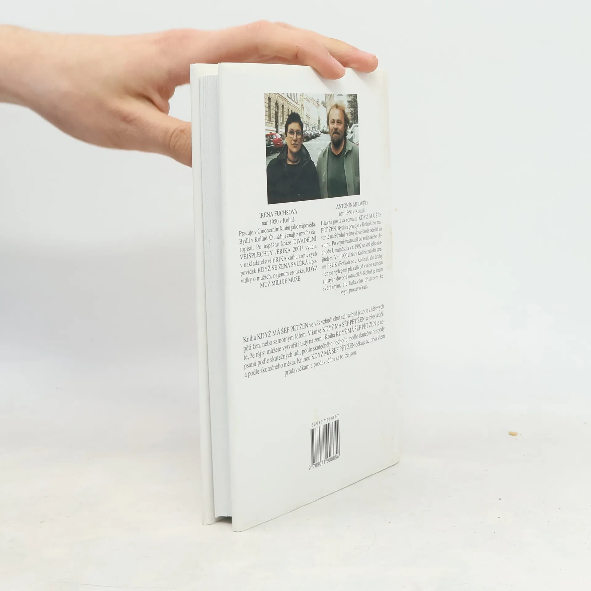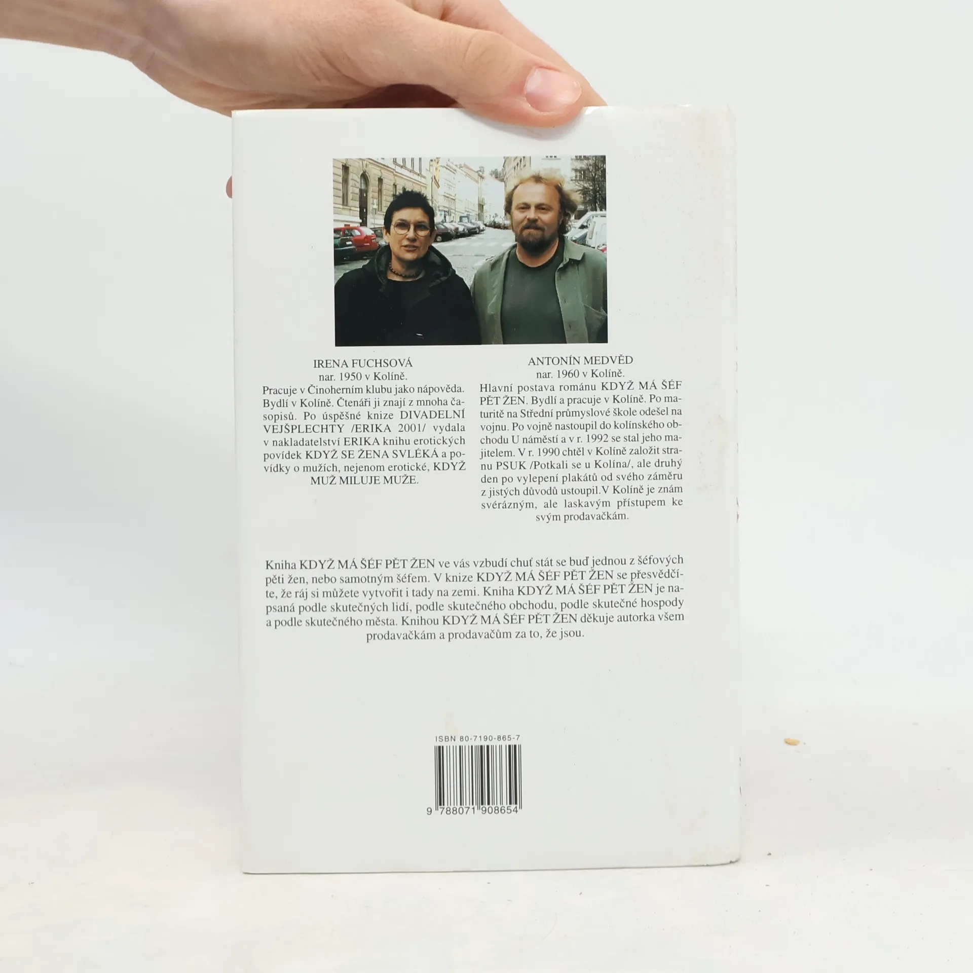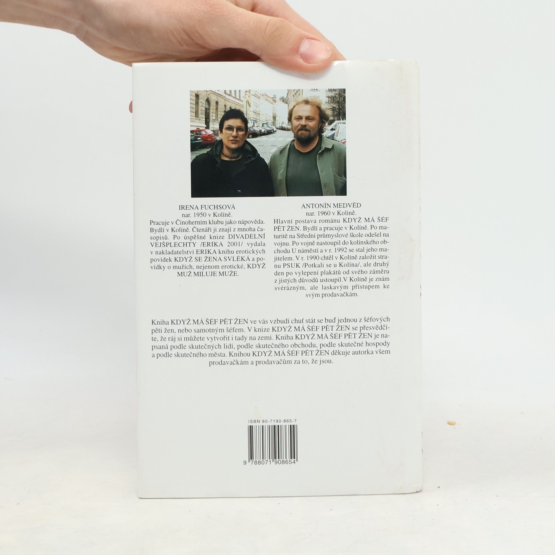 Povídání o jednom obchodě, svérázném šéfovi a jeho pěti prodavačkách Humoristická knížka vypráví o událostech v životě svérázného kolektivu jednoho kolínského obchodu v průběhu jednoho roku. Zapřisáhlý starý mládenec je majitelem obchodu, v němž pracuje pět osamělých žen různého věku. Vdovství či svobodný stav je pro práci v tomto krámu podmínkou, protože šéf, jinak laskavý a chápavý člověk, nechce aby jeho zaměstnankyně odváděly od práce rodinné starosti. Své nezadané pracovnice si šéf hýčká, ženám se v práci líbí, ale jejich idylka trvá v nezměněné podobě jen tak dlouho, dokud se k šéfovu zoufalství hromadně neobjeví nápadníci. Ovšem ani on sám není vůči půvabům sličné prodavačky imunní a tak než se rok s rokem sejde, pracuje ve vzkvétajícím obchodě pět šťastně vdaných prodavaček. Jednoduchá groteska pro nenáročné čtenáře.