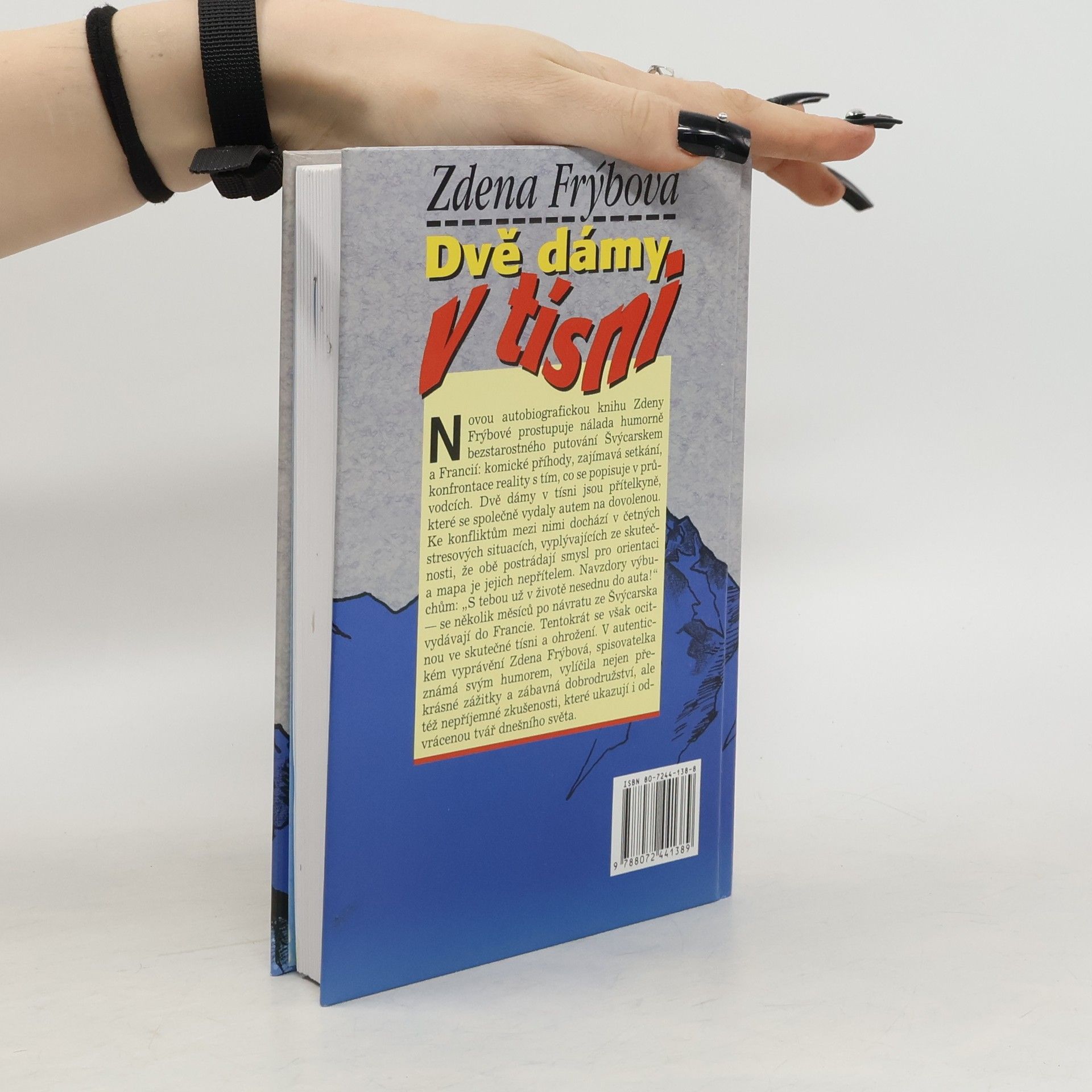 Autobiografickou knihu Zdeny Frýbové prostupuje nálada humorně bezstarostného putování Švýcarskem a Francií: komické příhody, zajímavá setkání, konfrontace reality s tím, co se popisuje v průvodcích. Dvě dámy v tísni jsou přítelkyně, které se společně vydaly autem na dovolenou. Ke konfliktům mezi nimi dochází v četných stresových situacích, vyplývajících ze skutečnosti, že obě postrádají smysl pro orientaci a mapa je jejich nepřítelem. V autentické vyprávění o vlastních cestách autorka vylíčila nejen krásné zážitky a zábavná dobrodružství, ale též nepříjemné zkušenosti, které ukazují i odvrácenou tvář dnešního světa. 2. vydání
