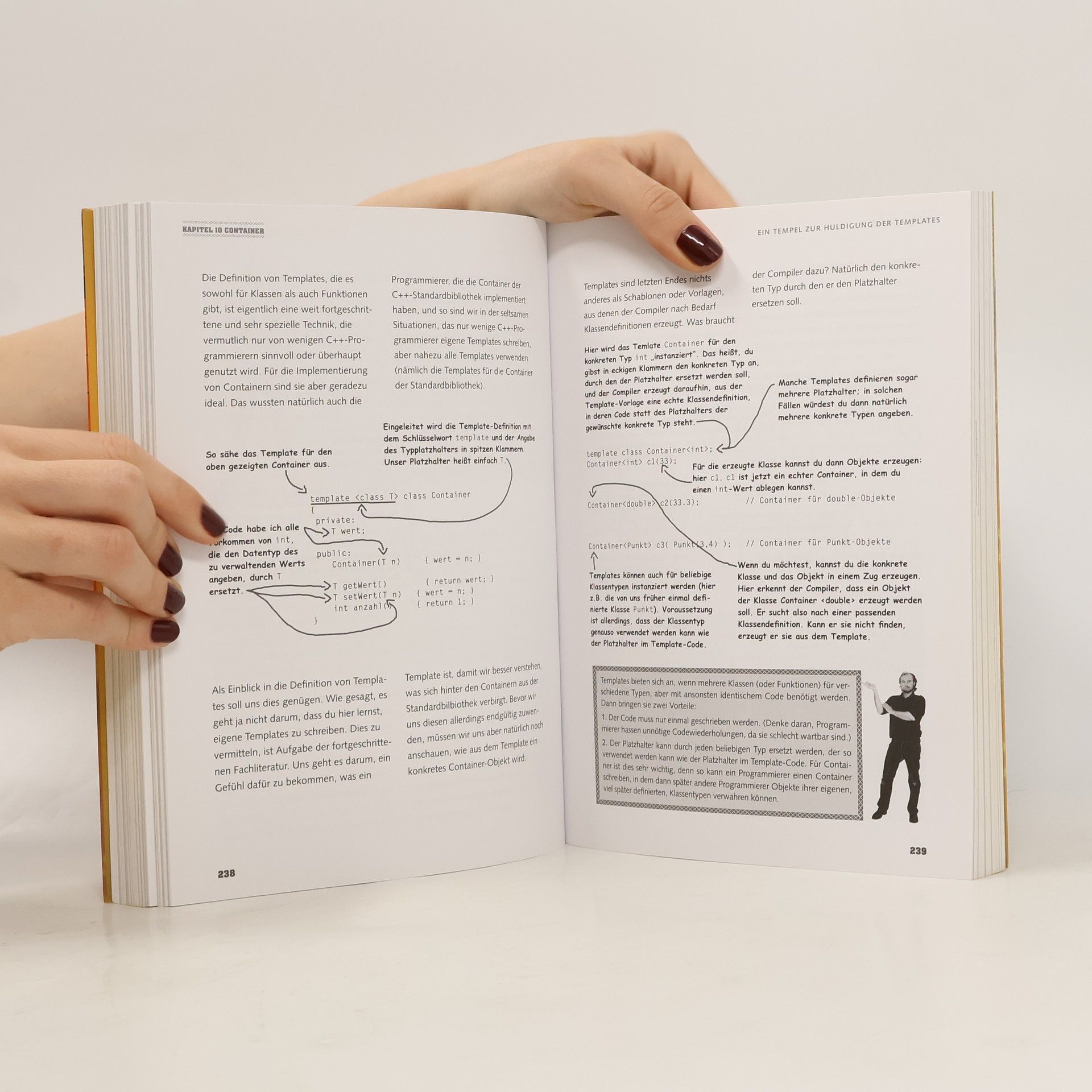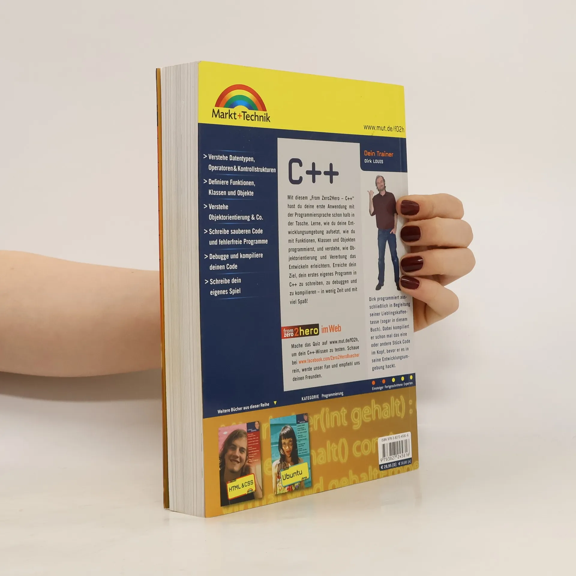 In den ersten Kapiteln wird eine Einführung in die Programmierung gegeben, beginnend mit den Grundlagen der Bitlogik und der Anwendung von Programmen. Du lernst, deinen ersten Programmquelltext in C++ zu erstellen und erfährst, wie Quelltextdateien in ausführbare Programme umgewandelt werden. Die Bedeutung von Ein- und Ausgabe wird hervorgehoben, gefolgt von einer Erklärung der Datentypen und Operatoren, die C++ unterstützt. Kontrollstrukturen ermöglichen es, Aktionen zu wiederholen oder auszuwählen. Arrays und Aufzählungen werden als Werkzeuge zur Speicherung ähnlicher Werte eingeführt, gefolgt von Funktionen, die den Code organisieren und wiederverwendbar machen. Die objektorientierte Programmierung wird detailliert behandelt, einschließlich der Definition eigener Klassen und der Techniken zur sicheren Programmierung. Konzepte wie Vererbung und Polymorphie werden als fortgeschrittene Techniken vorgestellt, die die Effizienz des Codes steigern. Die Ein- und Ausgabe wird weiter vertieft, insbesondere in Bezug auf Formatierung und Dateioperationen. Abschließend wird der Abschluss eines Programmierprojekts thematisiert, ergänzt durch Empfehlungen für weiterführende Literatur.