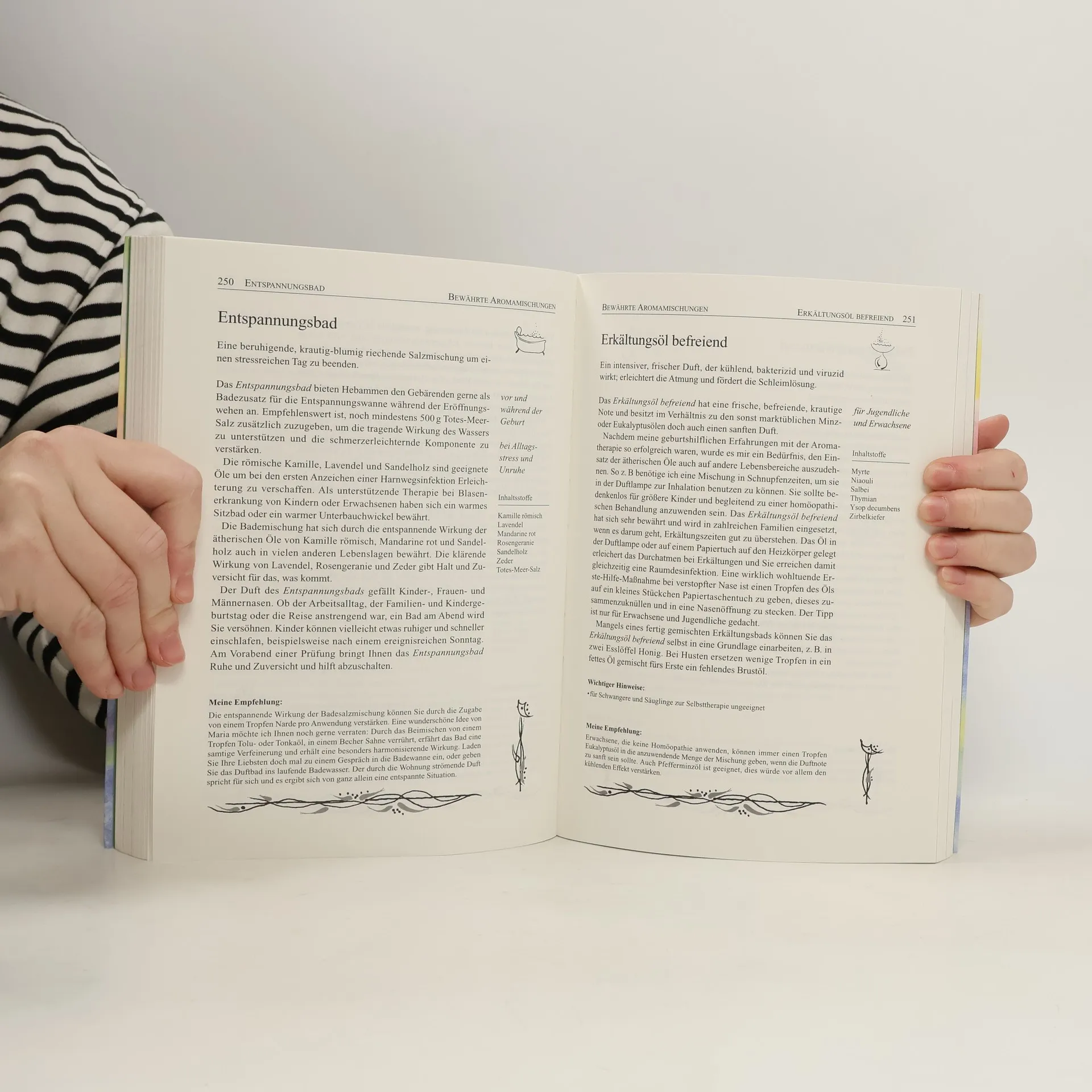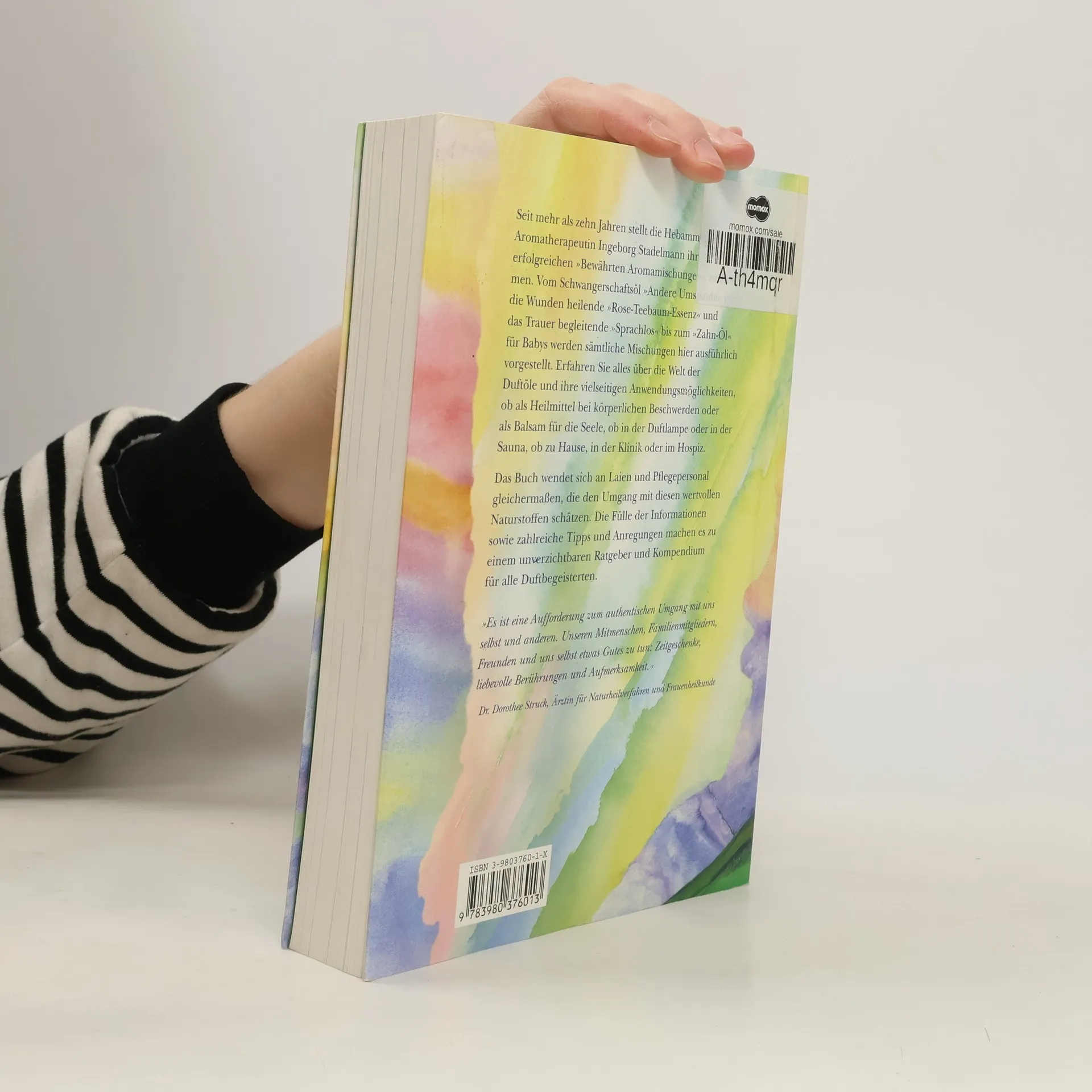 Erfahren Sie alles über die Welt der Duftöle und ihre vielseitigen Anwendungsmöglichkeiten. Die Hebamme und Aromatherapeutin Ingeborg Stadelmann präsentiert erstmals ihre „Bewährten Aromamischungen“, darunter das Schwangerschaftsöl „Andere Umstände“, die heilende „Rose-Teebaum-Essenz“, das trauerbegleitende „Sprachlos“ und das „Zahn-Öl“ für Babys. Das Buch richtet sich an Laien und Pflegepersonal und bietet eine Fülle an Informationen, Tipps und Anregungen, die es zu einem unverzichtbaren Ratgeber für Duftbegeisterte machen. Es ermutigt zu einem authentischen Umgang mit uns selbst und unseren Mitmenschen, indem es zur Schaffung von Zeitgeschenken, liebevollen Berührungen und Aufmerksamkeit anregt. In acht großen Kapiteln behandelt das Buch die Welt der Gerüche, Hydrolate, fette Pflanzenöle, ätherische Öle und deren Wirkungen, bewährte Aromamischungen, die Herkunft und Qualität ätherischer Öle sowie deren Handhabung und Dosierung. Die übersichtliche Gestaltung mit Kolumnentiteln und Untertiteln erleichtert die Orientierung. Empfehlungen der Autorin inspirieren zu persönlichen Mischungen, und zu jedem Öl werden Wirkungsbeschreibungen und Anwendungshinweise gegeben. Zudem enthält das Buch acht Hochglanzbildtafeln.