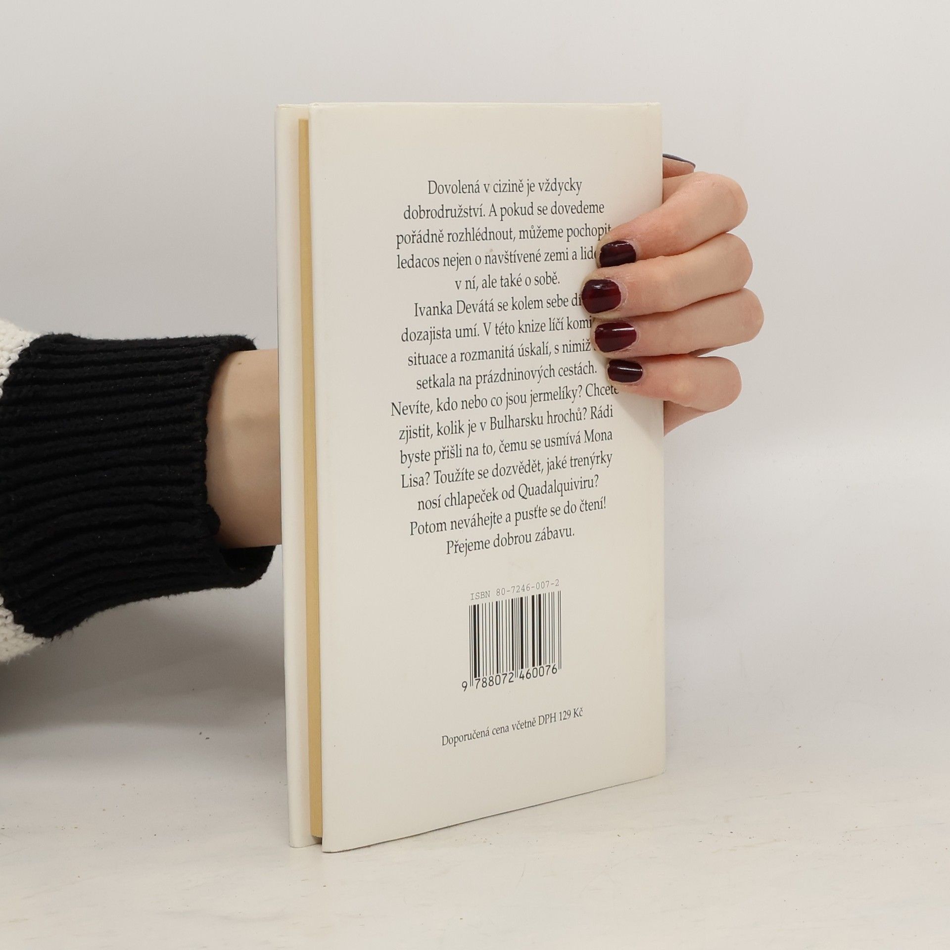 Dovolená v cizině je vždycky dobrodružství. A pokud se dovedeme pořádně rozhlédnout, můžeme pochopit ledacos nejen o navštívené zemi a lidech v ní, ale také o sobě. Ivanka Devátá se kolem sebe dívat dozajista umí. V této knize líčí komické situace a rozmanitá úskalí, s nimiž se setkala na prázdninových cestách.