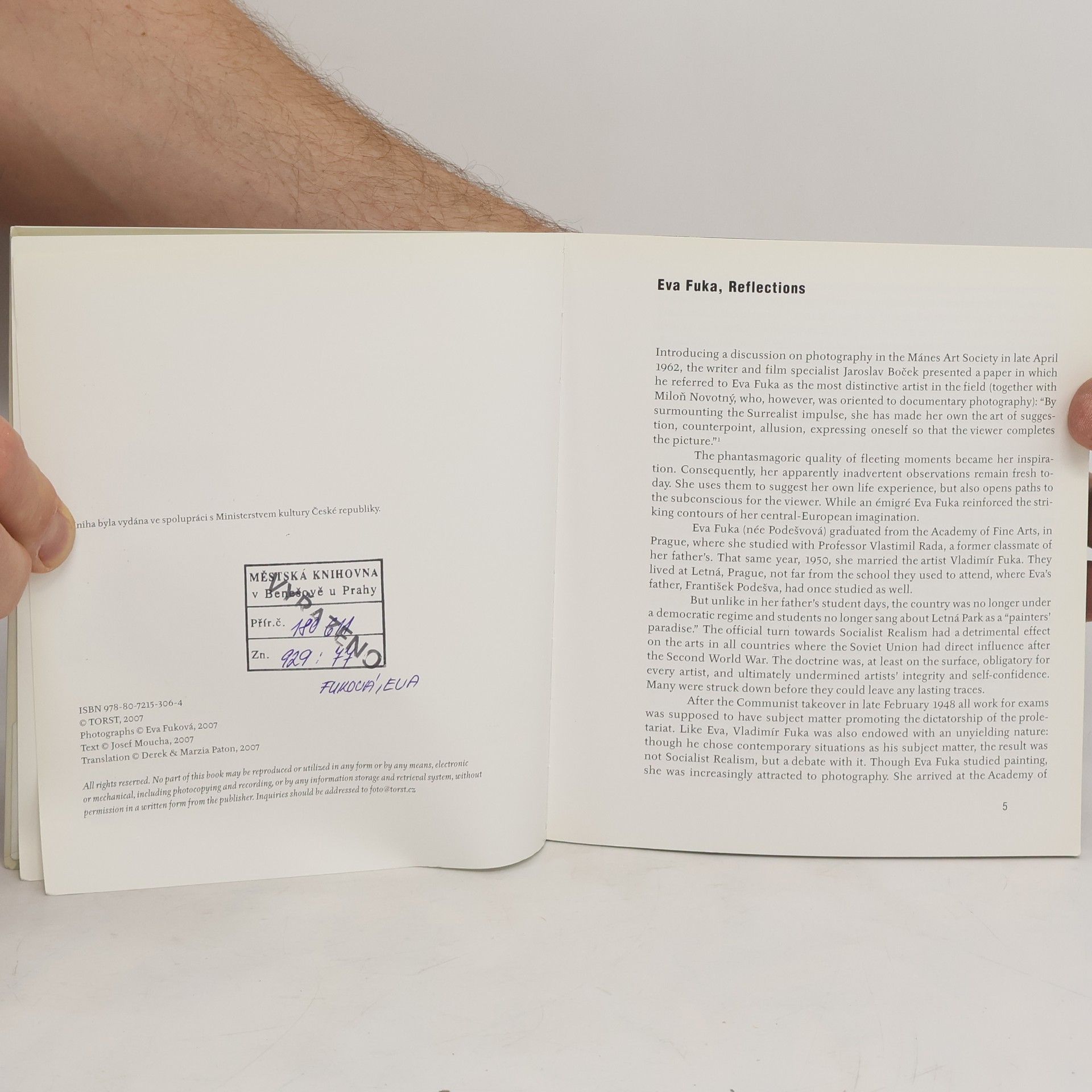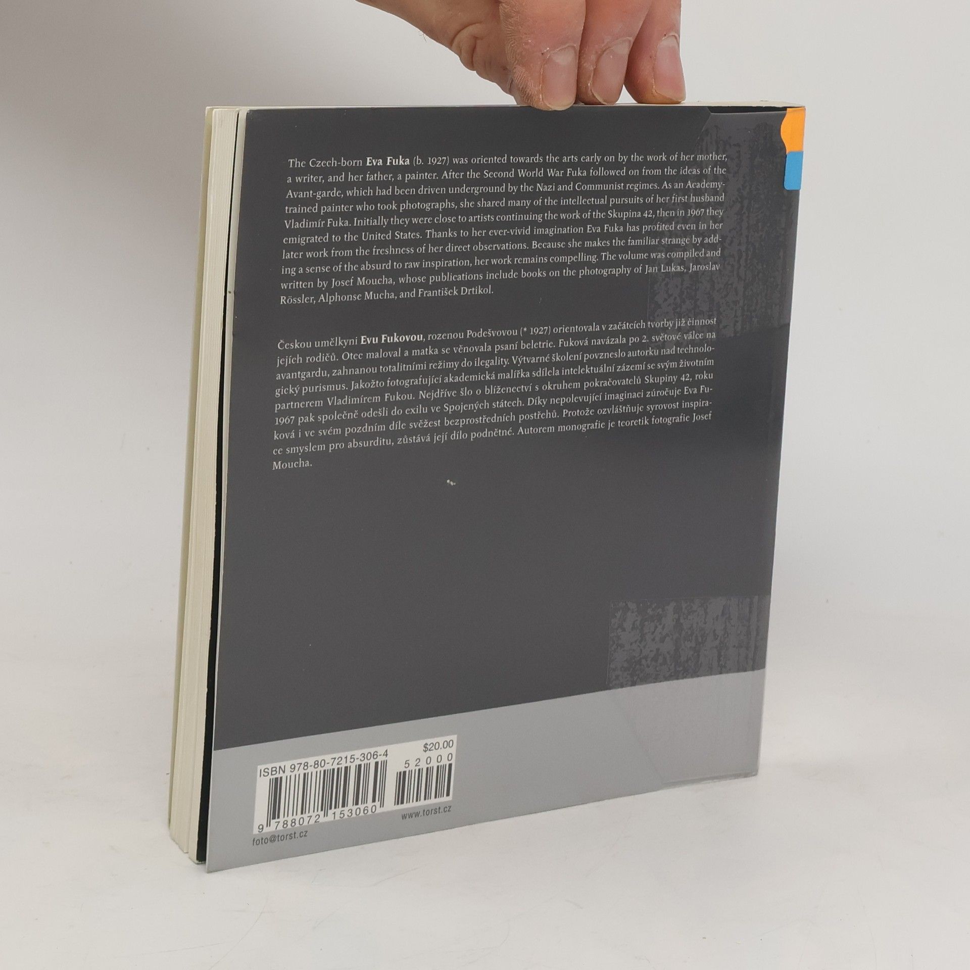 Nový svazek edice Fototorst. Eva Fuková (* 1927) navázala po 2. světové válce na avantgardu. Výtvarné školení ji povzneslo nad technologický purismus. Jakožto fotografující akademická malířka sdílela intelektuální zázemí se svým životním partnerem Vladimírem Fukou. Nejdříve šlo o blíženectví s okruhem pokračovatelů Skupiny 42, roku 1967 pak společně odešli do exilu ve Spojených státech. Díky nepolevující imaginaci zúročuje Eva Fuková i ve svém pozdním díle svěžest bezprostředních postřehů. Autorem monografie je teoretik fotografie Josef Moucha.