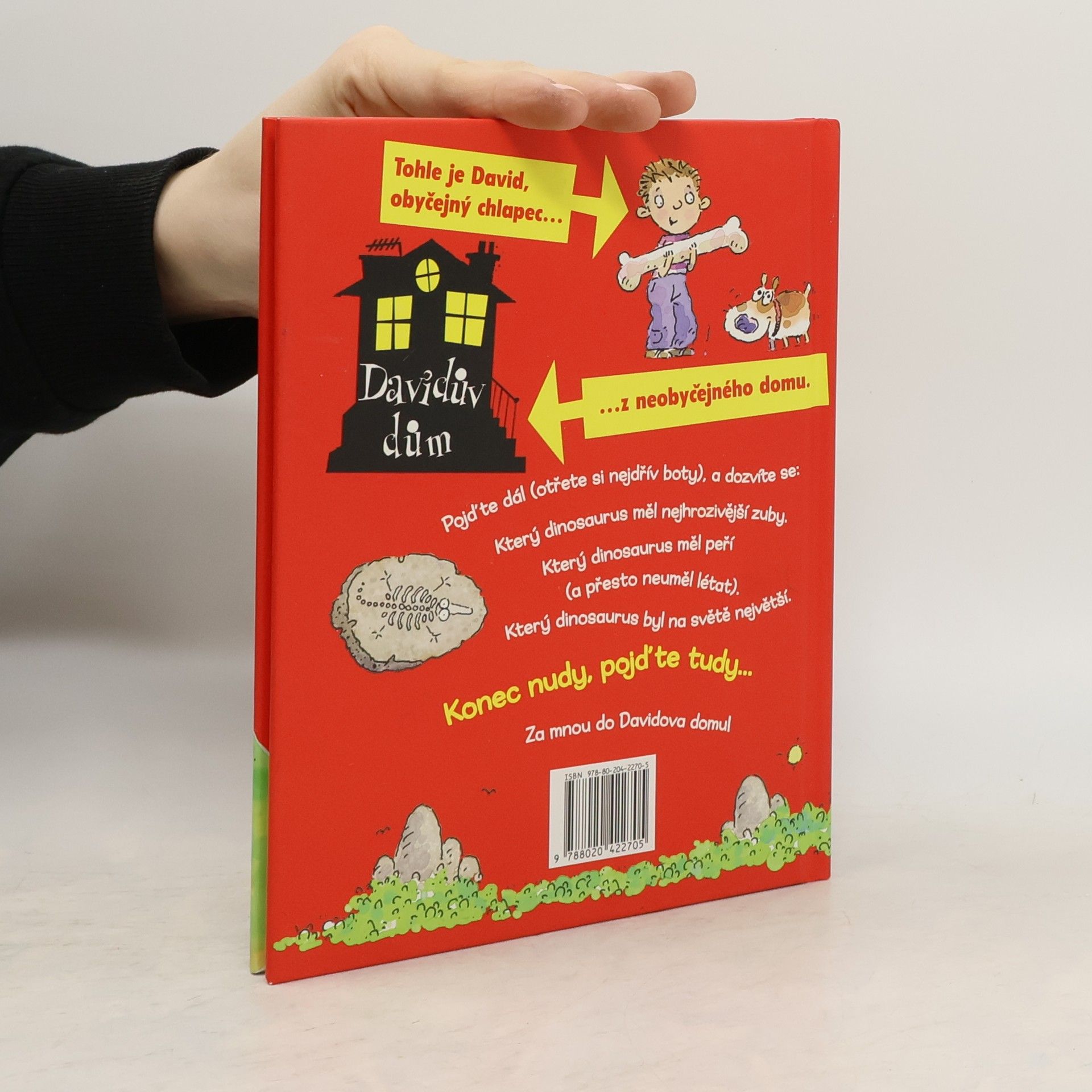 Vítejte v kouzelném Davidově domě, kde se může stát cokoli (a taky se to často stane). Kromě Davida a jeho žravého psa Moulíka se tu setkáte s panem Očkem (vševědoucím správcem domu), nápaditým vynálezcem Koumesem či Kubou Kutílkem, specialistou na převleky. V Dinosaurech se dozvíte, který dinosaurus byl na světě největší, který měl nejhrozivější zuby či který měl peří (a přesto neuměl létat).