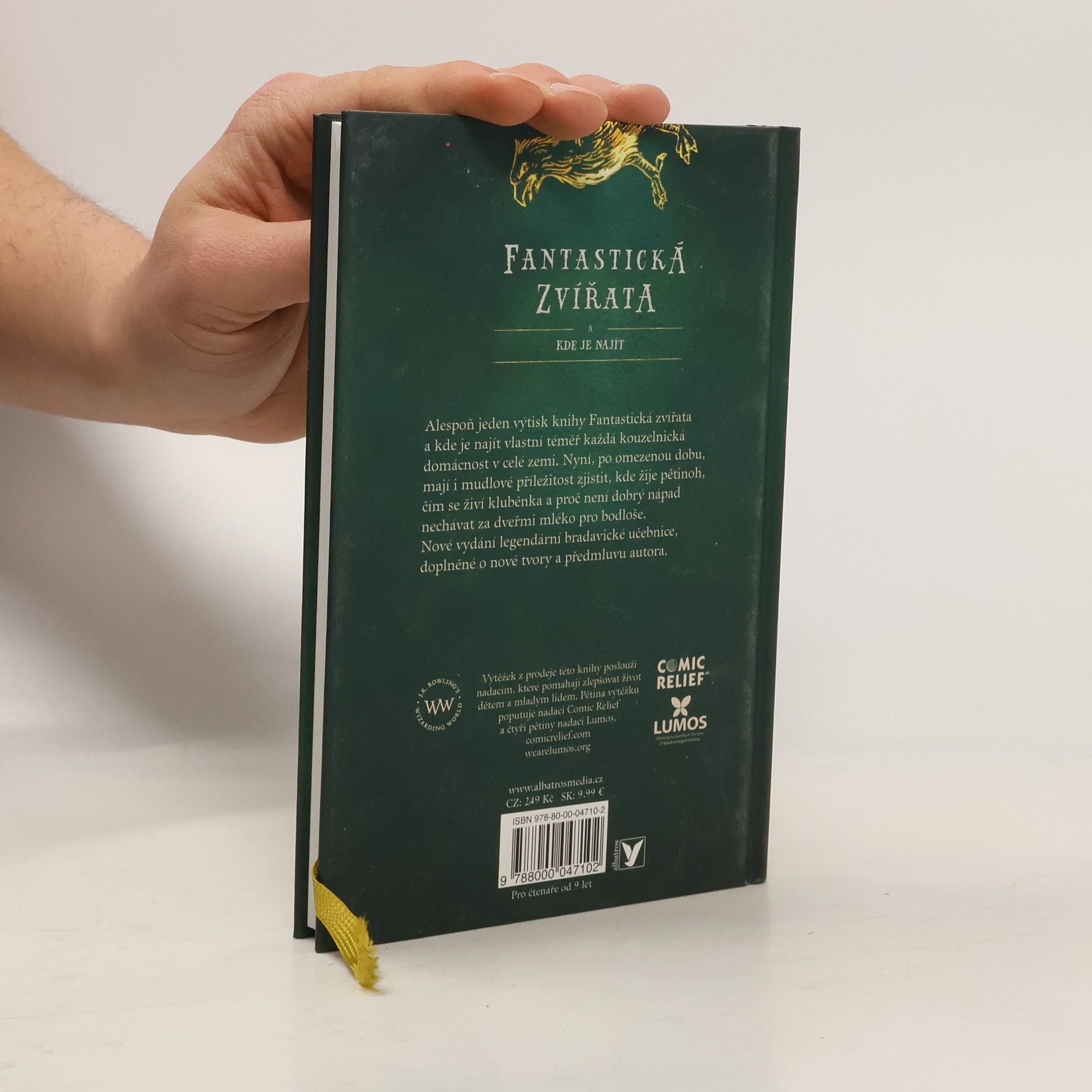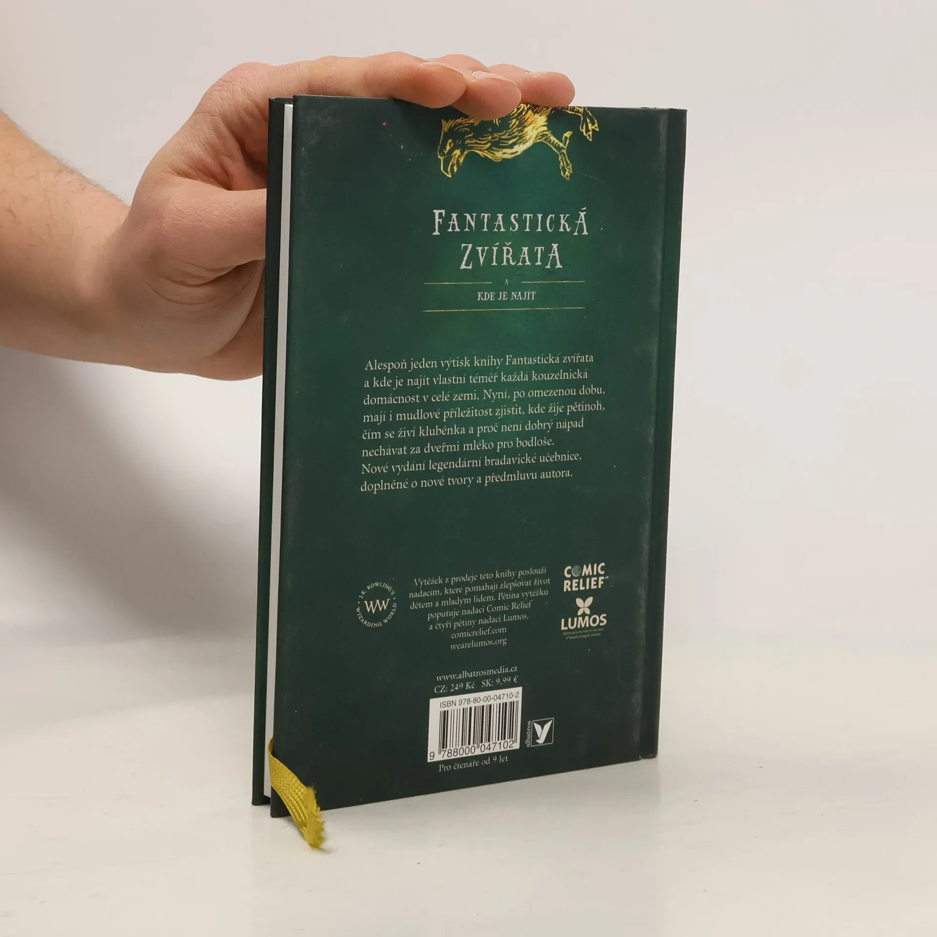 Alespoň jeden výtisk knihy Fantastická zvířata a kde je najít vlastní téměř každá kouzelnická domácnost v celé zemi. Nyní, po omezenou dobu, mají i mudlové příležitost zjistit, kde žije pětinoh, čím se živí kluběnka a proč není dobrý nápad nechávat za dveřmi mléko pro bodloše. Tentokrát s novou obálkou i novými ilustracemi.