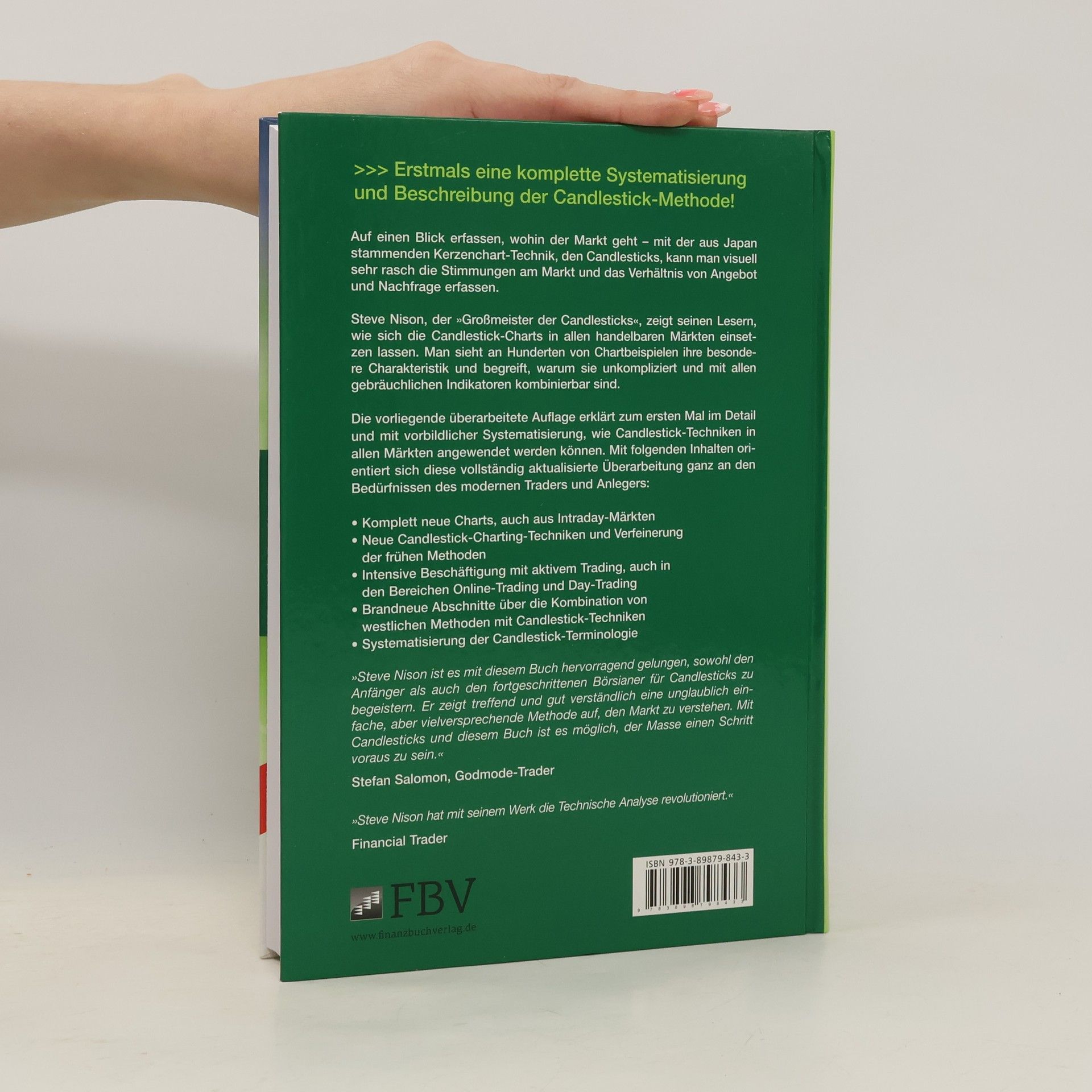 Auf einen Blick erfassen, wohin der Markt geht – mit der aus Japan stammenden Kerzenchart-Technik, den Candlesticks, kann man visuell sehr rasch die Stimmungen am Markt und das Verhältnis von Angebot und Nachfrage erfassen. Steve Nison, der »Großmeister der Candlesticks«, zeigt seinen Lesern, wie sich die Candlestick-Charts in allen handelbaren Märkten einsetzen lassen. Man sieht an Hunderten von Chartbeispielen ihre besondere Charakteristik und begreift, warum sie unkompliziert und mit allen gebräuchlichen Indikatoren kombinierbar sind. Die vorliegende überarbeitete Auflage erklärt zum ersten Mal im Detail und mit vorbildlicher Systematisierung, wie Candlestick-Techniken in allen Märkten angewendet werden können. Mit folgenden Inhalten orientiert sich diese vollständig aktualisierte Überarbeitung ganz an den Bedürfnissen des modernen Traders und Anlegers: - Komplett neue Charts, auch aus Intraday-Märkten - Neue Candlestick-Charting-Techniken und Verfeinerung der frühen Methoden - Intensive Beschäftigung mit aktivem Trading, auch in den Bereichen Online-Trading und Day-Trading - Brandneue Abschnitte über die Kombination von westlichen Methoden mit Candlestick-Techniken - Systematisierung der Candlestick-Terminologie