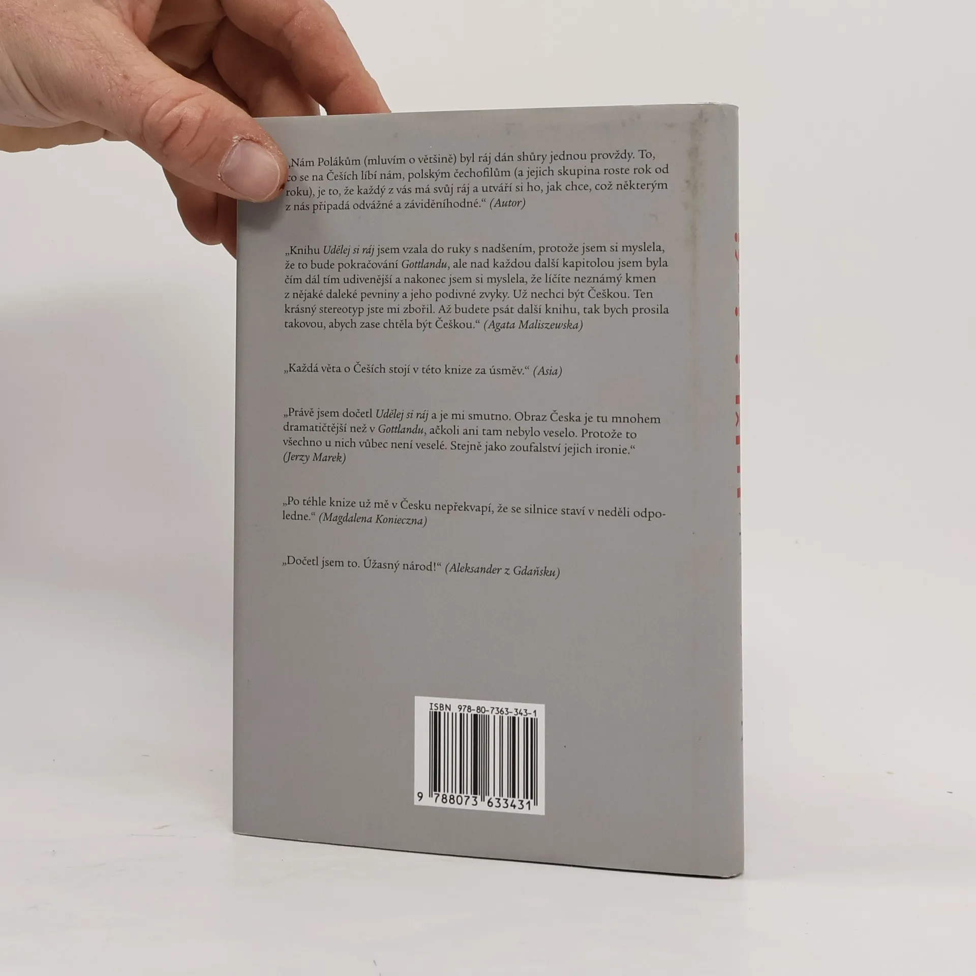 Nová kniha autora bestselleru Gottland, který byl přeložen do deseti světových jazyků a získal řadu ocenění. Zatímco Gottland vyprávěl o naší historii v uplynulých sto letech, Udělej si ráj je knihou o současném Česku. Je to subjektivní záznam z autorových častých návštěv Česka v posledních deseti letech, vyprávění o tom, co Poláka-čechofila fascinuje na dnešní české společnosti a kultuře – „kultuře radosti smutku“. Svébytným proplétáním motivů vzniká vrstevnatý obraz o naší zemi a kultuře, jak ho vidí slavný polský reportér a spisovatel, který je dnes také u nás významnou osobností. Kniha patří v Polsku k pěti nejúspěšnějším z minulého roku, autorská práva na ni byla tři měsíce od vydání prodána do pěti zemí. Český překlad doplňuje soubor deseti fotografií významného českého fotografa Františka Dostála.