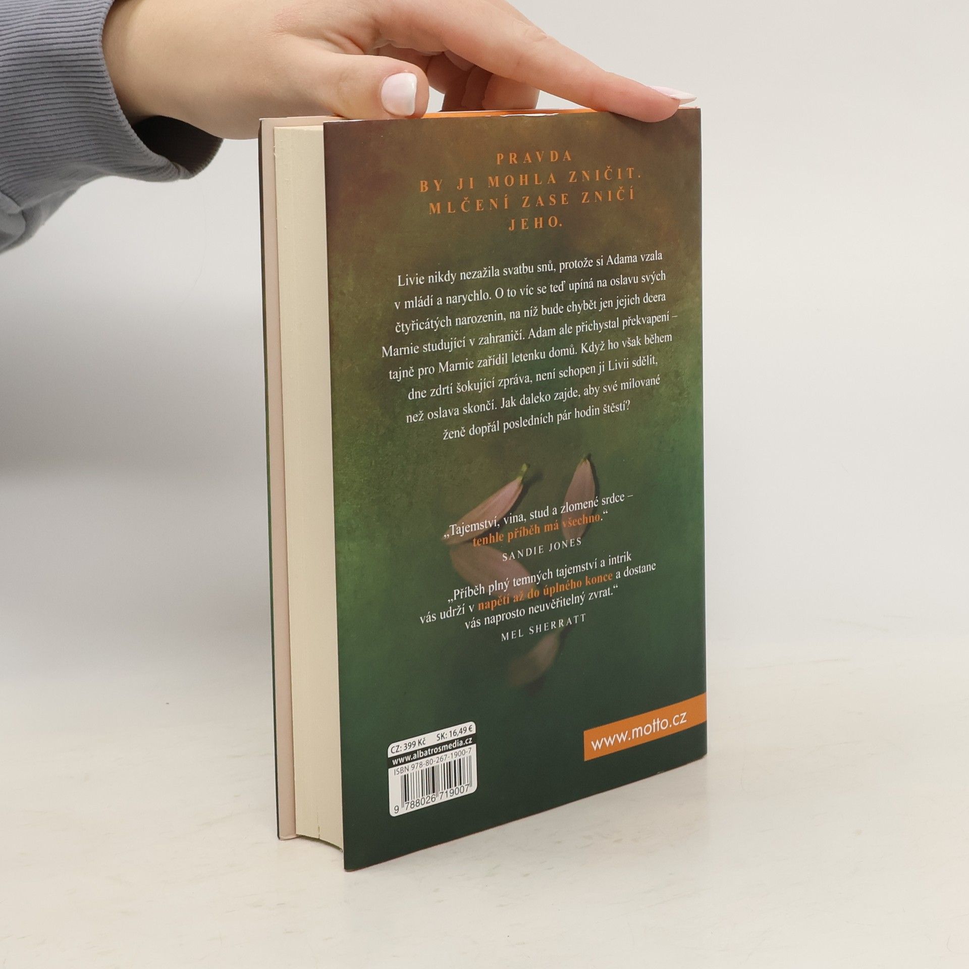 Pravda by ji mohla zničit. Mlčení zase zničí jeho. Livia nikdy nezažila svatbu snů, protože si Adama vzala v mládí a narychlo. O to víc se teď upíná na oslavu svých čtyřicátých narozenin, na níž bude chybět jen jejich dcera Marnie studující v zahraničí. Adam ale přichystal překvapení – tajně pro Marnie zařídil letenku domů. Když ho však během dne zdrtí šokující zpráva, není schopen ji Livii sdělit, než oslava skončí. Jak daleko zajde, aby své milované ženě dopřál posledních pár hodin štěstí?