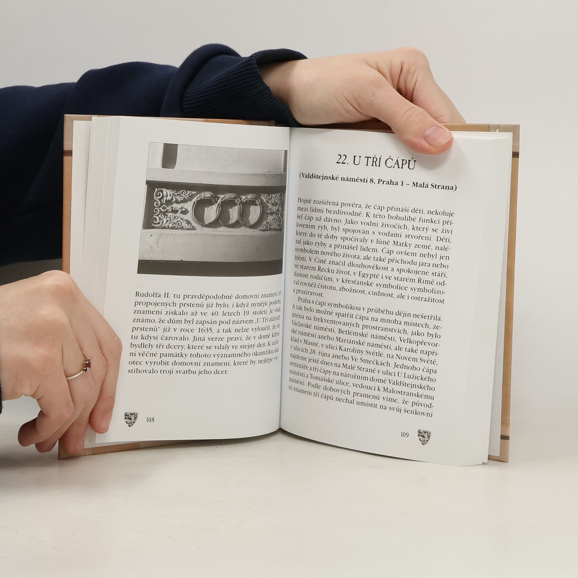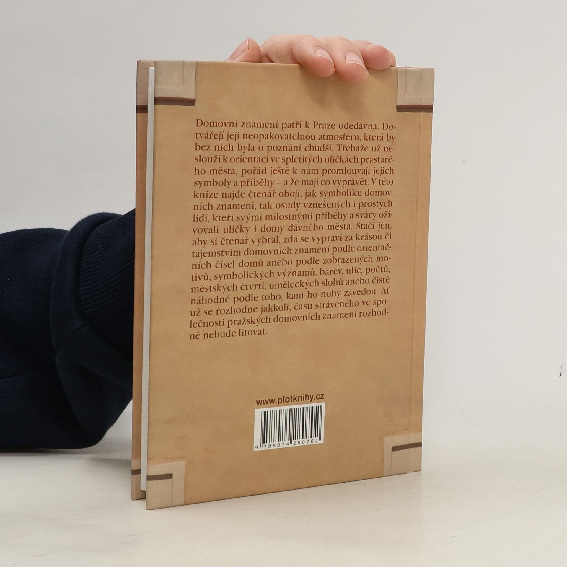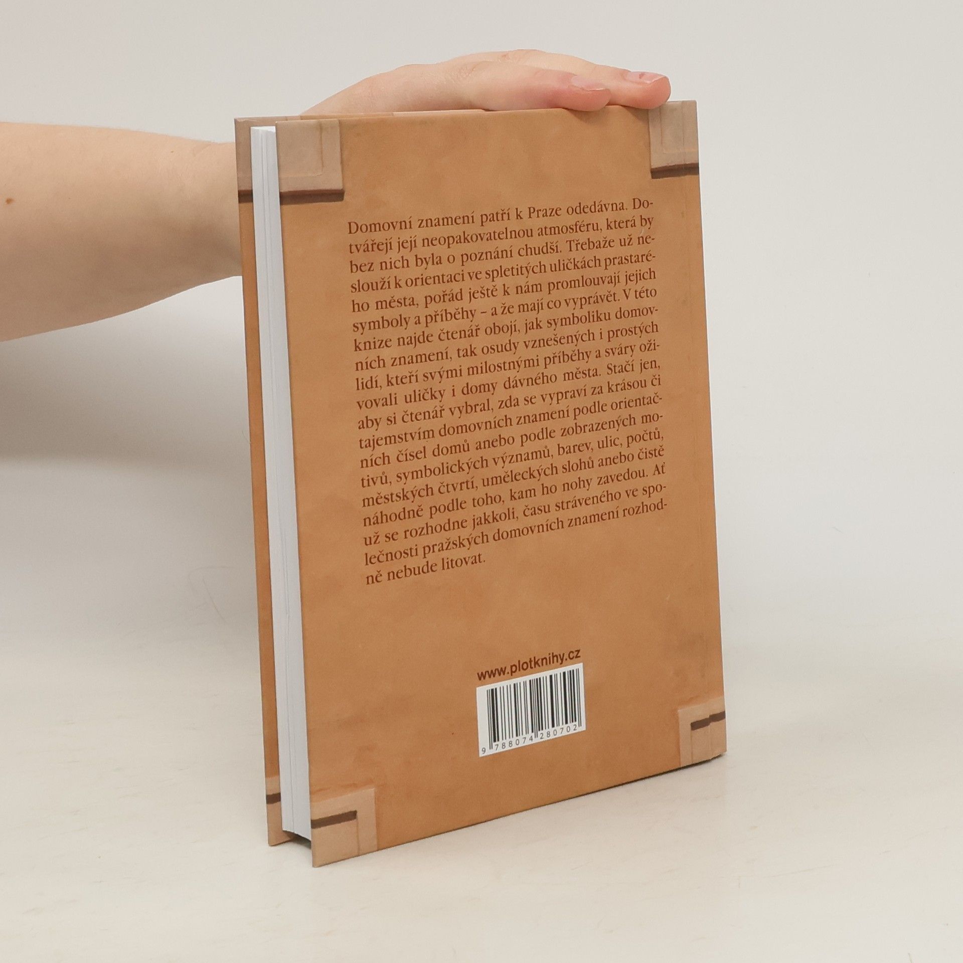 Domovní znamení patří k Praze odedávna. Dotvářejí její neopakovatelnou atmosféru, která by bez nich byla o poznání chudší. Třebaže už neslouží k orientaci ve spletitých uličkách starého města, pořád ještě k nám promlouvají jejich symboly a příběhy -- a že mají co vyprávět. V této knize najde čtenář obojí, jak symboliku domovních znamení, tak osudy vznešených i prostých lidí, kteří svými láskami a sváry oživovali uličky i domy starého města. Stačí jen, aby si vybral, zda se vypraví za krásou a tajnostmi domovních znamení podle orientačních čísel domů, které zdobí, anebo podle zobrazených motivů, symbolických významů, barev, ulic, počtů, městských čtvrtí, uměleckých slohů anebo čistě náhodně podle toho, kam ho jeho nohy zavedou. Ať už se rozhodne jakkoli, času stráveného ve společnosti pražských domovních znamení rozhodně nebude litovat.