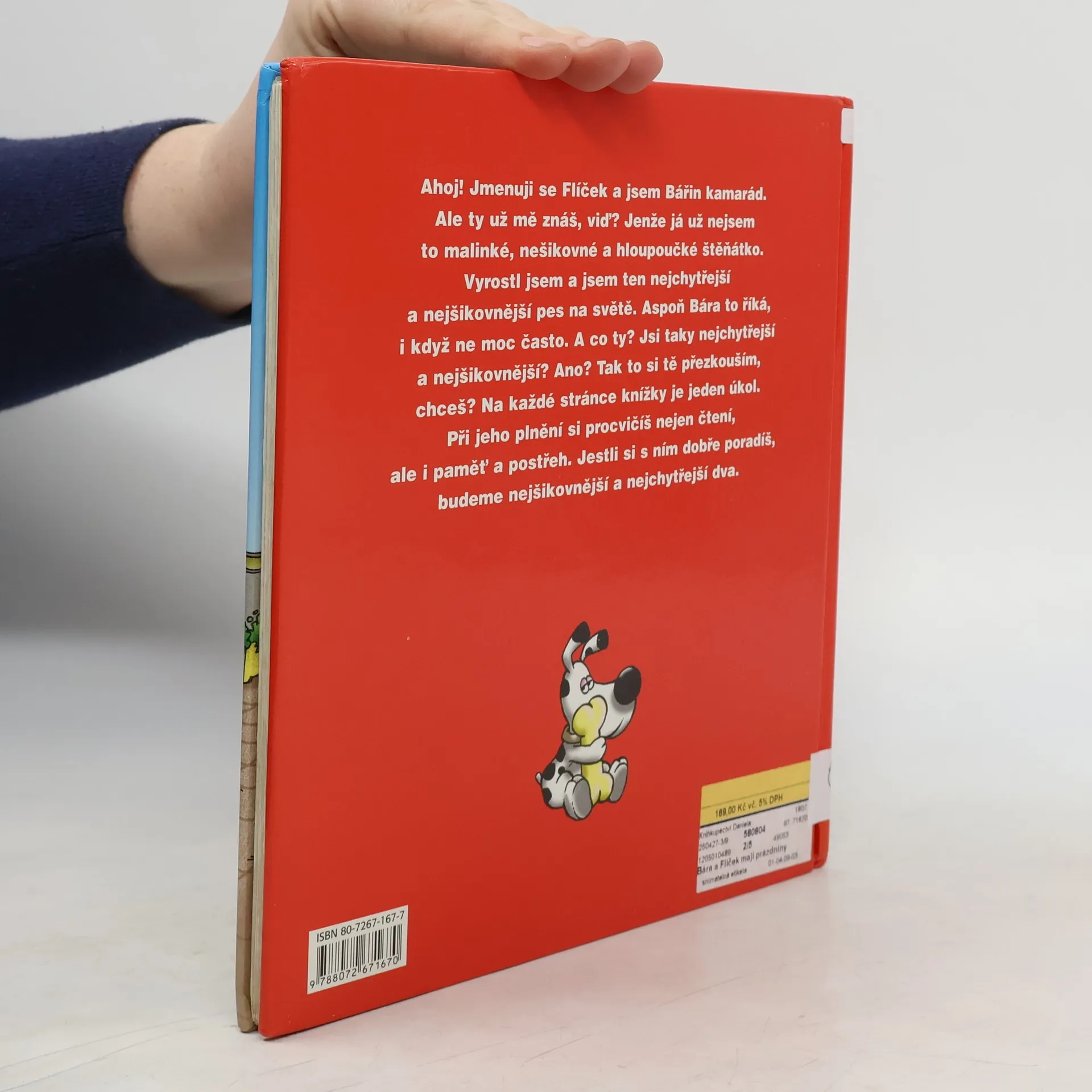 Ahoj! Jmenuji se Flíček a jsem Bářin kamarád. Ale ty už mě znáš, vid'? Jenže já už nejsem to malinké, nešikovné a hloupoučké štěňátko. Vyrostl jsem a jsem ten nejchytřejší a nejšikovnější pes na světě. Aspoň Bára to říká, i když ne moc často. A co ty? Jsi taky nejchytřejší a nejšikovnější? Ano? Tak to si tě přezkouším, chceš? Na každé stránce knížky je jeden úkol. Při jeho plnění si procvičíš nejen čtení, ale i paměť a postřeh. Jestli si s ním dobře poradíš, budeme nejšikovnější a nejchytřejší dva.
