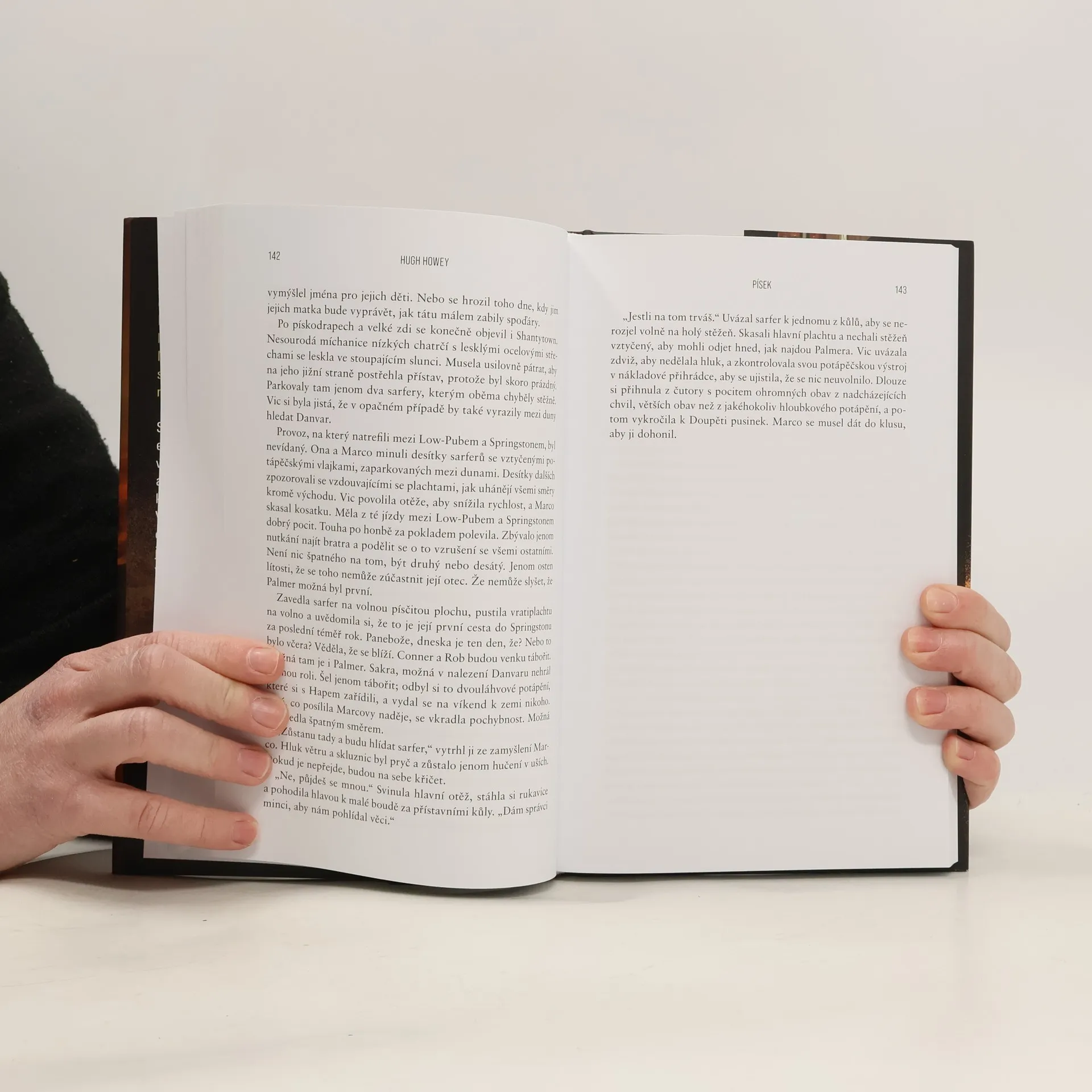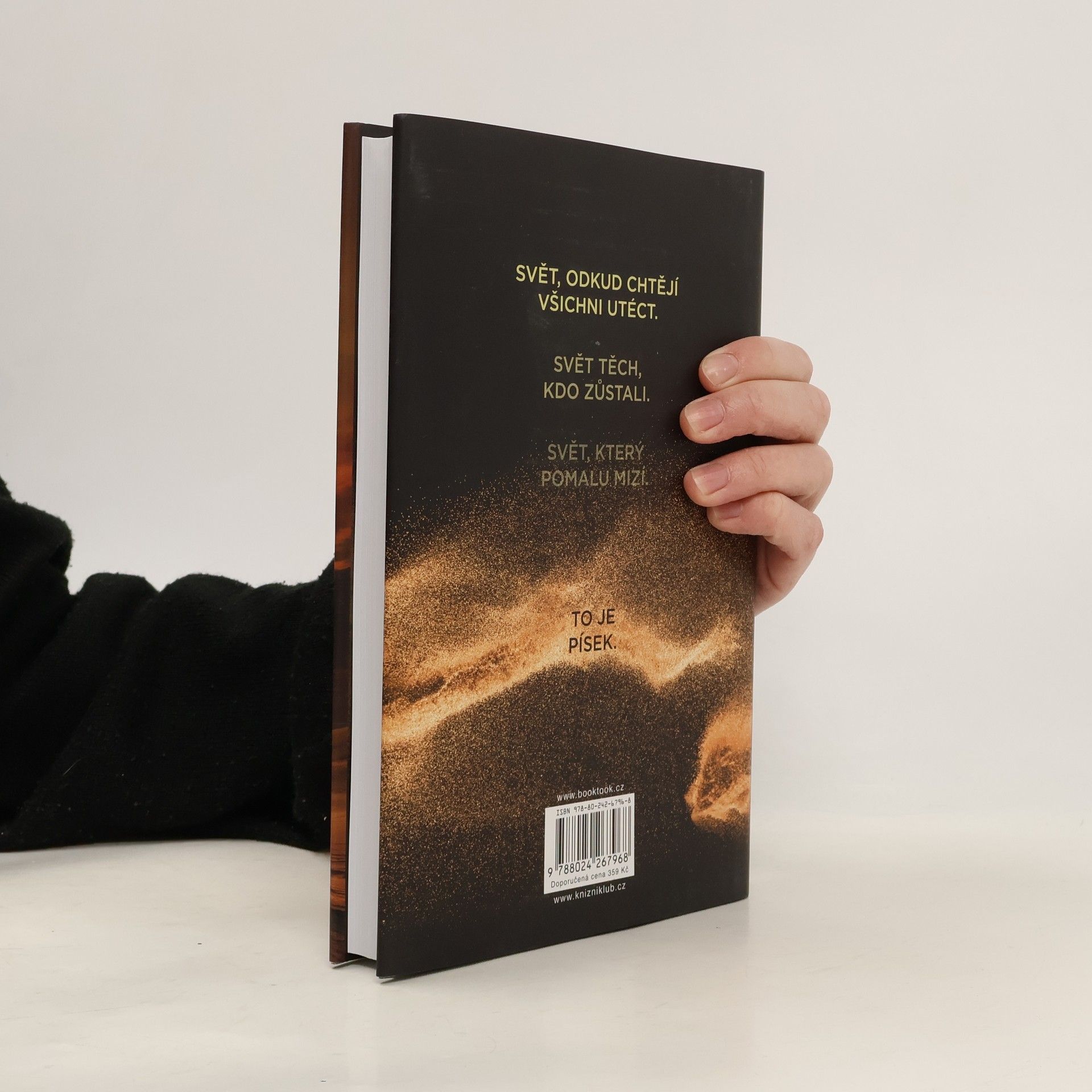 Ztracený otec. Opuštěná rodina. Zapomenutý svět. Vítejte v Písku, dalším apokalyptickém thrilleru Hugha Howeyho, autora fenomenální bestsellerové trilogie Silo, Turnus a Prach. Než se do něj vnoříte, pořádně se nadechněte – může to být naposledy. Starý svět byl zasypán. Nový teď existuje jen na vršcích pohyblivých dun. V zemi skučícího větru a pekelného, všudypřítomného písku se čtveřice sourozenců pokouší dát znovu dohromady svou rodinu. Jejich otec pracoval jako písečný potápěč, jeden z těch, kdo z hlubin pouště přináší pozůstatky starého světa, které lidem pomáhají přežít. Ale otec zmizel. A svět, ve kterém své děti zanechal, nejspíš brzy zmizí taky…