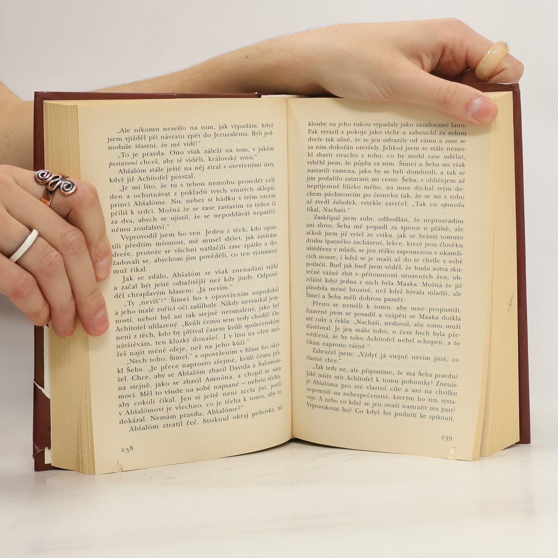 Příběh se odehrává v době, kdy je král David starý a znavený. Rozhodování o tom, který z jeho tří synů bude jeho nástupcem, podnítí na královském dvoře spiknutí, intriky a lstivé úskoky Davidových synů a jejich manželek. Prvorozený Amnón si činí nárok na trůn a těžko mu může být upřen. Druhorozený Abšolón je však Davidovým favoritem. Králova nejnovější manželka ovšem prosazuje jejich syna Šalamouna. Před čtenářem se rozehrává příběh o zneužívání moci, o lidech, jejichž nitro zkazila touha po bohatství a o vítězství duše, která touží po dobru. Druhý díl biblické trilogie.