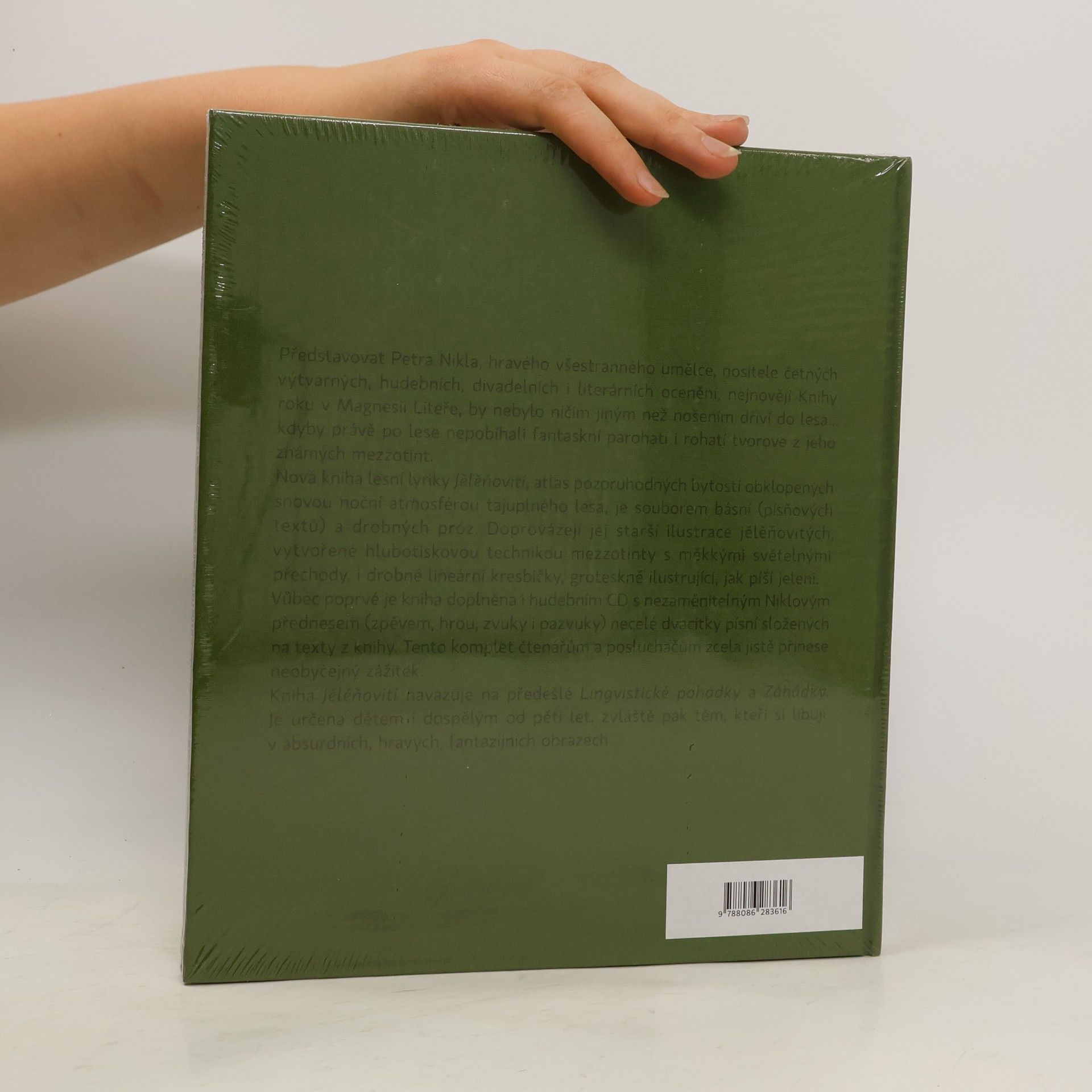 Představovat Petra Nikla, hravého všestranného umělce, nositele četných výtvarných, hudebních, divadelních i literárních ocenění, nejnověji Knihy roku v Magnesii Liteře, by nebylo ničím jiným než nošením dříví do lesa... kdyby právě po lese nepobíhali fantaskní parohatí i rohatí tvorové z jeho známých mezzotint. Nová kniha lesní lyriky Jělěňovití, atlas pozoruhodných bytostí obklopených snovou noční atmosférou tajůplného lesa, je souborem básní (písňových textů) a drobných próz. Doprovázejí jej starší ilustrace jělěňovitých, vytvořené hlubotiskovou technikou mezzotinty s měkkými světelnými přechody, i drobné lineární kresbičky, groteskně ilustrující, jak píší jeleni. Tento komplet čtenářům a posluchačům zcela jistě přinese neobyčejný zážitek. Kniha Jělěňovití navazující na předešlé Lingvistické pohádky a Záhádky je určena dětem i dospělým od pěti let, zvláště pak těm, kteří si libují v absurdních, hravých a fantazijních obrazech. --------------------------------------------------------------------------------