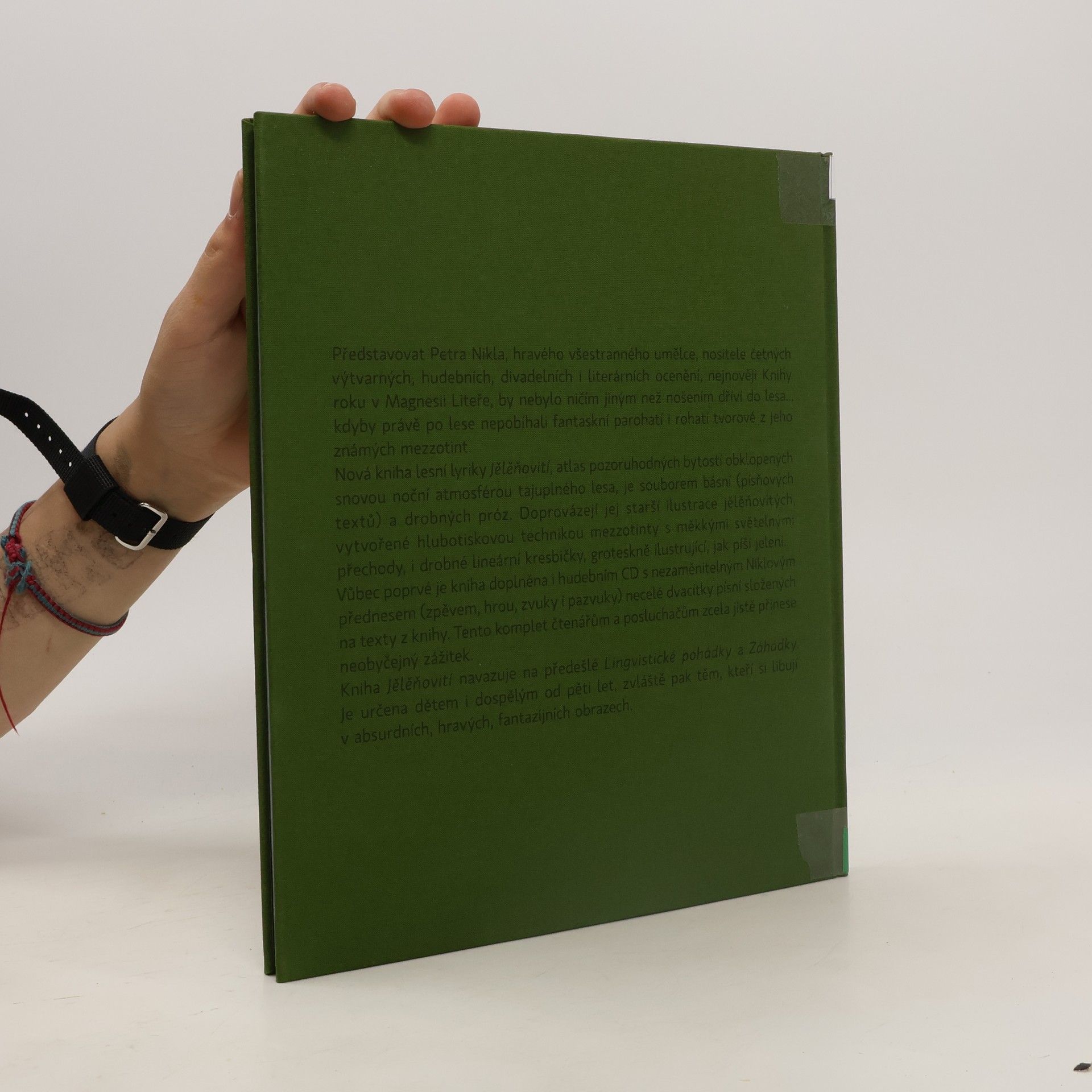 Představovat Petra Nikla, hravého všestranného umělce, nositele četných výtvarných, hudebních, divadelních i literárních ocenění, nejnověji Knihy roku v Magnesii Liteře, by nebylo ničím jiným než nošením dříví do lesa... kdyby právě po lese nepobíhali fantaskní parohatí i rohatí tvorové z jeho známých mezzotint. Nová kniha lesní lyriky Jělěňovití, atlas pozoruhodných bytostí obklopených snovou noční atmosférou tajůplného lesa, je souborem básní (písňových textů) a drobných próz. Doprovázejí jej starší ilustrace jělěňovitých, vytvořené hlubotiskovou technikou mezzotinty s měkkými světelnými přechody, i drobné lineární kresbičky, groteskně ilustrující, jak píší jeleni. Vůbec poprvé je kniha doplněna i hudebním CD s nezaměnitelným autorským přednesem (zpěvem, hrou, zvuky i pazvuky) osmnácti písní Petra Nikla složených na texty z knihy. Tento komplet čtenářům a posluchačům zcela jistě přinese neobyčejný zážitek. Kniha Jělěňovití navazující na předešlé Lingvistické pohádky a Záhádky je určena dětem i dospělým od pěti let, zvláště pak těm, kteří si libují v absurdních, hravých a fantazijních obrazech. --------------------------------------------------------------------------------