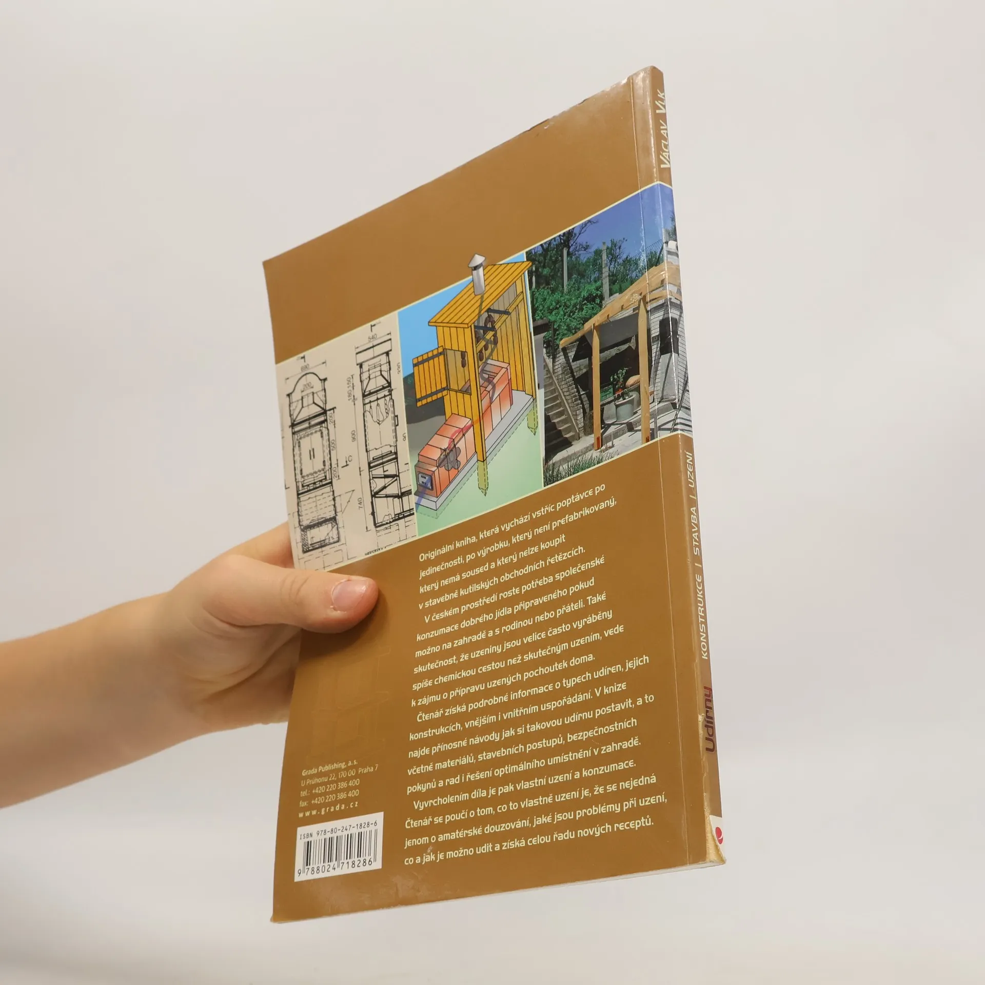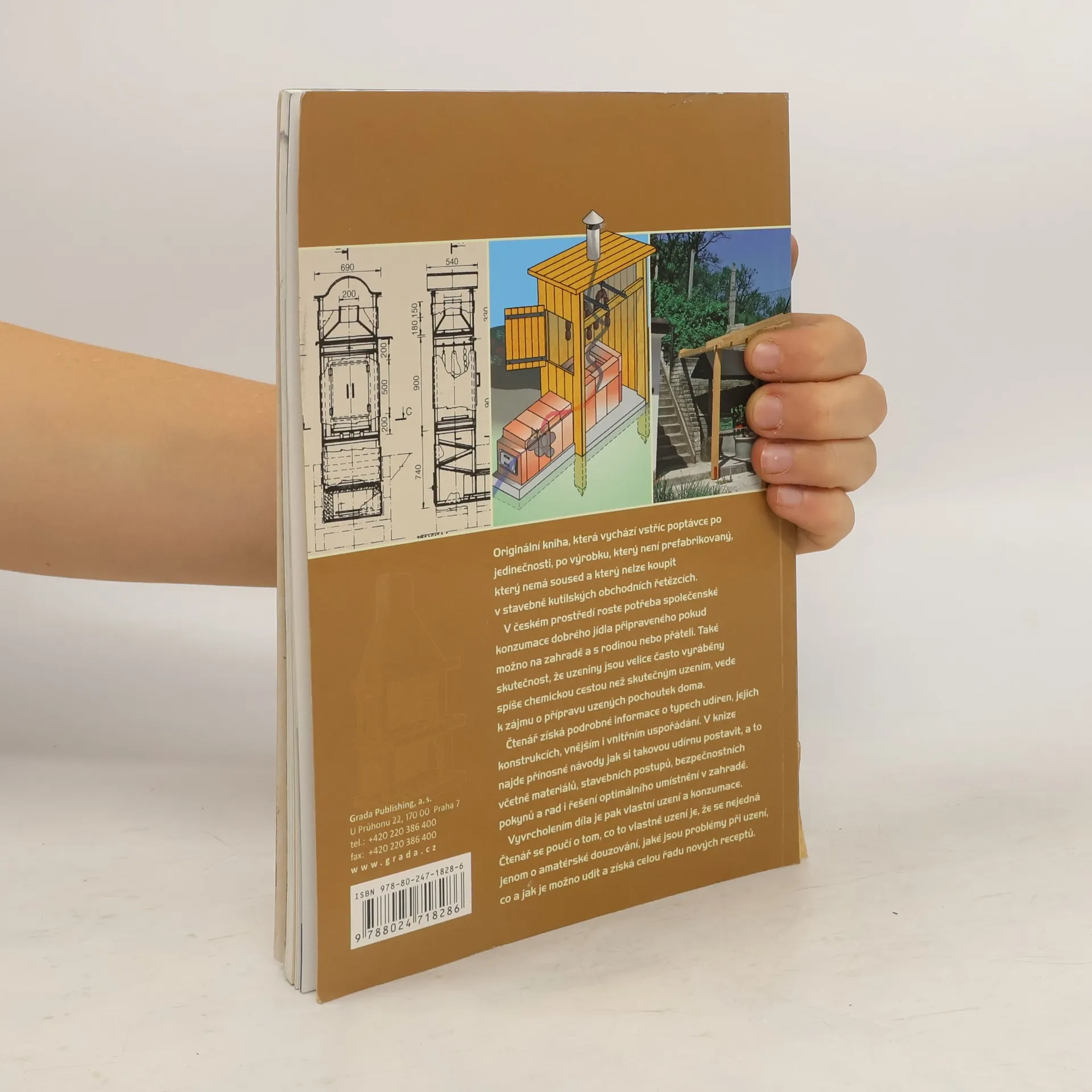 Originální kniha, která vychází vstříc poptávce po jedinečnosti, po výrobku, který není prefabrikovaný, který nemá soused a který nelze koupit v stavebně kutilských obchodních řetězcích. V českém prostředí roste potřeba společenské konzumace dobrého jídla připraveného pokud možno na zahradě a s rodinou nebo přáteli. Také skutečnost, že uzeniny jsou velice často vyráběny spíše chemickou cestou než skutečným uzením, vede k zájmu o přípravu uzených pochoutek doma. Čtenář získá podrobné informace o typech udíren, jejich konstrukcích, vnějším i vnitřním uspořádání. V knize najde přínosné návody jak si takovou udírnu postavit, a to včetně materiálů, stavebních postupů, bezpečnostních pokynů a rad i řešení optimálního umístnění v zahradě. Vyvrcholením díla je pak vlastní uzení a konzumace. Čtenář se poučí o tom, co to vlastně uzení je, že se nejedná jenom o amatérské douzování, jaké jsou problémy při uzení, co a jak je možno udit a získá celou řadu nových receptů.