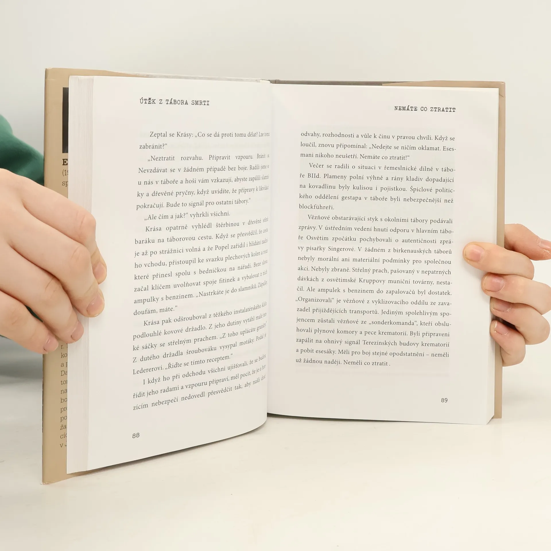 Erich Kulka, spisovatel a historik, který přežil holocaust, v knížce zachytil skutečný příběh židovského vězně Vítězslava Lederera, jemuž se s pomocí důstojníka SS Viktora Pesteka podařilo utéct z koncentračního tábora Osvětim-Birkenau a poslat zpravu o plynových komorách a továrně na smrt západním spojencům. Román je podložen historickou skutečností, autorovou vlastní zkušeností a svědectvím přeživších. Kniha je doplněna bohatou fotografickou přílohou.
