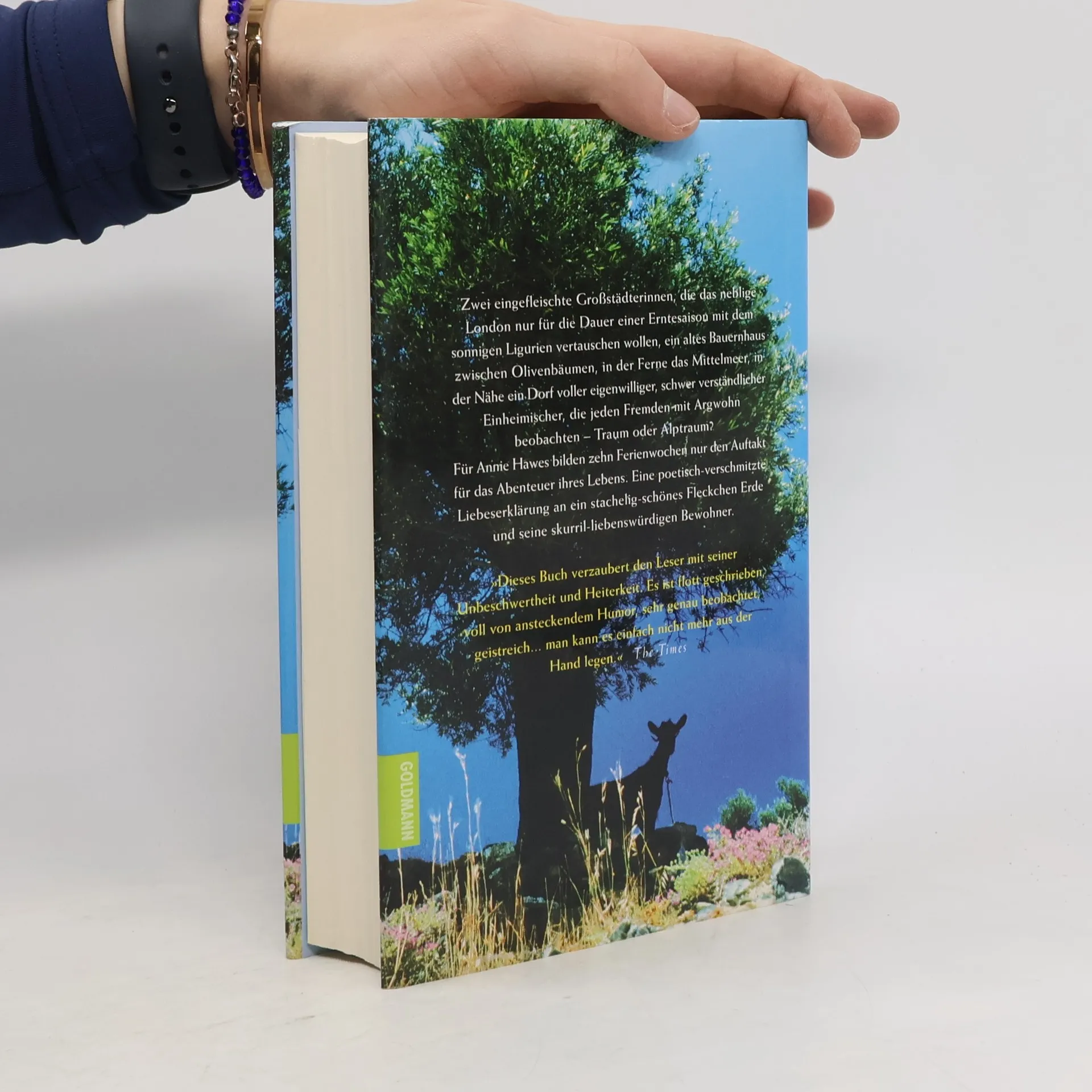 Eigentlich wollten Annie Hawes und ihre Schwester nur für die Dauer der Olivenernte das neblige London mit dem sonnigen Ligurien vertauschen. Als sie jedoch auf ein altes Bauernhaus inmitten eines romantischen Fleckchens Erde stoßen, ist es Liebe auf den ersten Blick. Und aus den geplanten zehn Ferienwochen wird das Abenteuer ihres Lebens.