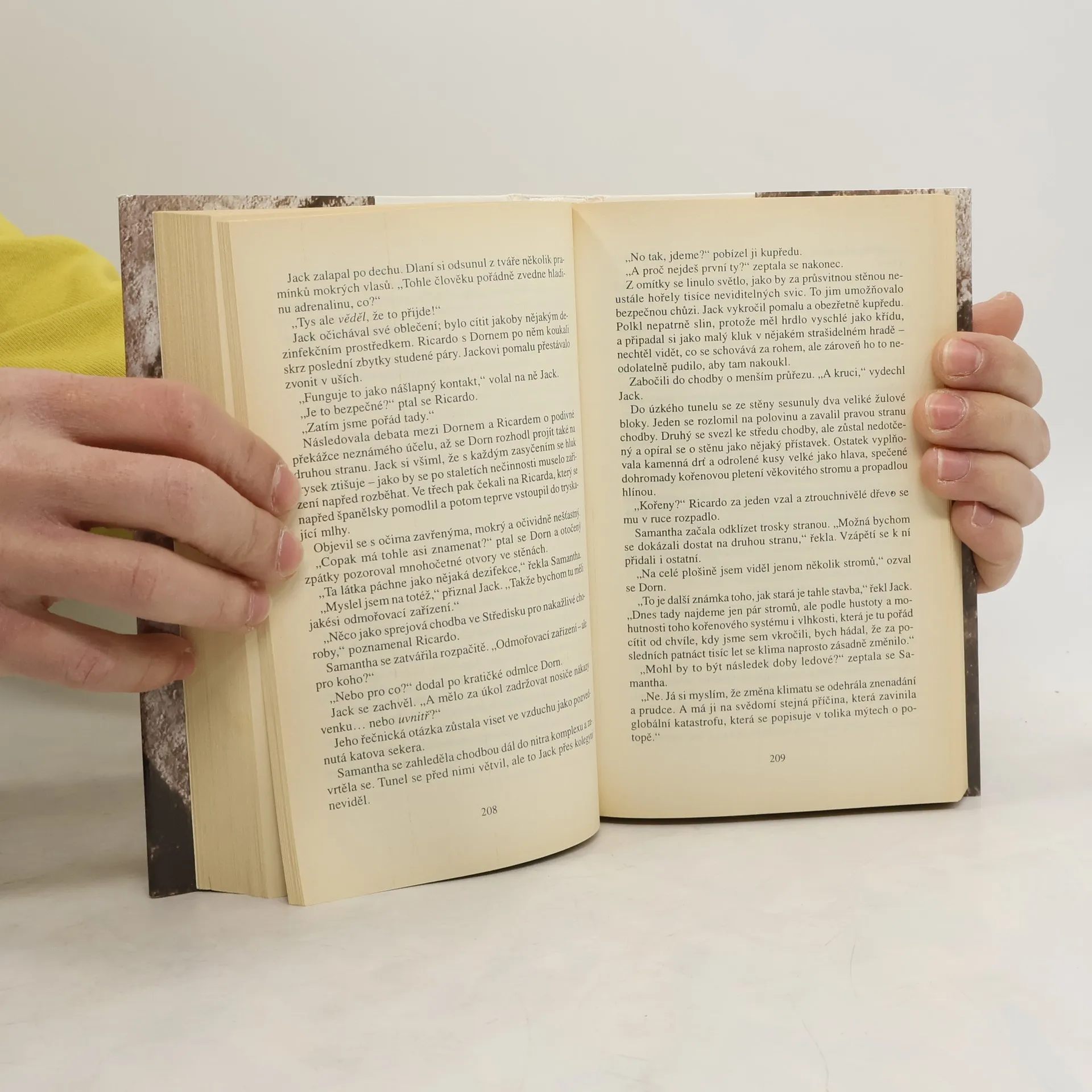 Nevelkou jeskyní skrytou pod povrchem středoafrické planiny pomaličku postupuje kupředu mladá žena a kužel její baterky proniká tmou, kterou po nesčetná staletí neporušil jediný paprsek světla. Je tu nedostatek vzduchu, prostor vyvolává zvláštní pocity a působí klaustrofobii - a přesto paleoantropoložka Samantha Colbyová nebyla nikde raději než právě tady. Cítí, že se ocitla na dosah vědecké nesmrtelnosti a když světlo baterky odhalí bílou kostru, opřenou o stěnu jeskyně ví, že by tohle mohlo být ono: chybějící článek, dlouho hledané řešení tajemství zrodu lidstva. Prastaré kosti však vyvolávají více otázek než na kolik dávají odpověď.