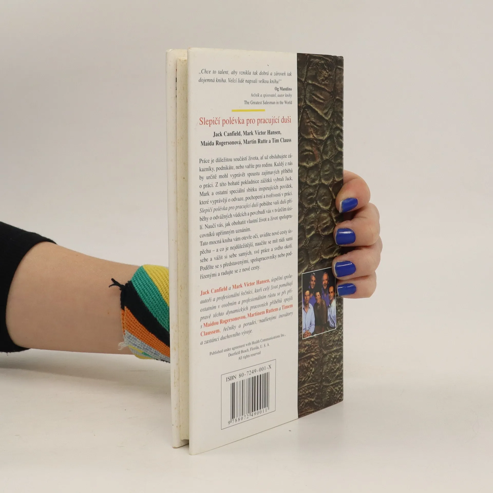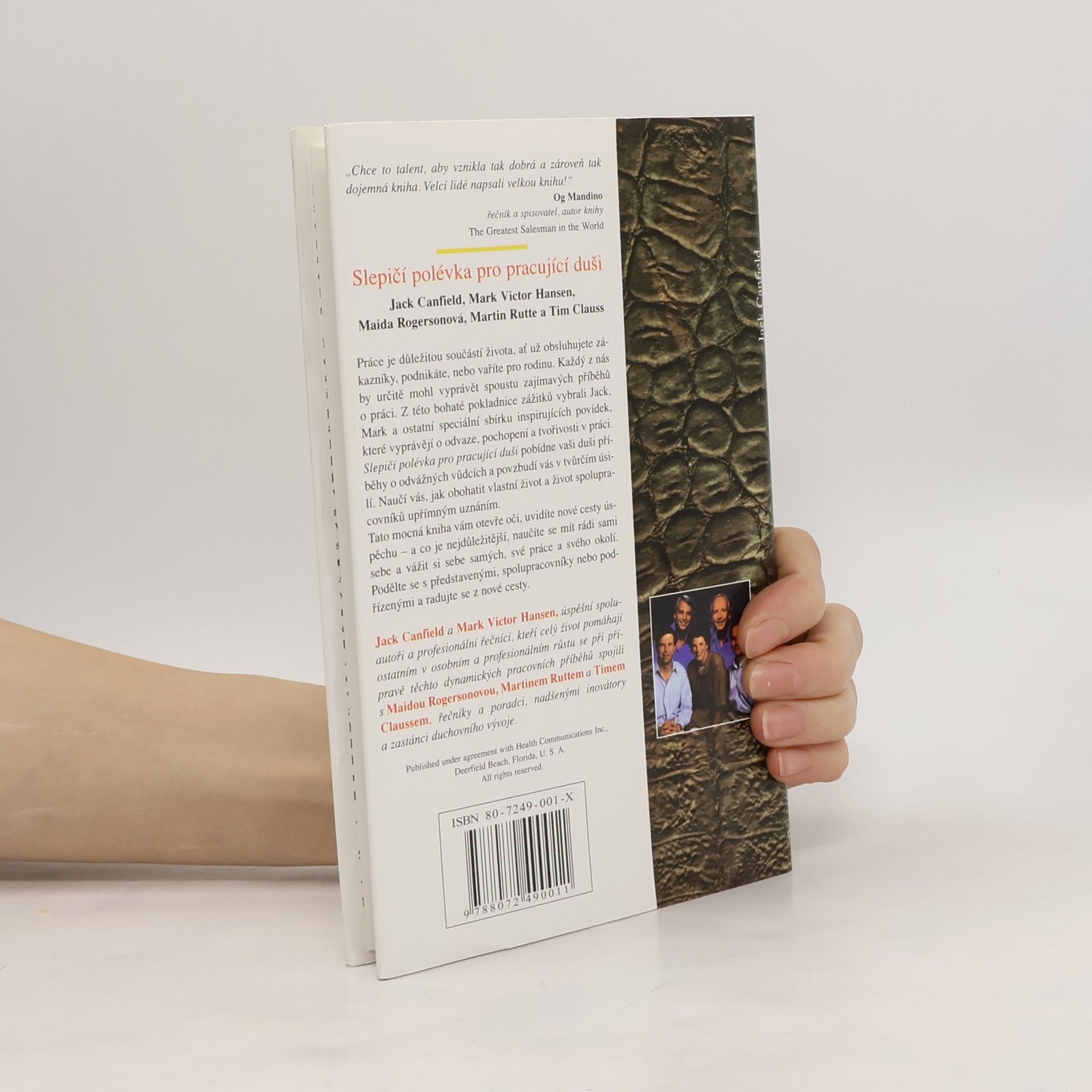 Práce je klíčovou součástí našeho života, ať už se jedná o zákaznický servis, podnikání nebo vaření pro rodinu. Každý z nás má zajímavé příběhy o práci. Jack, Mark a ostatní vybrali sbírku inspirujících povídek, které oslavují odvahu, pochopení a tvořivost v pracovním prostředí. Tato kniha povzbudí vaši duši příběhy o odvážných vůdcích a podpoří vás v tvůrčím úsilí. Naučíte se, jak obohatit svůj život a život svých kolegů upřímným uznáním. Otevře vám oči a ukáže nové cesty k úspěchu, přičemž se naučíte mít rádi sami sebe a vážit si své práce a okolí. Sdílejte příběhy s kolegy a užijte si novou cestu. Obsah zahrnuje témata jako láska k práci, porozumění, síla vděčnosti, služby, naslouchání srdci, tvůrčí práce, překonávání překážek, odvaha a cenné lekce. Každá kapitola nabízí příběhy, které inspirují a motivují, ať už se jedná o osobní růst, vztahy na pracovišti nebo překonávání výzev. Tato sbírka vás vybaví nástroji, jak se stát lepším pracovníkem a člověkem, a podnítí vás k tomu, abyste se podělili o své vlastní příběhy a zkušenosti.