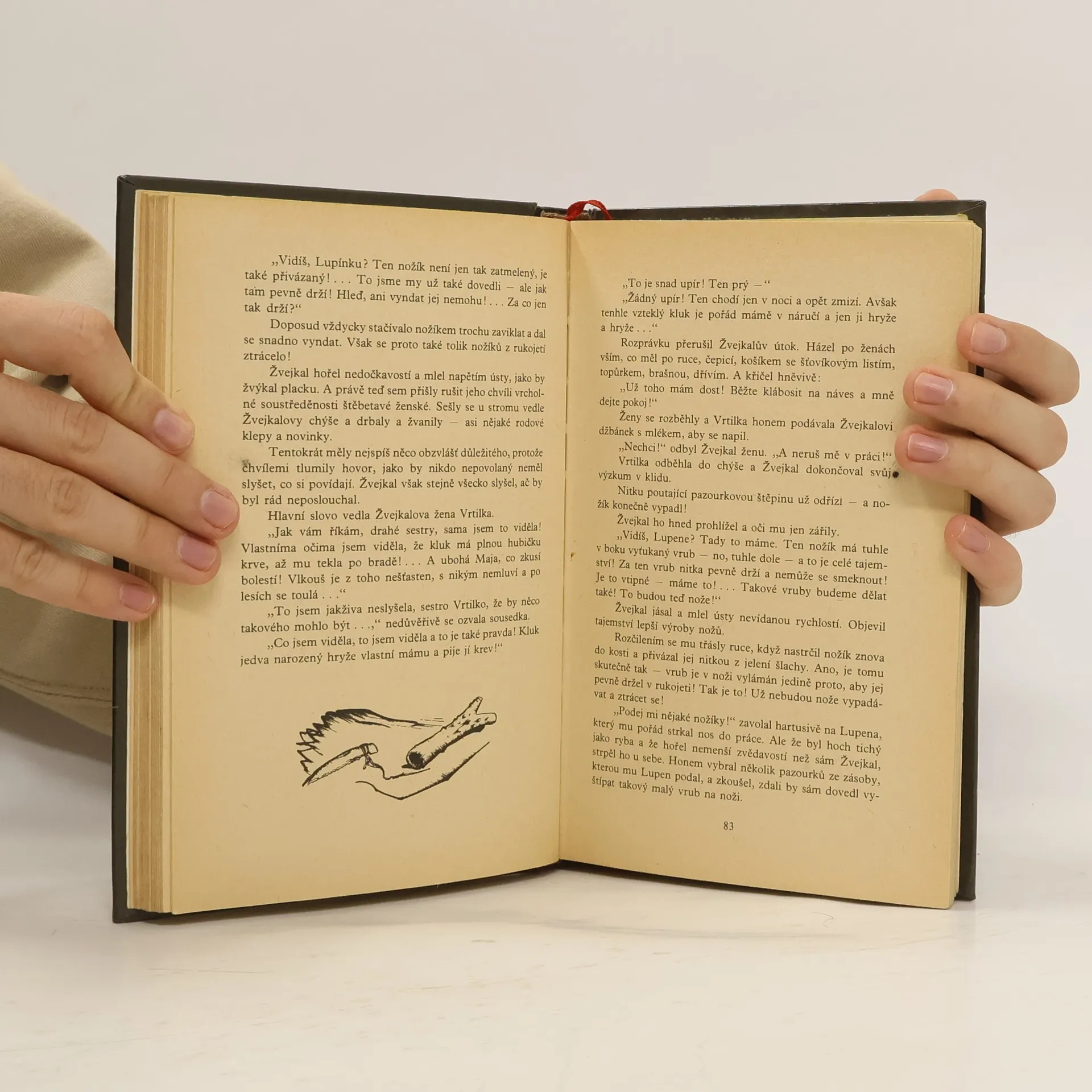 „Můj otec mě zaslíbil tomu, kdo zabije zlého medvěda, a ty, Bobře, nezapomeň, že já dobře vím, kdože medvědu zasadil smrtelnou ránu. Tys to nebyl – tys jen medvěda dorazil, když těžce raněný spadl ze skály, nemluv tedy o hrdinském skutku. Čí to byl oštěp, který trčel hluboko zabodnutý v medvědově pleci? Tvůj oštěp, Bobře, to nebyl! Ten medvěd nebyl tvůj, ani já tedy nebudu tvá!“