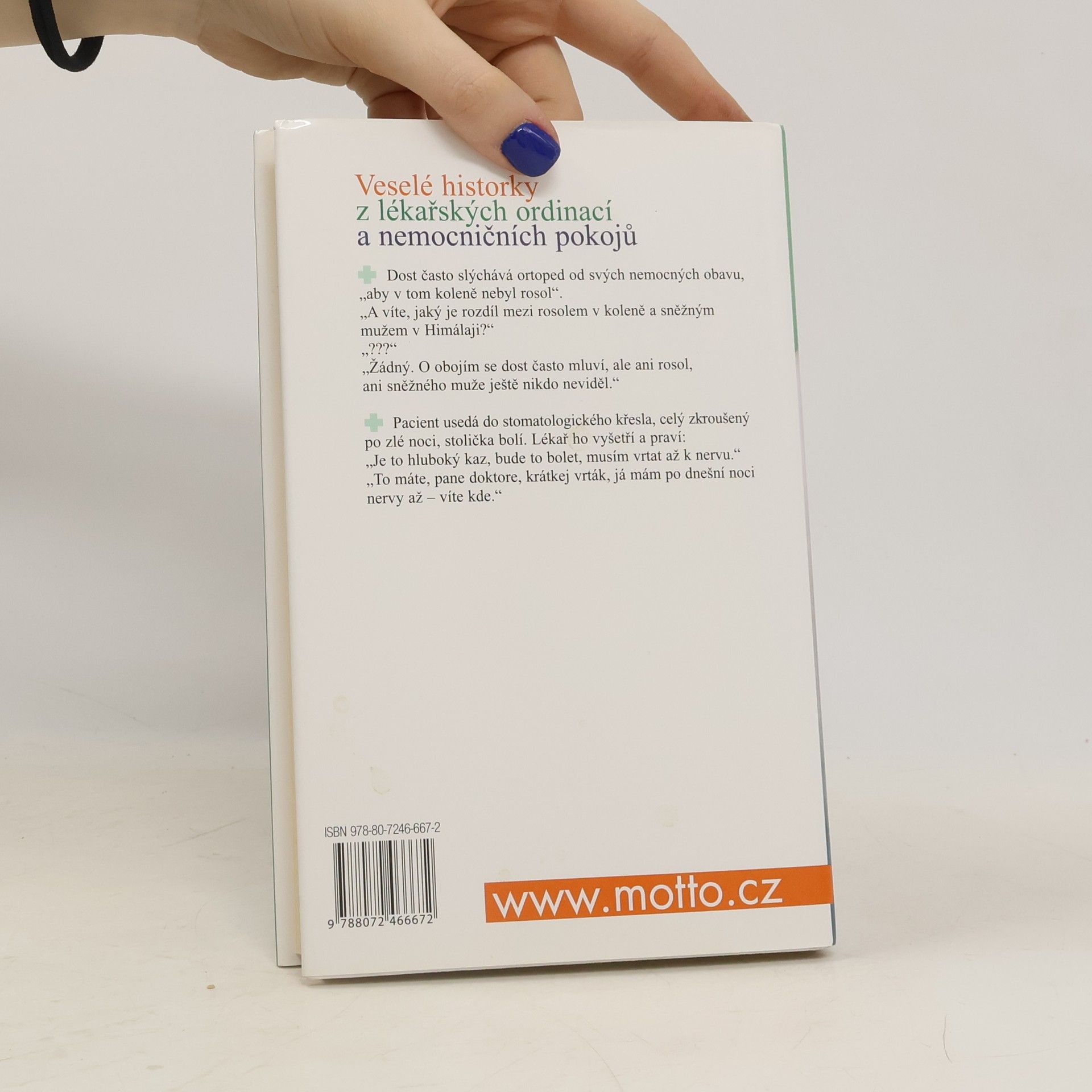 Zdravotnické prostředí nebývá podle obecné představy zrovna místem radosti nebo veselé pohody. Kdo sem musí, vstupuje s tísní, s obavou. Leč i odtud zazáří občas paprsek úsměvu. Humor zrozený v těchto místech, nejednou drsný, je zdrojem uvolnění pro své autory i pro jejich okolí. Je projevem lidství, bez něhož si medicínu nelze představit.