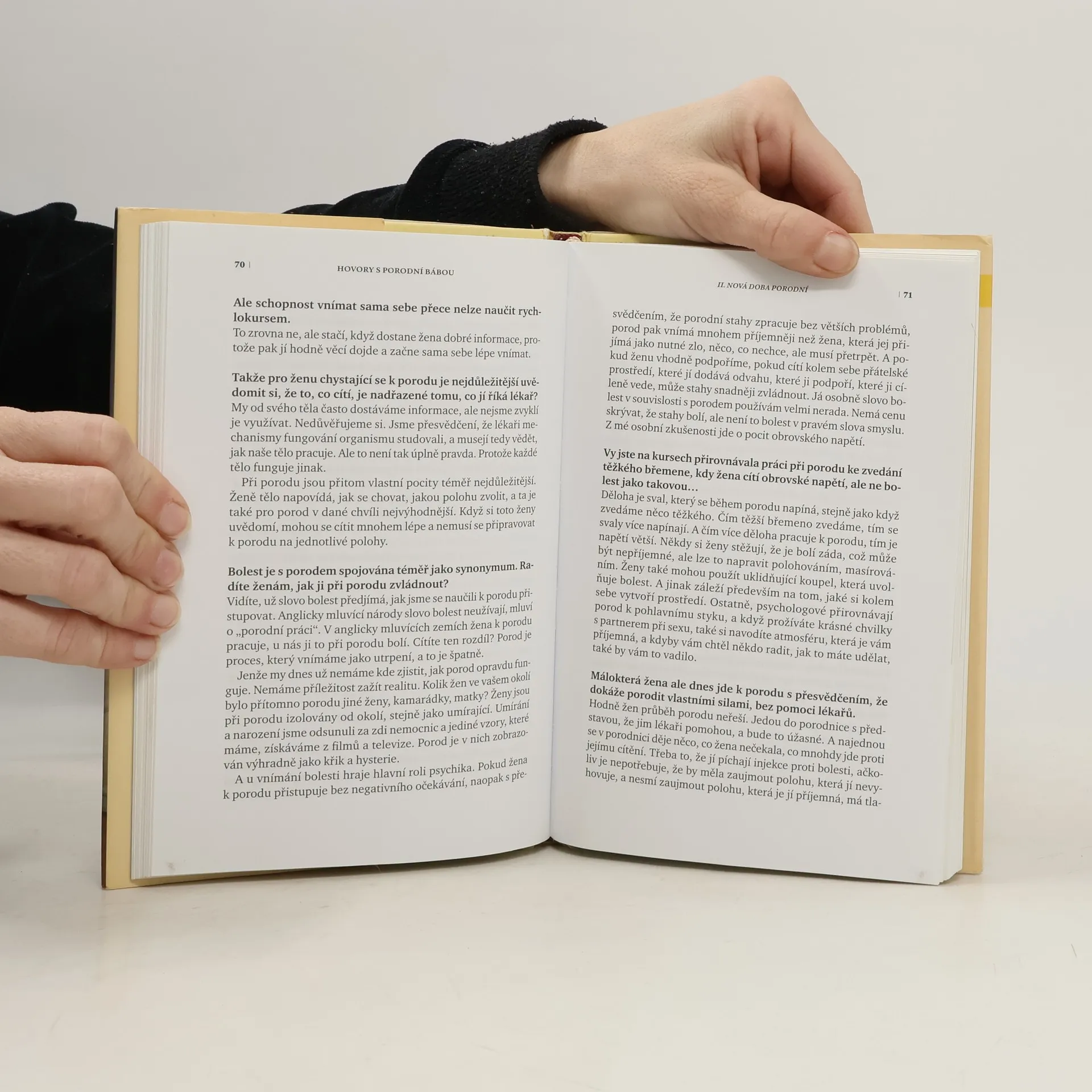 Kniha nabízí pohled na těhotenství a porod prostřednictvím rozhovoru se známou porodní asistentkou Ivanou Konigsmarkovou, která třicet let pomáhá přivést děti na svět. Témata jsou řazena chronologicky od otěhotnění přes těhotenství k porodu a šestinedělí. Porodní asistentka hodnotí kontroverzní problémy dnešních těhotných - genetické testování, přístup medicínský kontra přírodní, epidurální anestezii, rozmáhající se počet porodů císařským řezem… Zamýšlí se nad úlohou porodních bab v životě ženy, mluví o zkušenostech z porodnictví v zahraničí, o pokusech prosadit u nás individuální péči o těhotné…