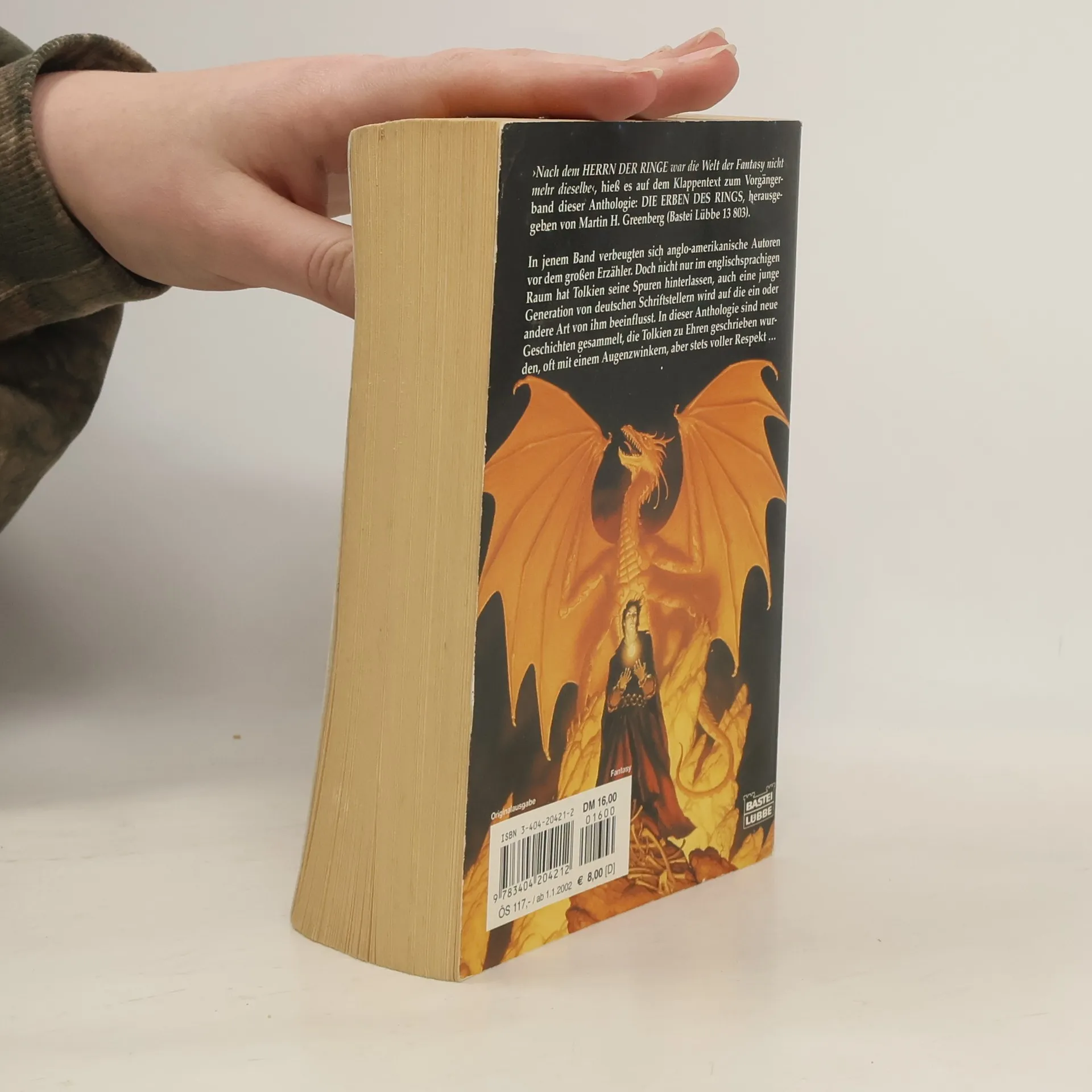 Auf die ein oder andere Weise kommt niemand, der sich mit dem Genre beschäftigt, an dem Namen Tolkien vorbei. Er hat ein Standardwerk geschaffen, das nach wie vor Maßstäbe setzt. Als Fantasy-Autor schreibt man entweder \"wie Tolkien\" oder \"anders als Tolkien\" - was an sich noch keine Wertung beinhaltet, aber zeigt, dass man dem Vergleich an sich einfach nicht entkommen kann. Und ist es verwunderlich? Findet man in Tolkiens Werk doch beinahe alles, was das Bild der Fantasy in diesem Jahrhundert geprägt hat: von Zauberern, Elfen, Zwergen und Drachen über keltische Mythen und Legenden bis hin zu epischen Schlachtengemälden und anderen genretypischen Motiven und Themen wie zum Beispiel die Queste, die Frage nach der Natur von Gut und Böse, nach Freundschaft und Edelmut. Inhalt: Stefan Bauer - Vorwort Kerstin Gier - Jeremy Ohneland und der Drache Alexander A. Huiskes - Trommeln in der Tiefe Dietmar Schmidt - Der Seelenstein Rainer Schumacher - Es gibt keine Abenteuer Helmut W. Pesch - Das Lied der Welle Ruggero Leò - Der Sohn des Kesselflickers Frank Rehfeld - Die Insel der Elben Winfried Czech - Das vierte Ei des Drachen April Dillinger - Finrael der Dunkle Horst von Allwörden - Ein reines Herz Ralph Sander - Mohaara Wolfgang Hohlbein - Die Jäger Timothy Stahl - Im Geiste des Meisters, oder Die Wunderschmiede Helmut W. Pesch - Tolkien 2001: Eine Bestandsaufnahme