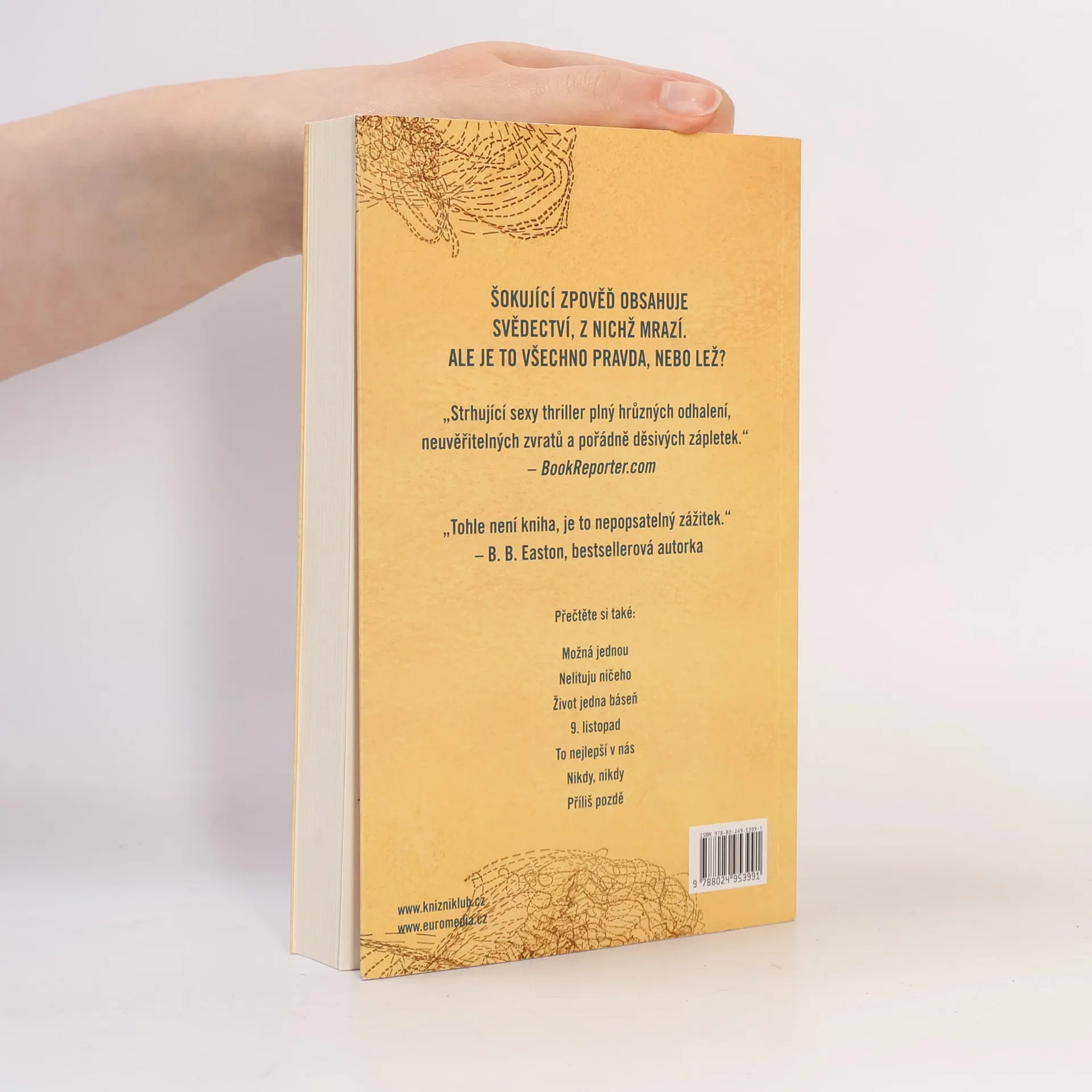 Nové vydání úspěšného bestselleru rozšířené o bonusový epilog! Mladá spisovatelka Lowen Ashleighová se ocitla ve finanční tísni. Rozhodne se proto přijmout nabídku, které by se jinak raději vyhnula. Najme si ji manžel bestsellerové spisovatelky Verity Crawfordové, aby za jeho ženu dokončila veleúspěšnou knižní sérii. Verity se po tragické nehodě nemůže věnovat psaní a fanoušci už začínají být netrpěliví. Lowen se na pár dní nastěhuje do domu Crawfordových, aby mohla navázat tam, kde spisovatelka skončila. Není to však tak jednoduché, jak si představovala. Práci jí neusnadňuje ani pohledný manžel slavné autorky. Lowen se také nedovede zbavit pocitu, že s rodinou Crawfordových není všechno v pořádku. Jako by je pronásledovalo jedno neštěstí za druhým...