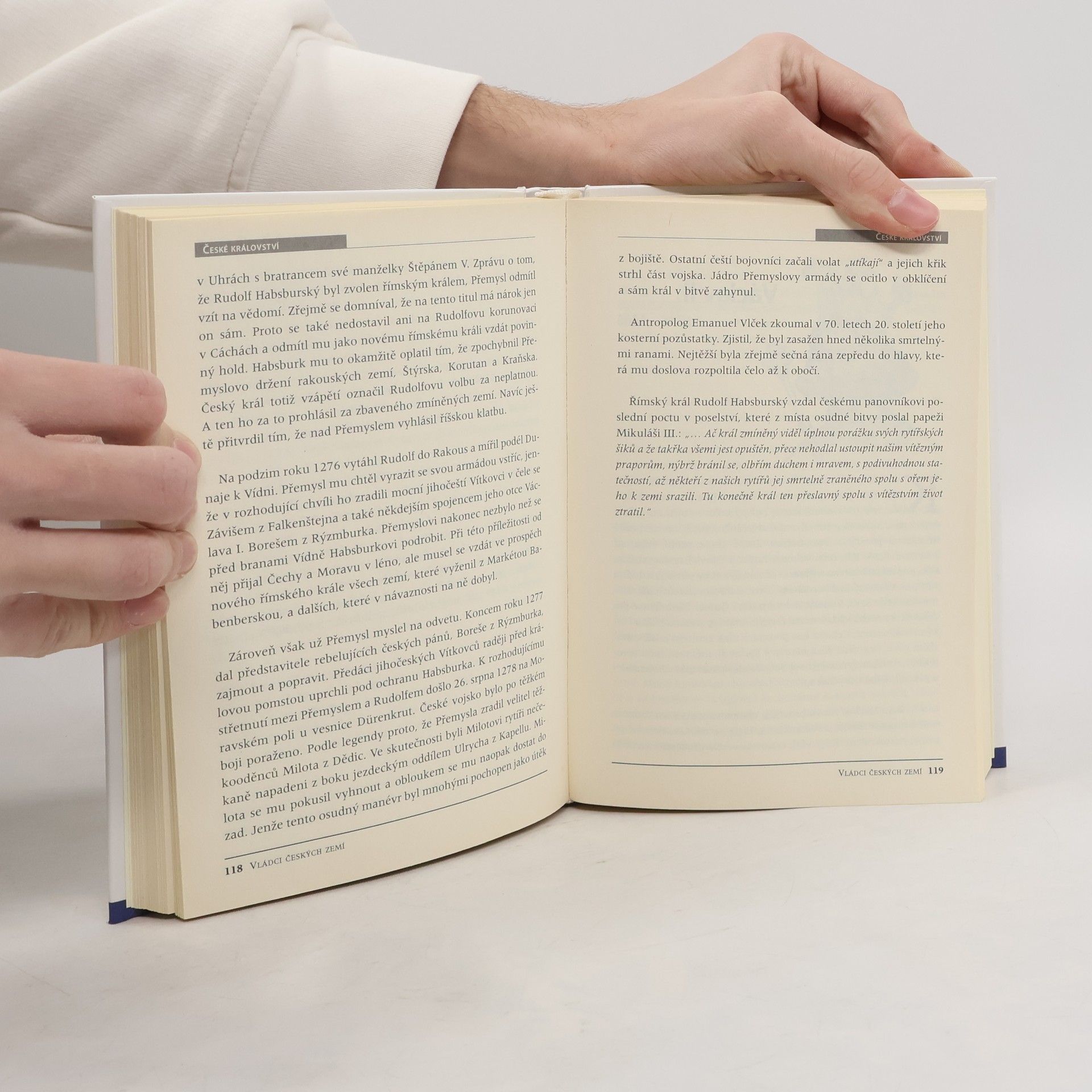 S podtitulem: Historie panovnického trůnu Čech a Moravy. Poutavý životopisný přehled všech panovníků českých zemí od velkomoravských knížat až po posledního vládnoucího Habsburka, císaře Karla I. Každého z vládců nepředstavuje jen jako státníka, politika, případně válečníka, ale všímá si i jeho lidských stránek. Zaznamenává, jak knížata a krále hodnotili jejich současníci, co o nich napsali kronikáři, co oni sami o sobě řekli a jakými zásadami se v životě řídili. Nevyhýbá se ani tajemstvím, která jsou až doposud s leckterým z nich spojena.