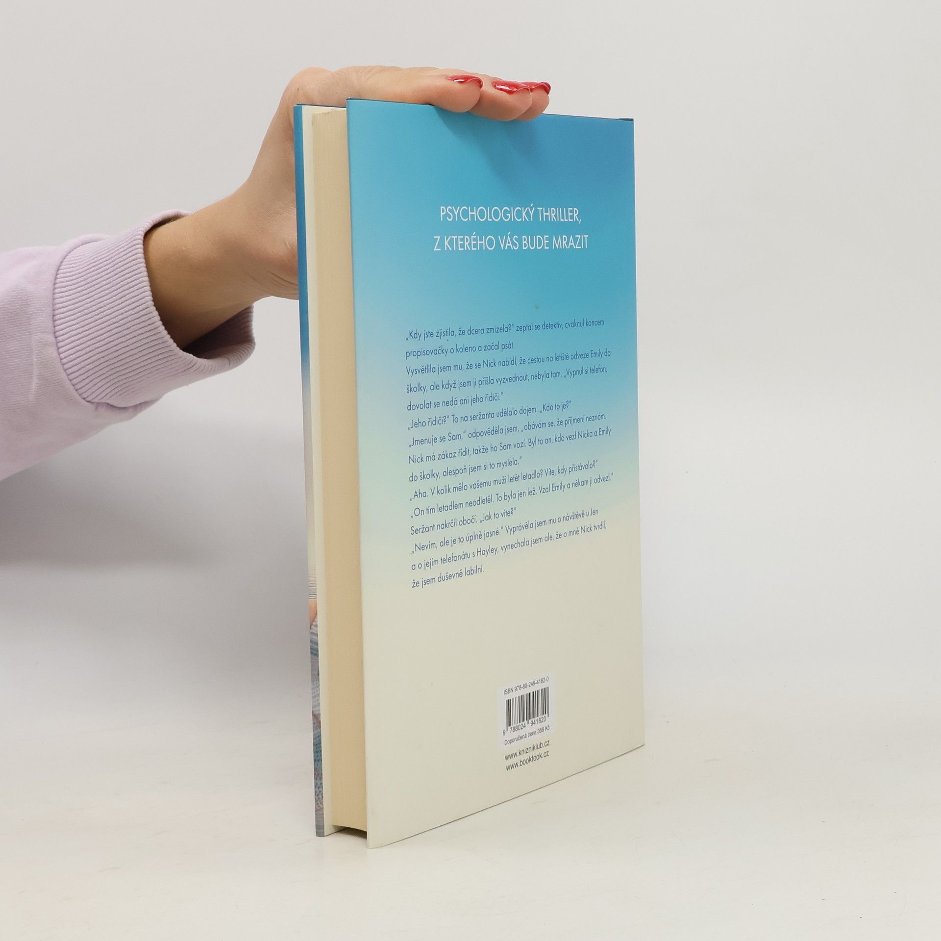 Čerstvě vdaná Nataša má perfektní dům, milujícího manžela a krásnou malou holčičku jménem Emily. Kdyby nebylo Jen, bývalé ženy jejího muže, která je nechce nechat na pokoji, její život by byl dokonalý. Když se jednoho dne Nataša vrátí domů, zjistí, že její manžel a Emily beze stopy zmizeli. Zoufale chce svoji dceru zpět a je ochotná pro to udělat cokoli, i kdyby to znamenalo přijmout pomoc právě od Jen. Může jí ale důvěřovat? A ví o svém manželovi skutečně všechno? Pro čtenáře Dívky ve vlaku a Zmizelé.