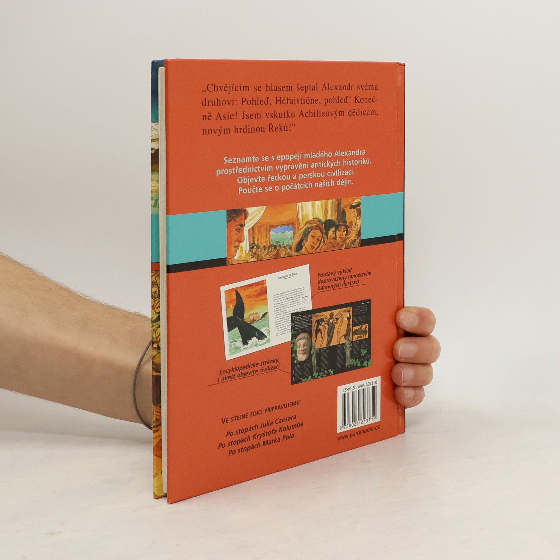 Příběh o Alexandrovi Velikém a jeho dobyvatelských taženích je proložen základními údaji o příslušném historickém období. Pro starší děti. Alexandr Veliký se při svých dobyvatelských cestách dostal až na území Malé Asie. Příběh, který autorka napsala na základě podkladů řeckého dějepisce Arriána, je doplněn encyklopedickými údaji v podobě vložených dvojstran. Z nich se dozvíme fakta například o perské říší, armádě ve starověku atd. Slova vyznačená v příběhu tučně jsou vysvětlena na okrajích textu.... celý text