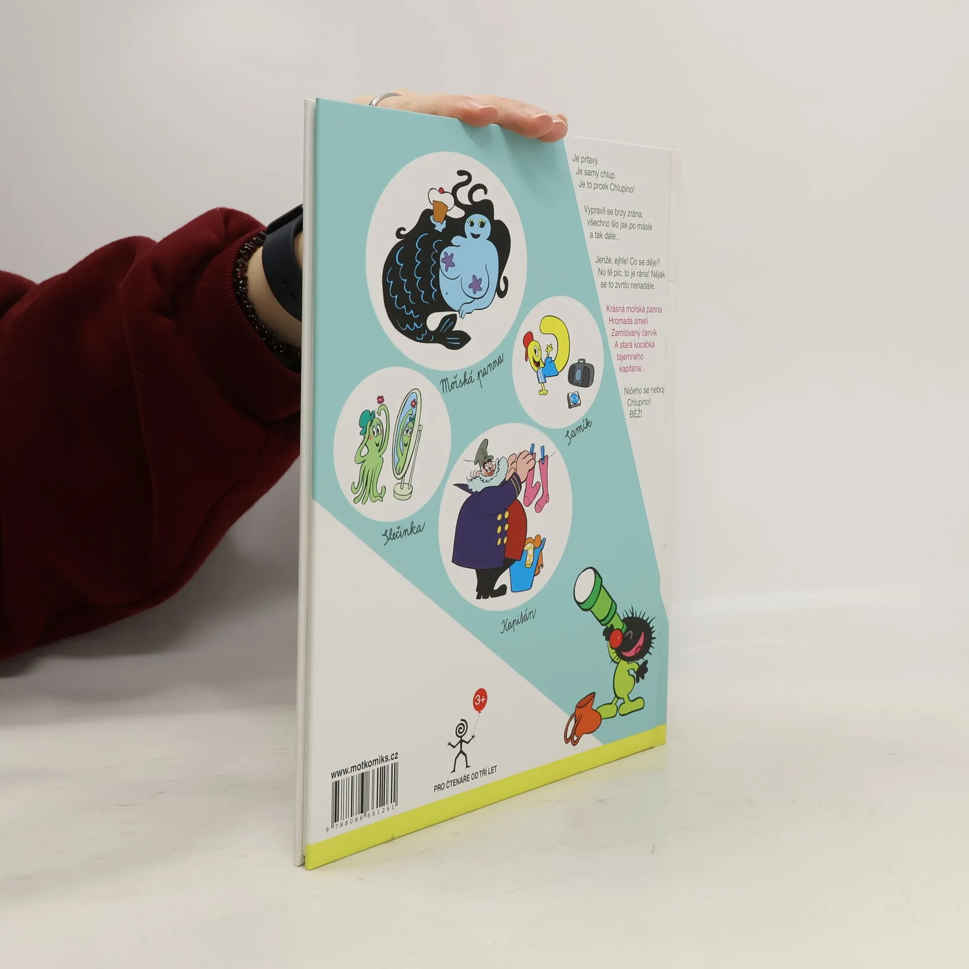Je prťavý, Je samý chlup. Je to prcek Chlupino! Vypravil se brzy zrána, všechno šlo jak po másle a tak dále... Jenže, ejhle! Co se děje? No tě pic, to je rána! Nějak se to zvrtlo nenadále. Krásná mořská panna, hromada smetí, zamilovaný červík a stará kocábka tajemného kapitána... Ničeho se neboj, Chlupino! Běž! Komiks beze slov vyzývá dětí od 3 let k dobrodružství veselého chlupáčka. Probouzí v dětech zvědavost, vybízí je vyjmenovat předměty a popsat ilustrace. Prcek Chlupino se čte s rodiči, a pak sám stokrát dokola se stálým nadšením. Mot plánuje vydat další dobrodružství Prcka Chlupina.