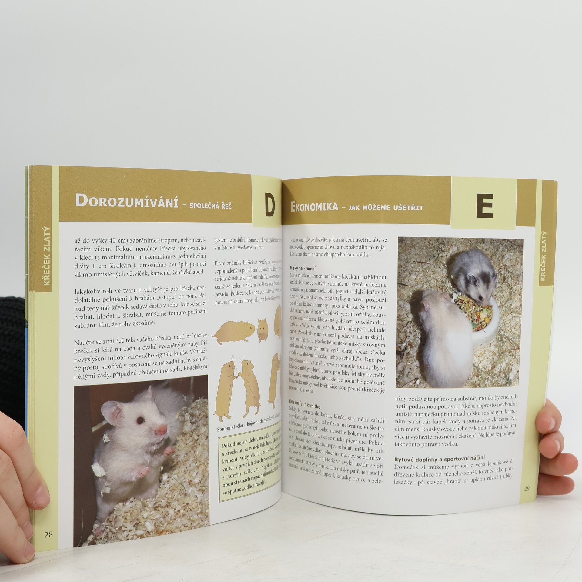 Křeček zlatý je často chované a snadno dostupné zvíře. Právě proto je zde tato knížka, která Vás podrobně s tímto druhem seznámí. Autorka Nataša Velenská je zkušená chovatelka z pražské zoologické zahrady. Kniha je určená jak pro začínající, tak i zkušené chovatele. V kapitolách, které jsou řazeny podle abecedních hesel, je popsána základní péče, rozmnožování, chov mláďat, zdraví, vztah k člověku a různé zajímavosti. Vše je doplněné množstvím barevných fotografií a obrázků. Zkrátka zde naleznete vše potřebné pro úspěšný chov a odchov těcho velmi oblíbených zvířat.