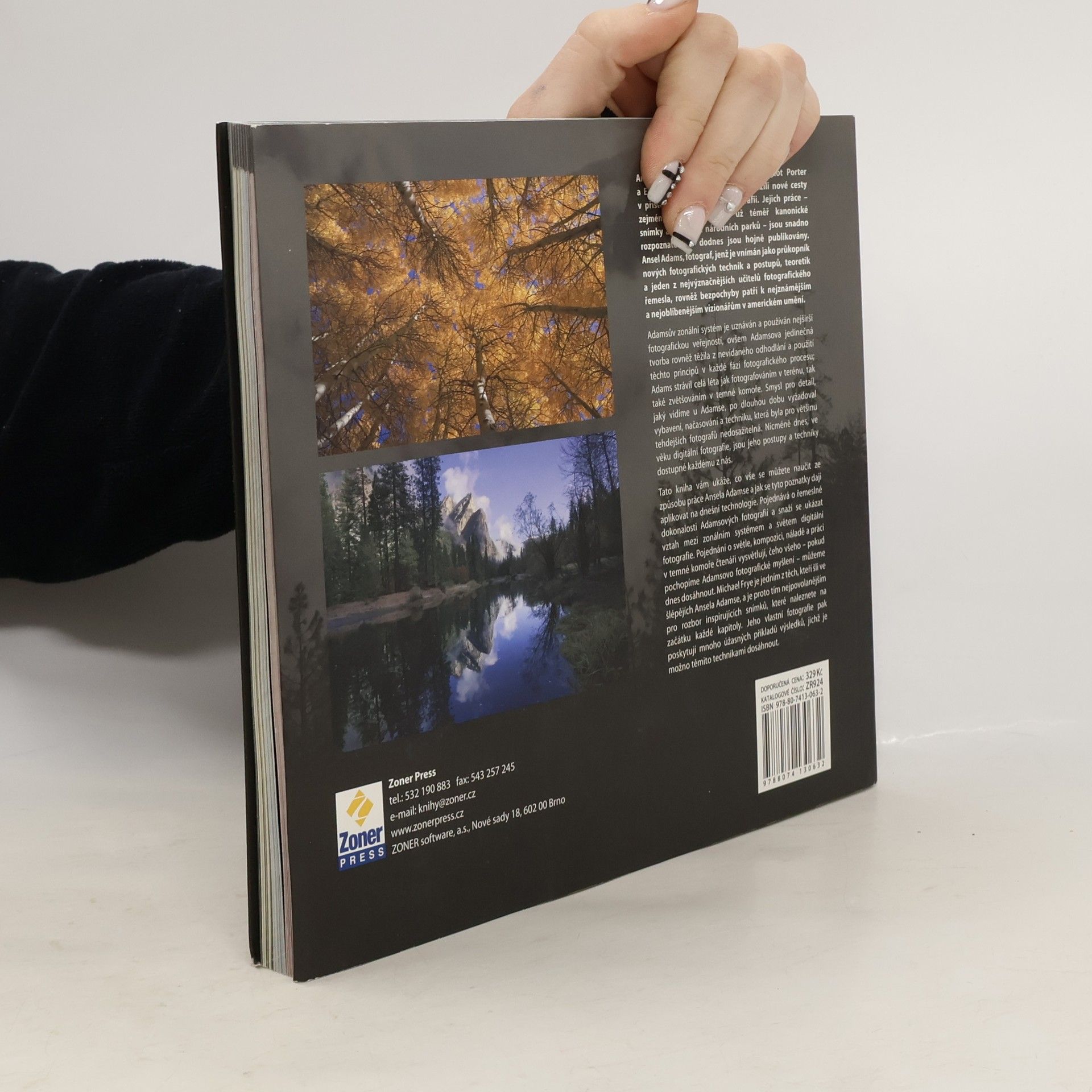 Ansel Adams je ikonou krajinářské fotografie. Je veličinou nejen pro skvělé snímky americké přírody, ale také pro svůj doslova průkopnický přístup k fotografii. Adams je spolutvůrcem tzv. zonálního systému, který se stal, zejména v době rozmachu černobílé fotografie, významným pomocníkem při volbě expozice. Ansel Adams je také známý precizními zvětšeninami a dokonale propracovaným systémem „postprodukce“ v černé komoře. Publikace Michaela Freye vychází z díla tohoto Mistra krajináře a vedle zajímavých komentářů k několika fotografiím Ansela Adamse (a také Edwarda Westona a Eliota Portera) ukazuje, jak se lze z díla těchto velikánů světové fotografie poučit, co lze i v dnešní době digitálních přístrojů aplikovat a případně jak do digitálního kabátu převléci některé z klasických teorií. Kniha (mimo tradičně skvělé a inspirativní fotografie, jak je u vydavatelství ILEX běžné) přináší řadu praktických doporučení, tipů a postupů od technických základů (jako jsou problémy šumu, využití možností RAWu a srovnání s formátem JPEG, aplikace filtrů, vyvážení bílé, hloubka ostrosti, expozice…) přes vlastní fotografování a otázky kompozice v krajinářské fotografii až po zpracování snímků a jejich tisk.