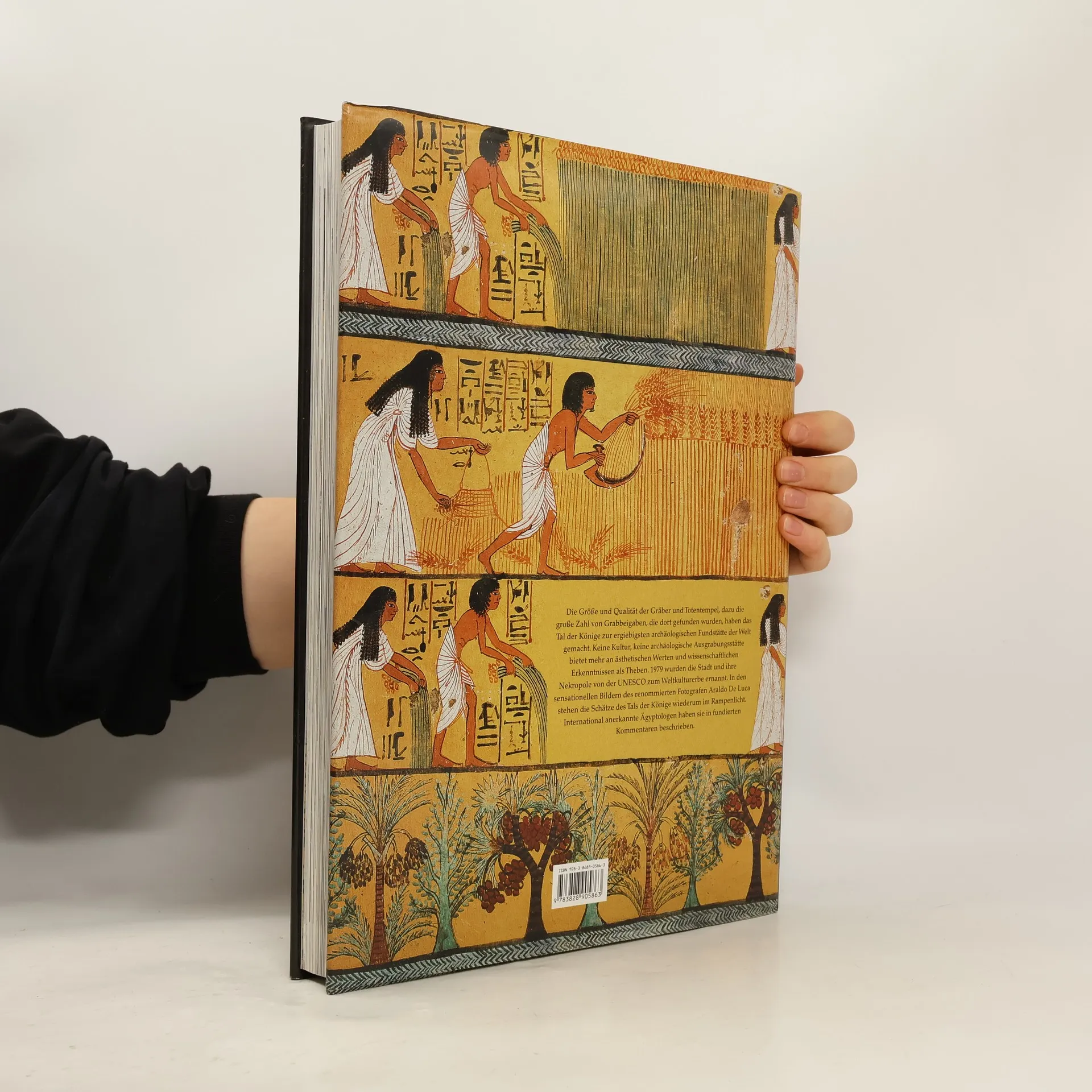 In grandioser Naturszenerie, den Bergen Thebens und der sie rings umgebenden Wüste, wurden einst heilige Stätten und Grabbauten von unvergleichlicher Schönheit errichtet, die schon in der Antike Besucher anlockten. Diese Tempelanlagen sollten das Andenken an Könige und Königinnen verewigen, etwa an Ramses, Amenhotep oder die faszinierende Hatshepsut. Archäologische Ausgrabungen haben auch die Wunderwerke innerhalb der Grabkammern - und der Nekropolen von ranghohen Persönlichkeiten am Hofe der Pharaonen - wieder zugänglich gemacht. Die Entzifferung der Hieroglyphen und Symbole auf den Wandgemälden vertieften das Verständnis der altägyptischen Geschichte, die durch Araldo de Lucas atemberaubende Fotografien und die Begleittexte führender Ägyptologen schillernd lebendig wird.