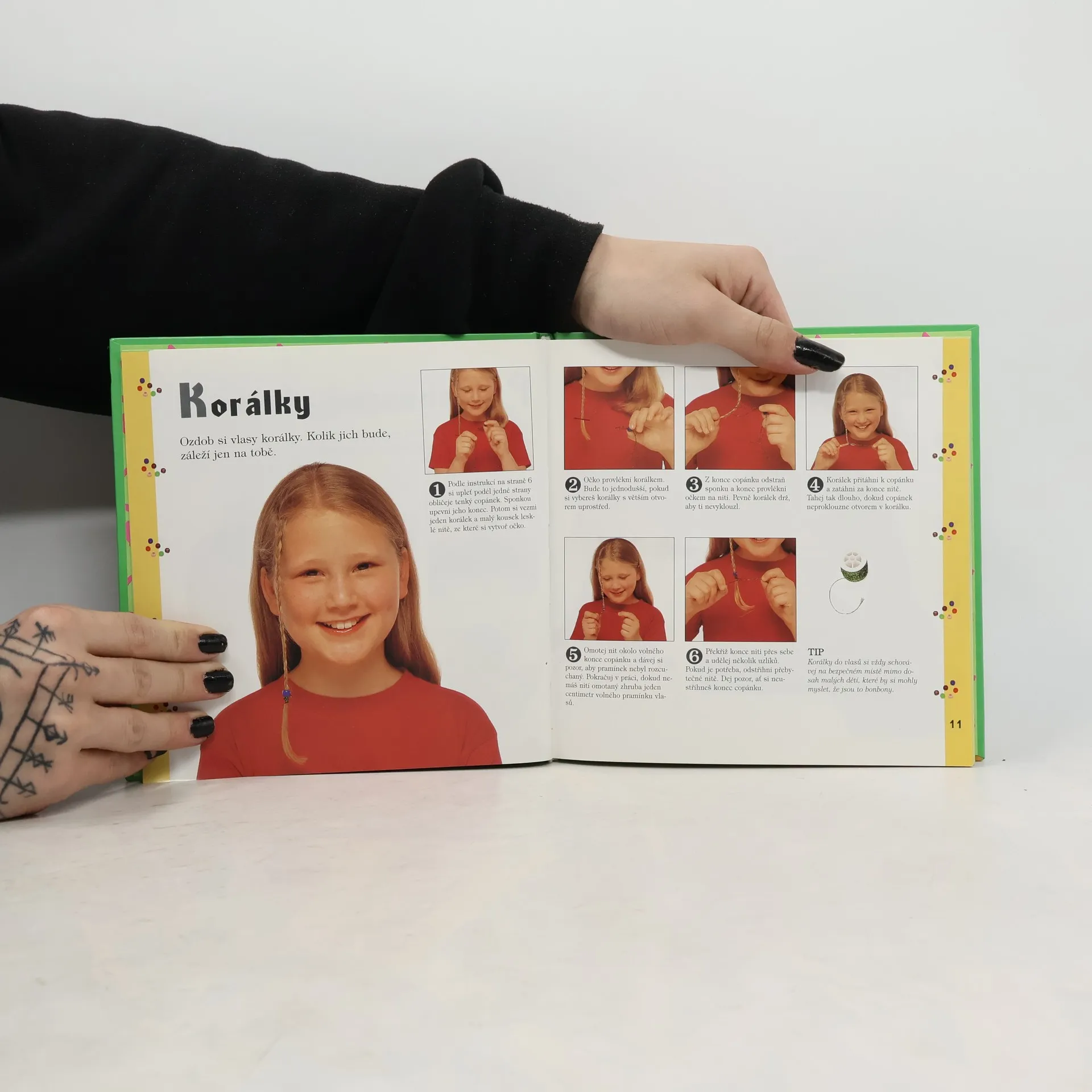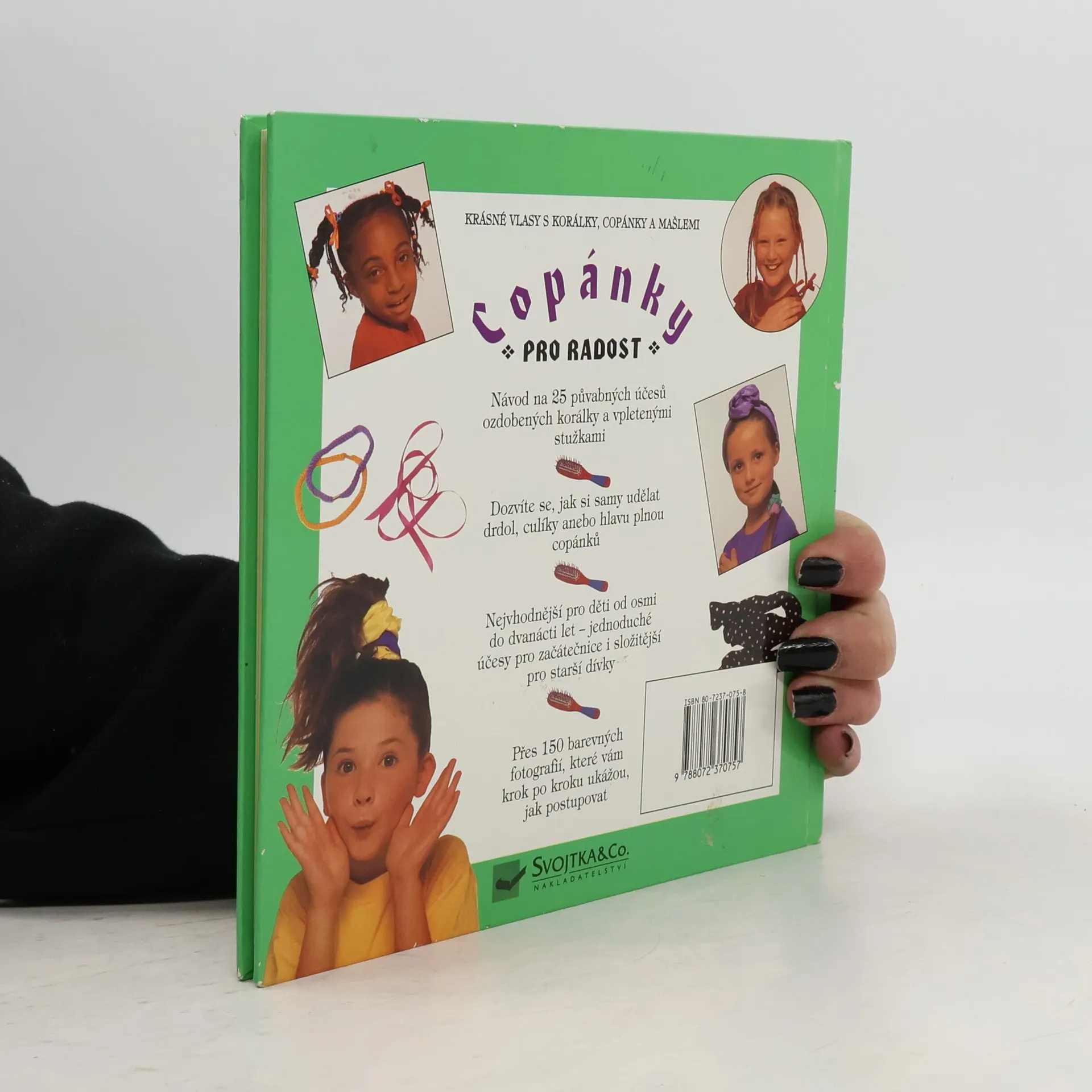 Kniha účesů pro dívky. Obsahuje návody, jak učesat jednoduché culíky a copánky i složitější účesy.