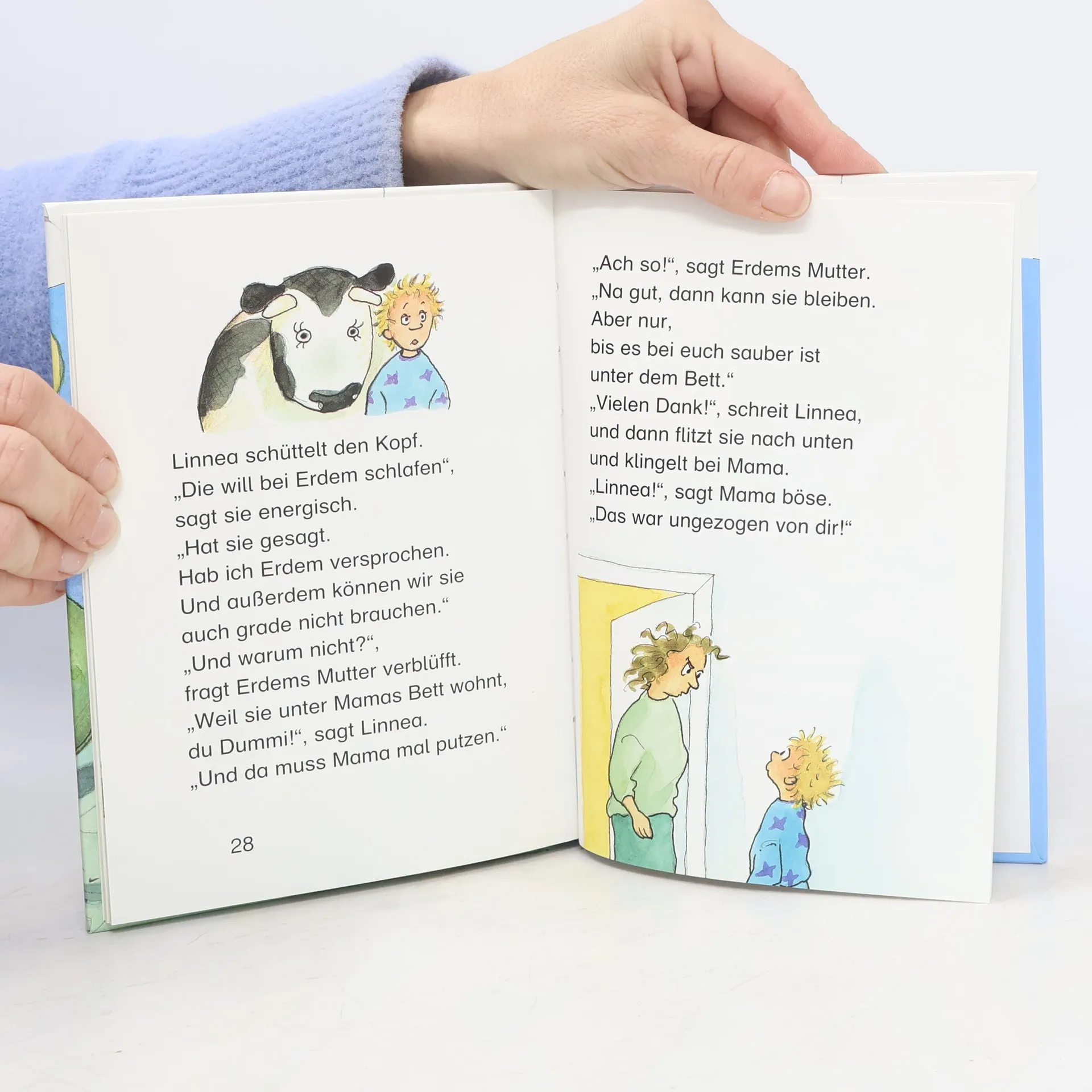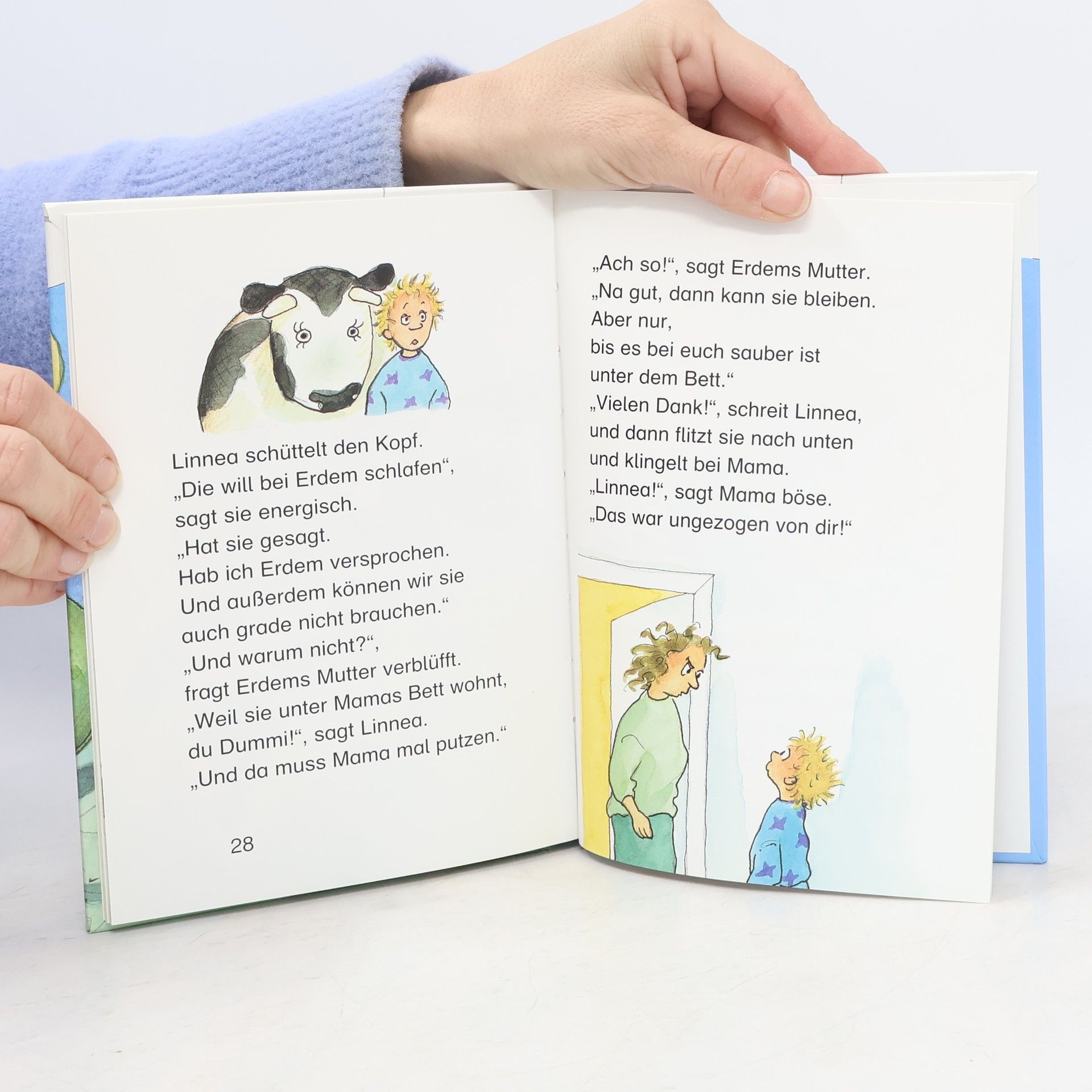 Auf dem Sperrmüll kann man richtig gute Sachen finden. Zum Beispiel einen riesengroßen schwarzen Kochtopf für Mama. Aber eigentlich hat die genug Kochtöpfe. Doch jetzt geht Mama mit ihrem Sperrmüllblick durch die ganze Wohnung. Und findet einen alten Tapeziertisch, einen kaputten Klappstuhl und - Milchmieken, die große Stoffkuh, die Linnea mit Papa auf dem Jahrmarkt gewonnen hat. Mieken bekommt einen guten Platz an der Straße und Linnea wird mit einem Spagetti-Eis besänftigt. Wirklich? Denn am Abend, da muss Linnea ganz schnell nochmal zu Erdem, ihrem Freund, der oben im Haus wohnt. Warum geht Linnea dann aber nach unten? Mit Linnea hat Kirsten Boie eine Figur geschaffen, die die Kinder beim Großwerden begleitet - vom Bilderbuch über Erstlesebücher bis zum Kinderbuch LINNEA MACHT SPERRMÜLL ist der dritte LATERNE o LATERNE-Band. Silke Brix-Henker, die seit vielen Jahren mit Kirsten Boie zusammenarbeitet, hat die Geschichte mit frechen, bunten Bildern illiustriert.