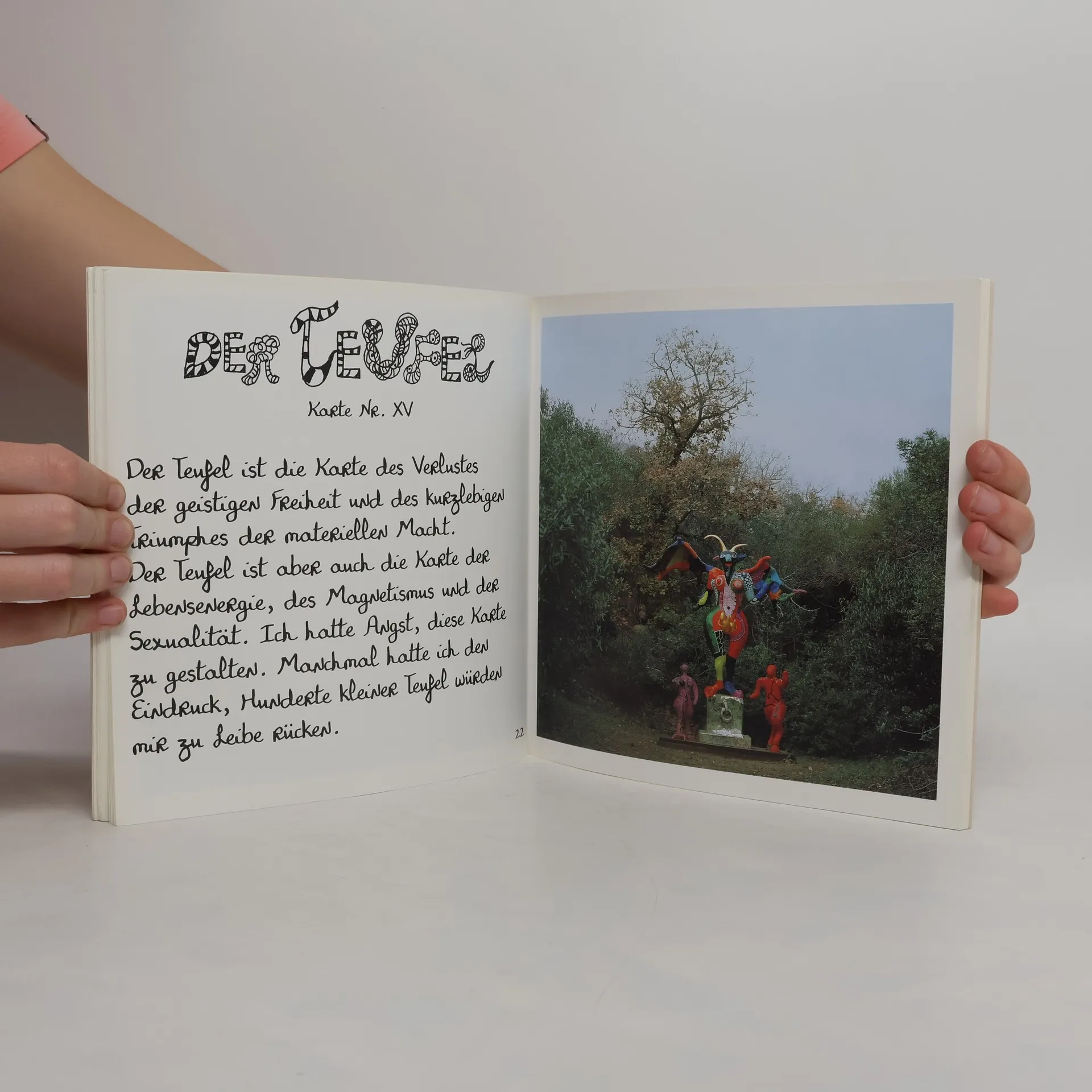 Ein überschäumendes Feuerwerk an Farbe und Kreativität Inspiriert durch Antoni Gaudís Parc Güell in Barcelona und den manieristischen Park von Bomarzo schuf Niki de Saint Phalle ihren Skulpturenpark. In der weitläufigen Anlage, im äußersten Süden der Toskana gelegenen, sind die 22 Arcana Maiora des Tarots in Form riesiger, 12 bis 15 Meter hoher Skulpturen dargestellt. Aus bemaltem Polyester und Eisenbeton gefertigt, sind die verschiedenen Figuren reich geschmückt mit Mosaiken, Spiegeln, bunten Keramikstückchen und farbigem Glas aus Murano. Diese fantastische Märchenwelt war für Saint Phalle der Höhepunkt ihres Schaffens. Als die Künstlerin 2002 starb, hinterließ sie den Tarot-Garten unvollendet. Dieser Band dokumentiert die Entstehung des Gartens und gibt Niki de Saint Phalles eigene Interpretationen wieder.