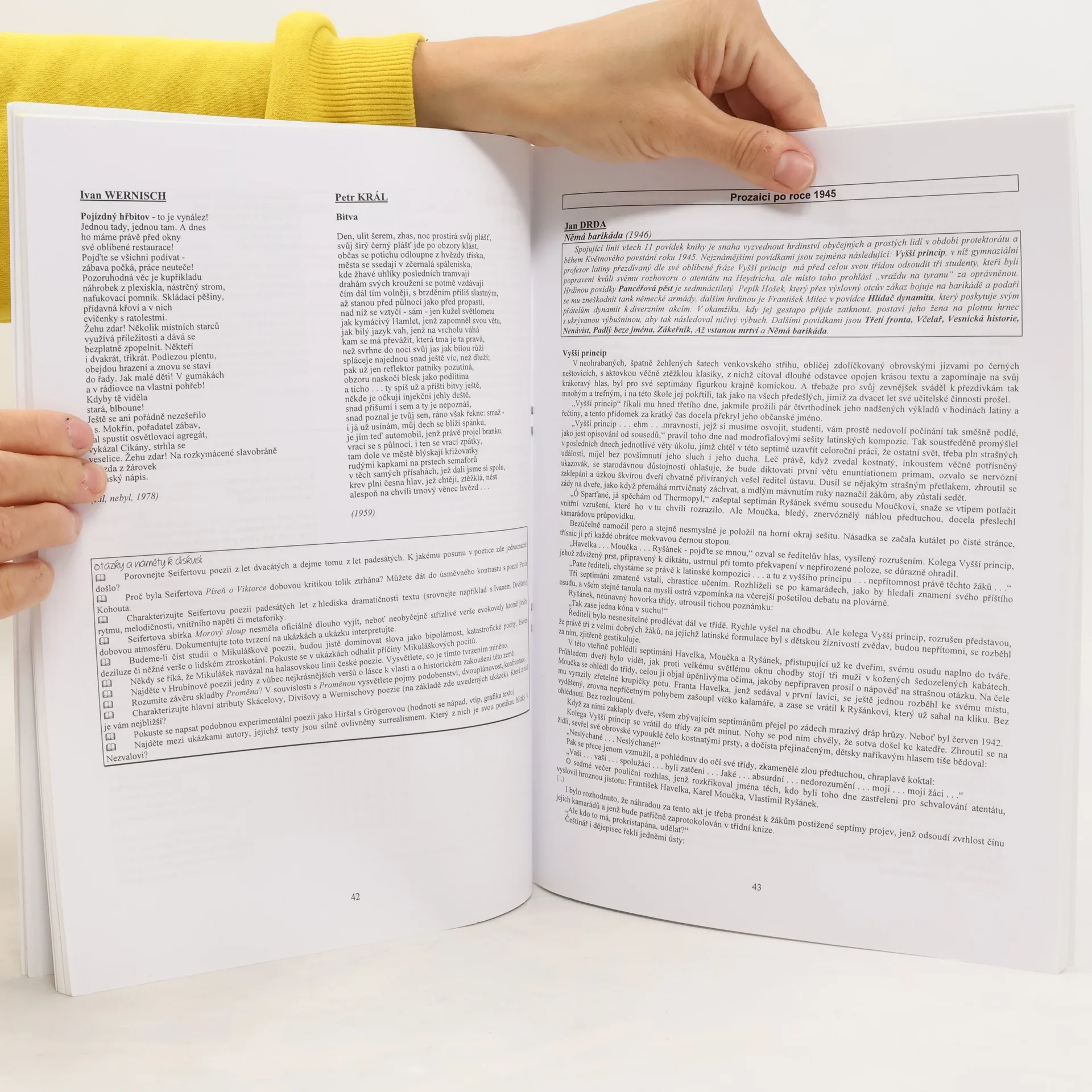 Tato čítanka je koncipována tak, aby vytvářela organický celek s publikací Přehled české literatury 20. století. Je proto logické, že nejen výběr, ale i chronologické řazení ukázek byly podřízeny tomuto titulu. Zcela záměrně nejsou v čítance zbytečně dlouhé prozaické texty, jejich rozsah respektuje časové možnosti v hodině českého jazyka. Otázky a náměty k diskusi, které doprovázejí každý celek, nejsou dogmatem, vnímejte je proto, prosím, pouze jako užitečnou pomůcku při výuce. Celá čítanka byla determinována snahou, aby, pokud to nebude nezbytně nutné (například u meziválečných směrů), nebyl jeden autor tříštěn do více kapitol. Proto se může stát, že datace ojedinělých textů není v souladu se začleněním do kapitoly. Jakožto učitel považuje autor tuto skutečnost za daleko menší zlo než "rozpitvat" spisovatele do nepřehledného množství oddílů. Časově nenáročné texty, obsahy všech uvedených prozaických děl, nespočet úkolů a námětů k diskusi.