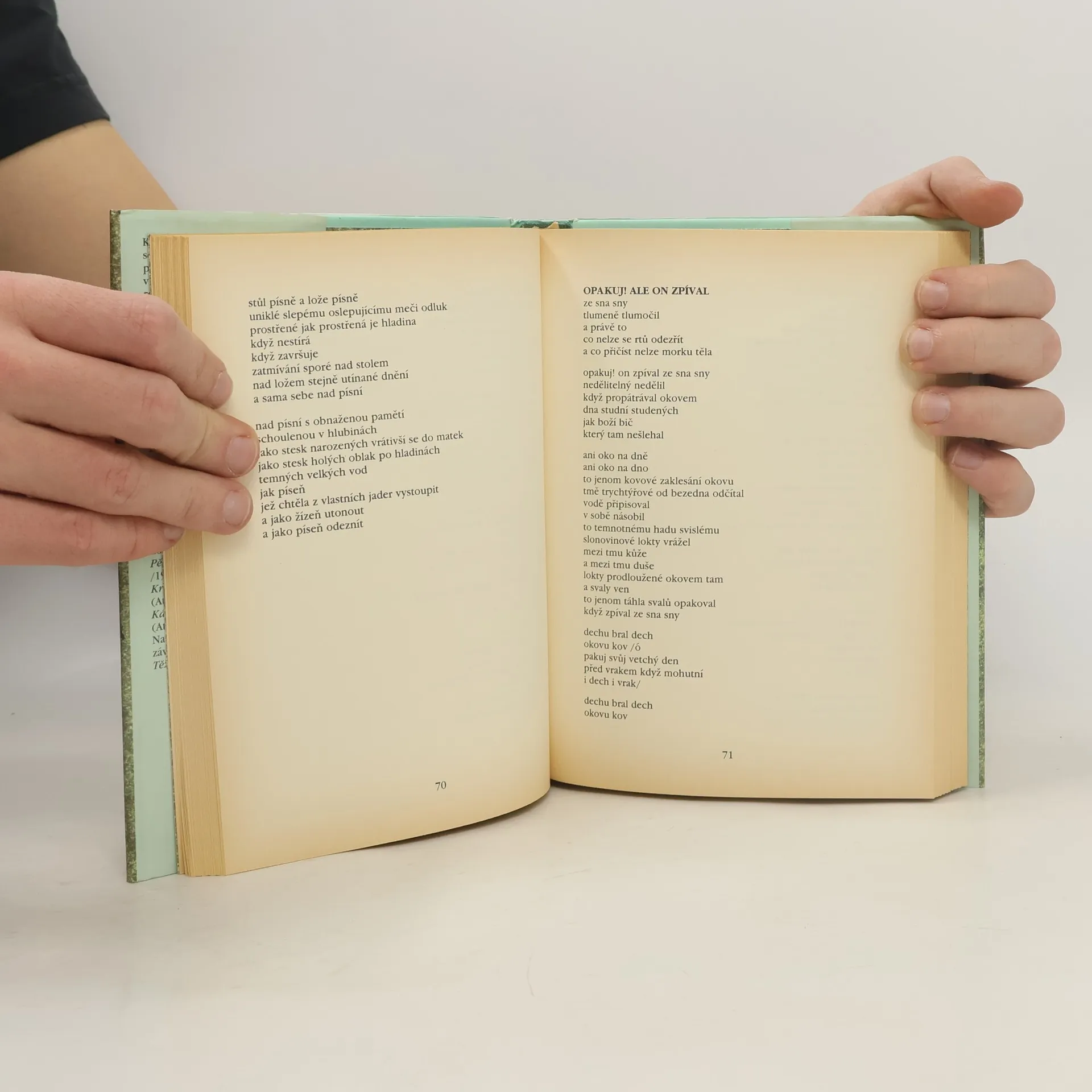 Texty 1971–1980. Třetí ze čtyř svazků komponované retrospektivy v autorském uspořádání. Obsahuje především revidované podoby dvou sbírek: Obyvatelná těla z let 1971–1974 a Skanseny z let 1975–1980 (Atlantis 1991). Kabeš se soustřeďuje především na osobitou básnickou řeč, kterou prohlubuje hledáním nových jazykových možností. I proto se zde objevují literární citace, třeba i s použitím křesťanské symboliky. Verše často směřují i do podoby koláží, zvýrazněné navíc určitou dokumentárností, která vyjadřuje pochmurnou společenskou situaci dané doby. Jde o poezii detailně zvládající možnosti básnického jazyka, který je navíc posílen skeptickou reflexí s mnohdy apokalyptickým vyzněním. Doslov Ivan Dubský V Boiótských horách...