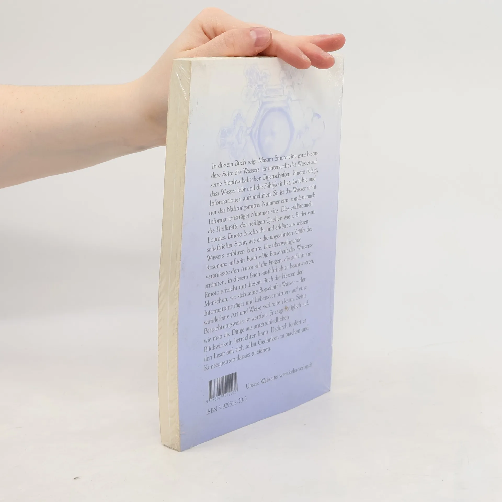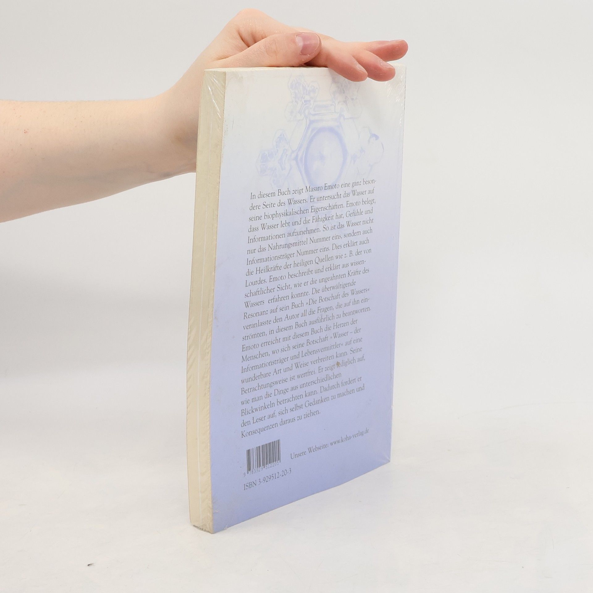 In diesem Buch zeigt Masaro Emoto eine ganz besondere Seite des Wassers. Er untersucht das Wasser auf sein biophysikalischen Eigenschaften. Emoto belegt, dass Wasser lebt und die Fähigkeit hat, Gefühle und Informationen aufzunehmen.