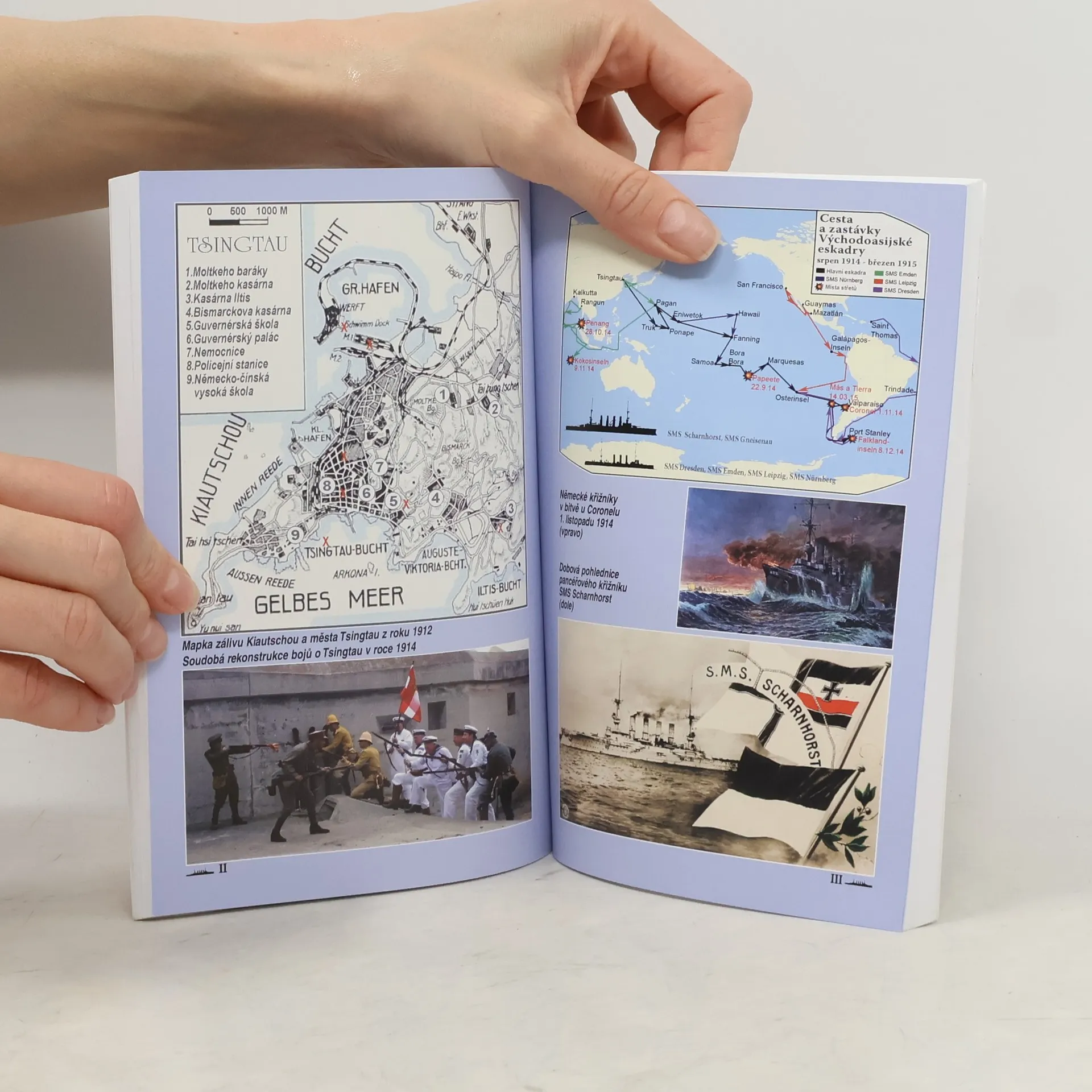 Dvě legendární bitvy svedla na počátku 1. světové války Východoasijská eskadra německého viceadmirála Maximiliana von Spee. Bitvy u Coronelu a Falkland, v nichž se koncem roku 1914 střetly německé pancéřové křižníky s britskou Royal Navy, přitahují do dnešních dnů pozornost všech nadšených milovníků válečné a námořní historie, ale jsou také pochmurně ukázkovými příklady toho, jak krutá a nelítostná umí být válka na mořích a oceánech. Publikace přibližuje nejen osudy důležitých aktérů tehdejších událostí, ale poodhaluje také některá méně známá či dokonce dodnes zamlčovaná fakta z tehdejšího mocenského zákulisí a roušku tajemství o údajných pokladech, přepravovaných německými křižníky a ukrytých neznámo kde.
